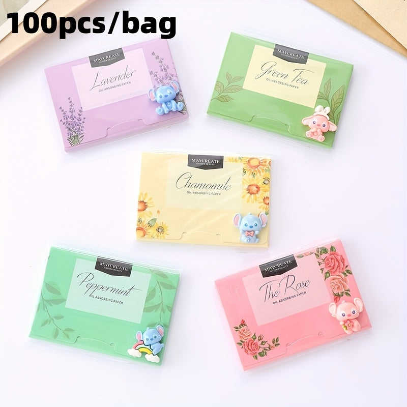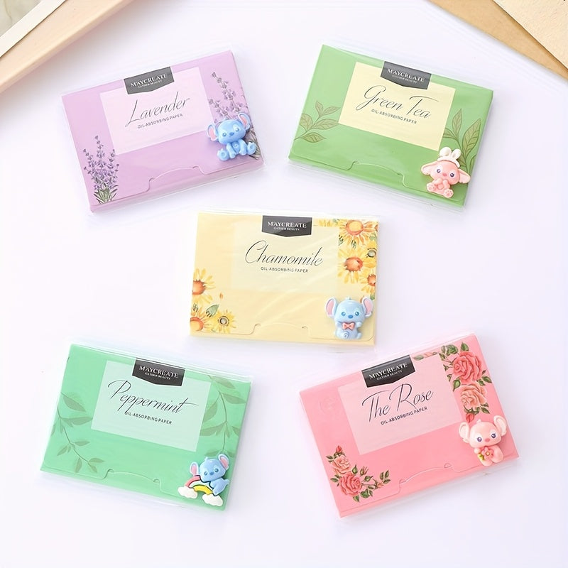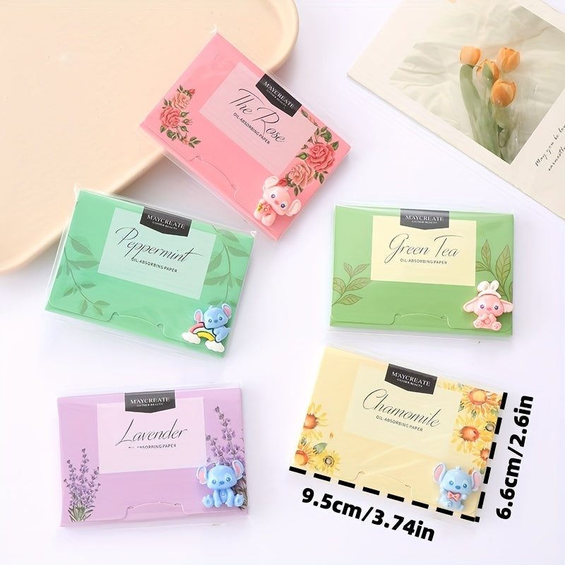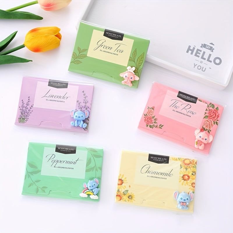 100pz Foglietti Assorbenti per Viso con Olio di Stitch - Strumento Portatile per Trucco da Donna, Profumi di Lavanda, Tè Verde, Camomilla e Rosmarino & I Profumi Originari, Tutti i Tipi in Beige Chiaro, Confezione Giocosa, Imballaggio Richiudibile