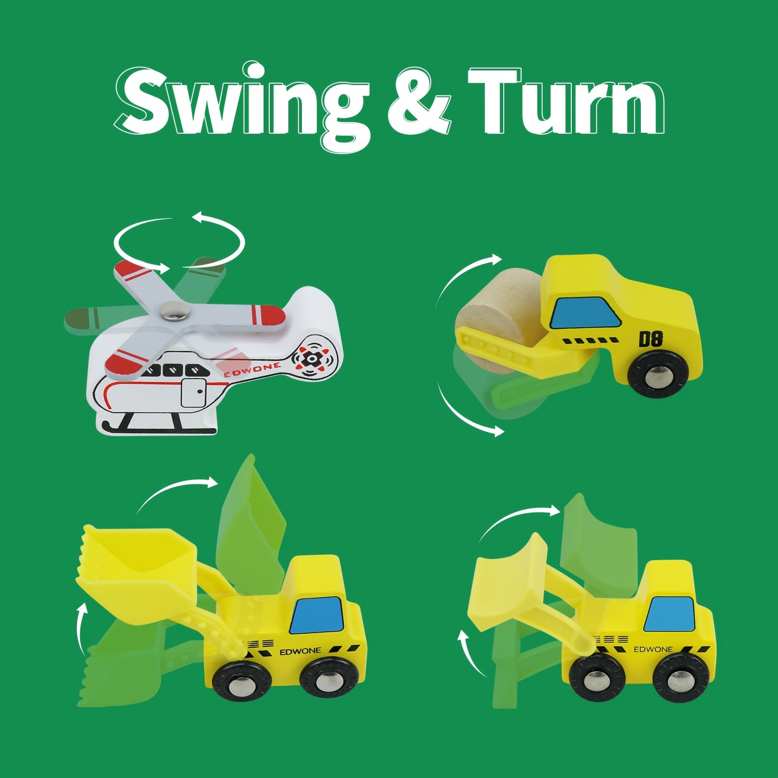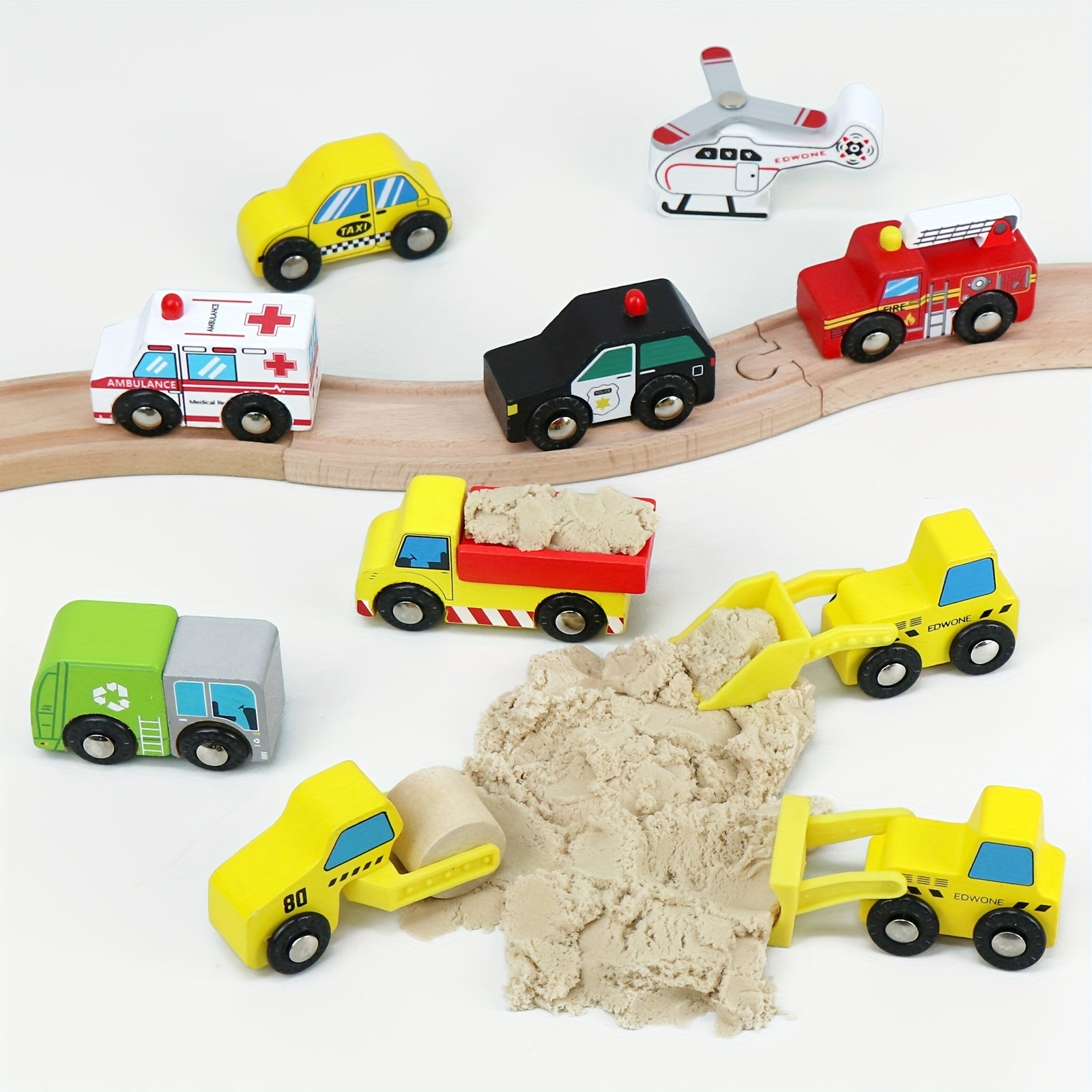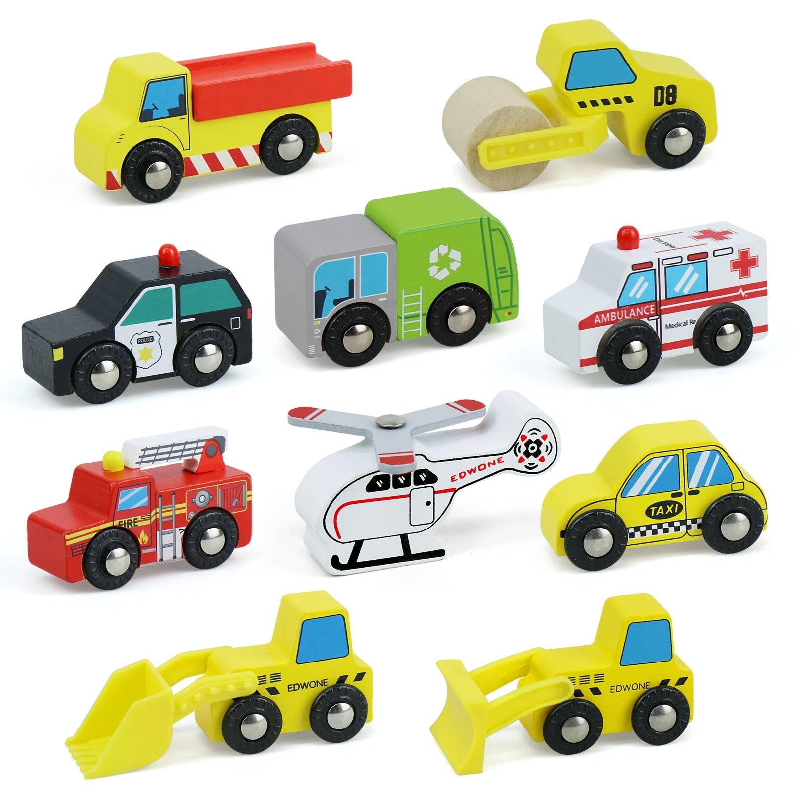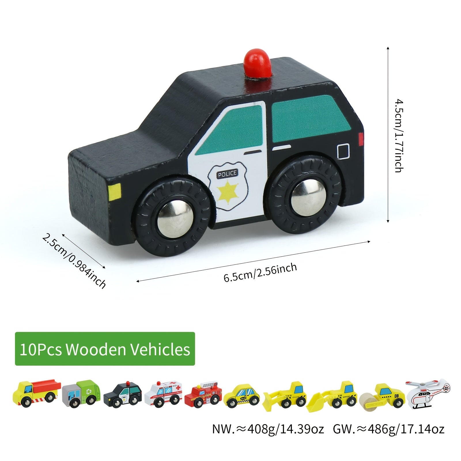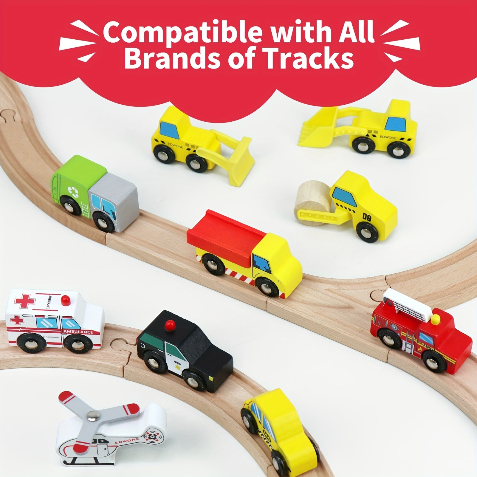 10pz Accessori per la linea ferroviaria in legno - Auto da gioco a colori misti, veicoli per le rotaie e camion, funzionamento manuale, compatibili con le rotaie in legno, marche principali