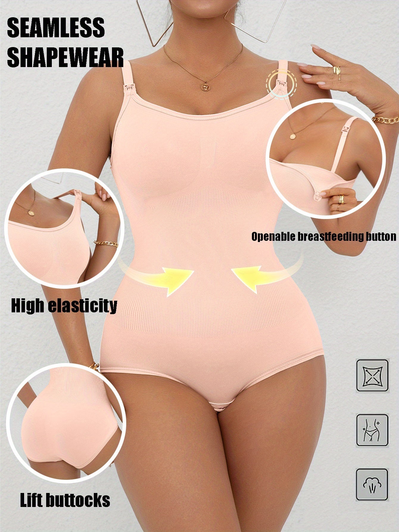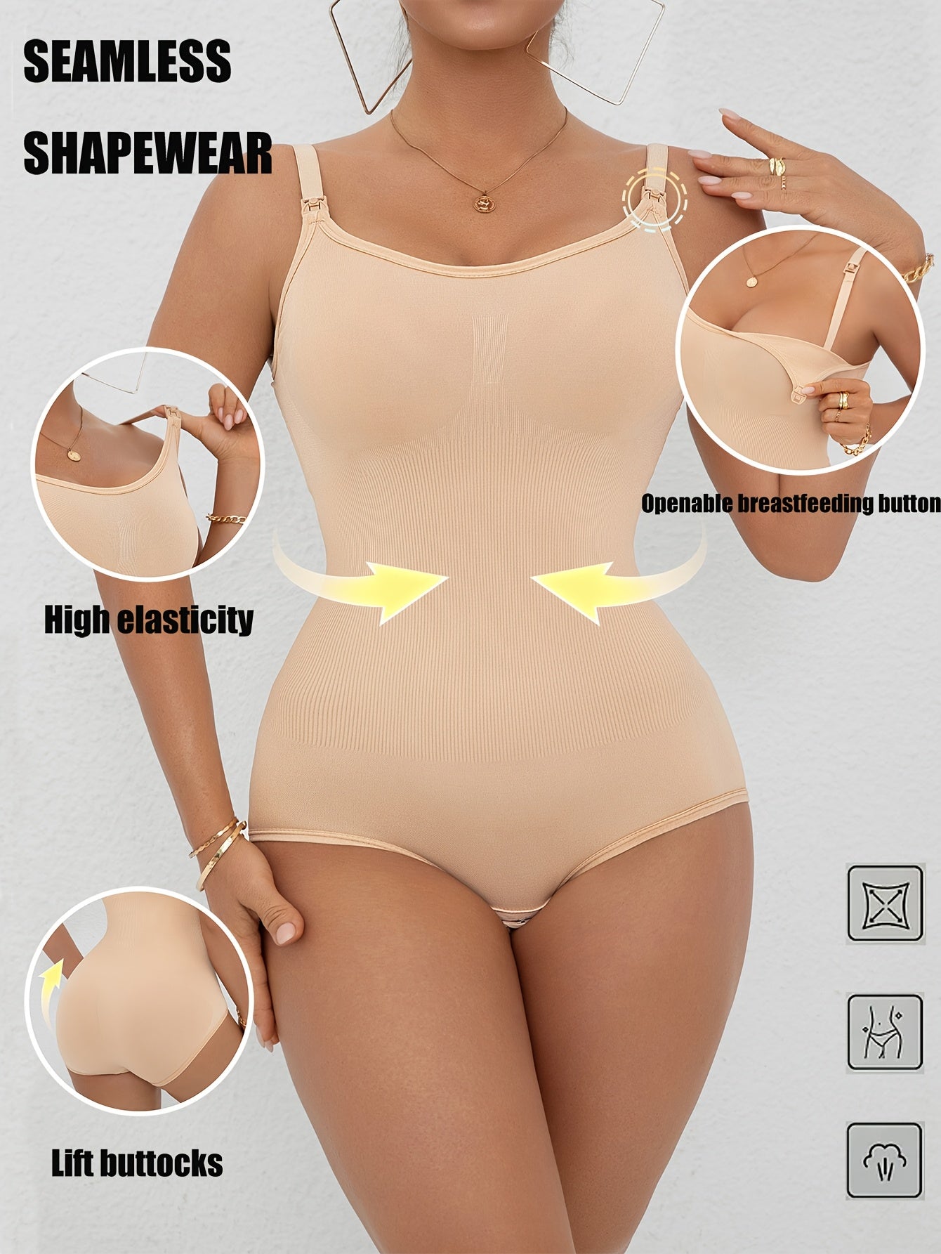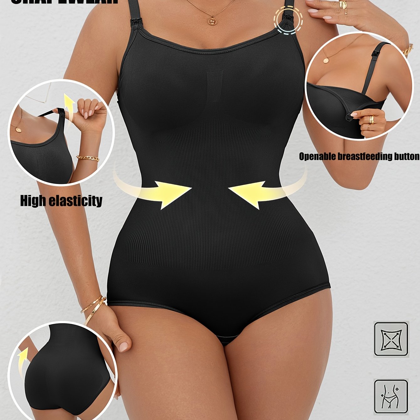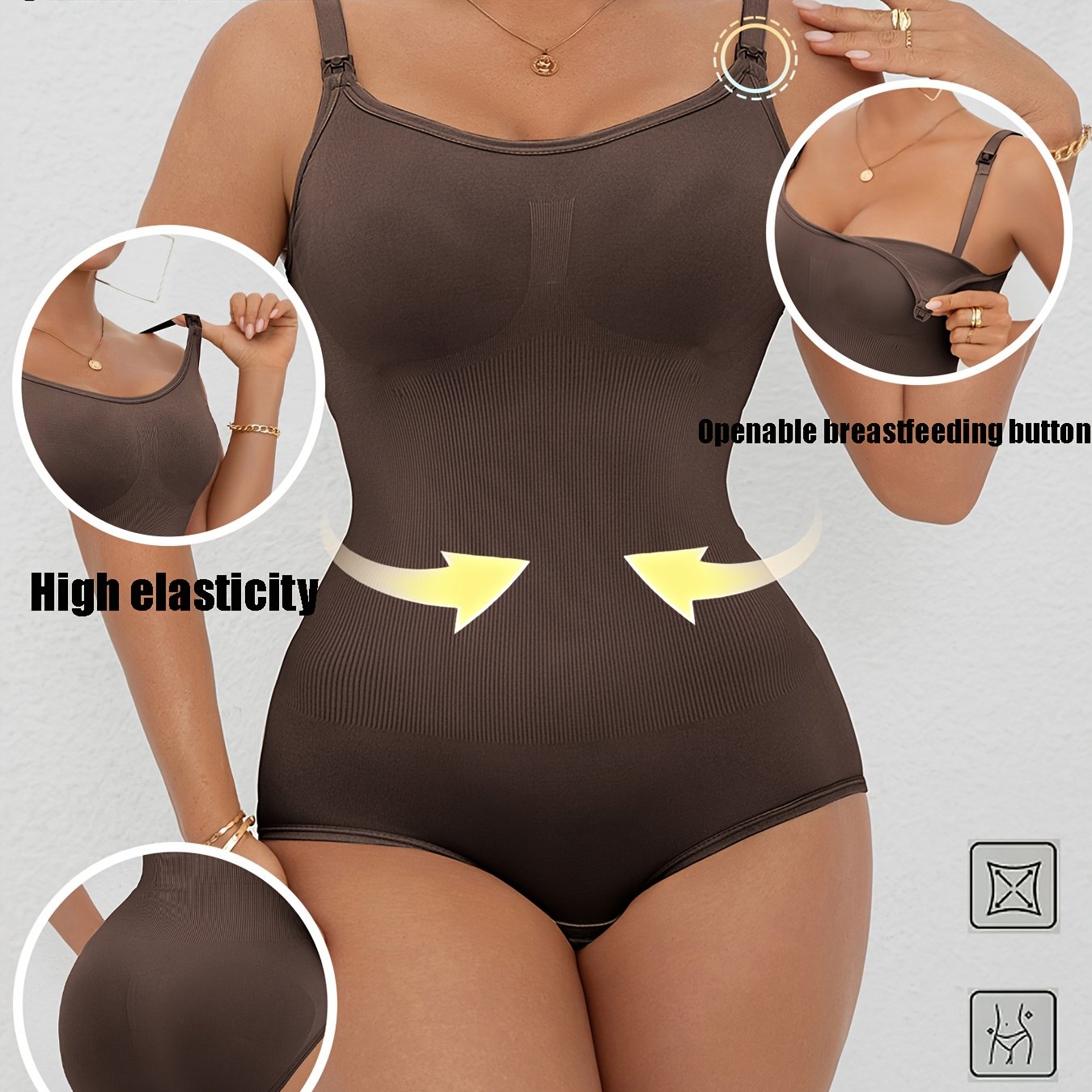 1pezzo Maternità Senza Cuciture Shapewear Bodysuit con Cerniera per Allattamento, Controllo della Pancia Postpartum, Unico Strato Senza Imbottitura, Design a Tanga per l'Allattamento, Sollevamento dei Glutei e Controllo dell'Abdomine Corsetto Dimagrante,