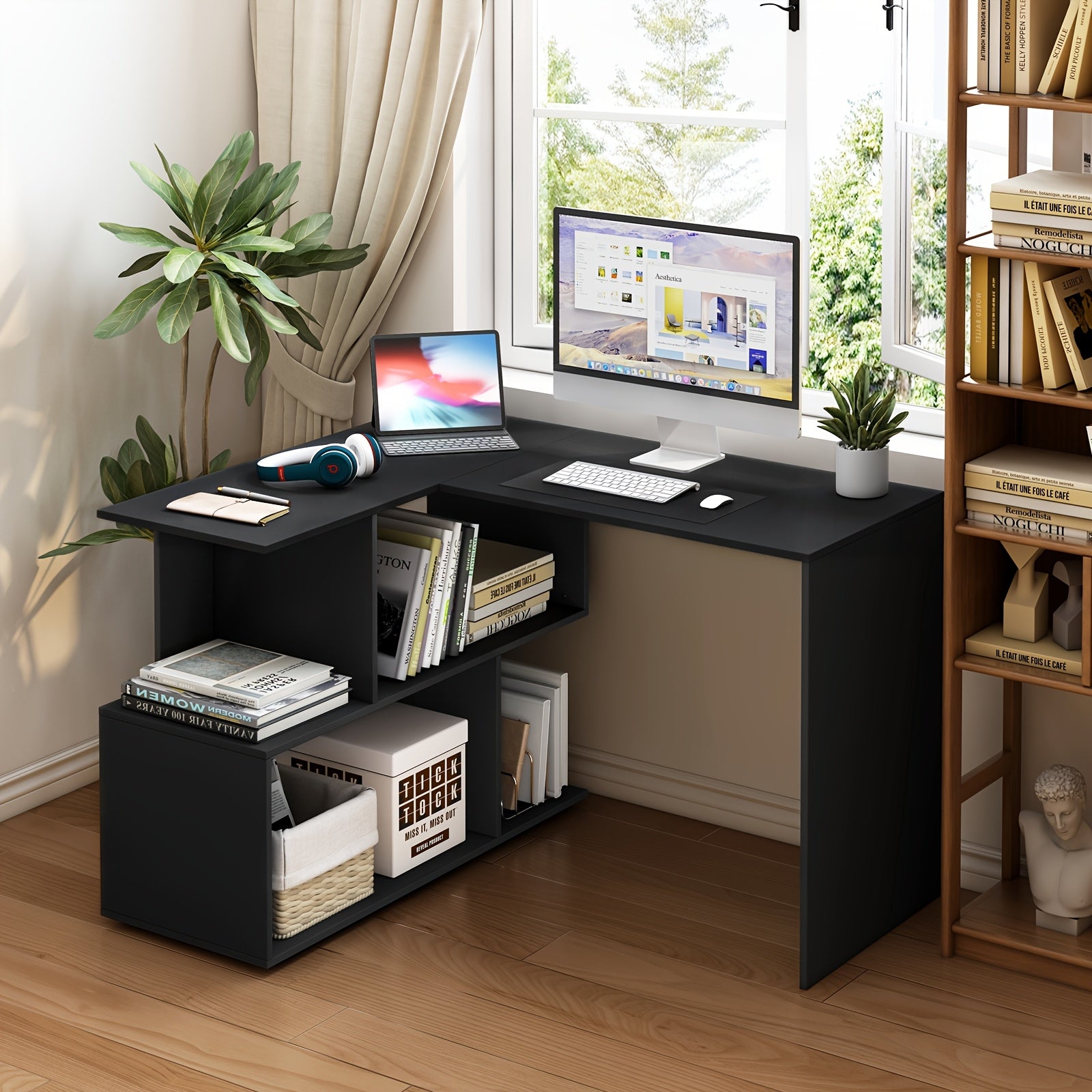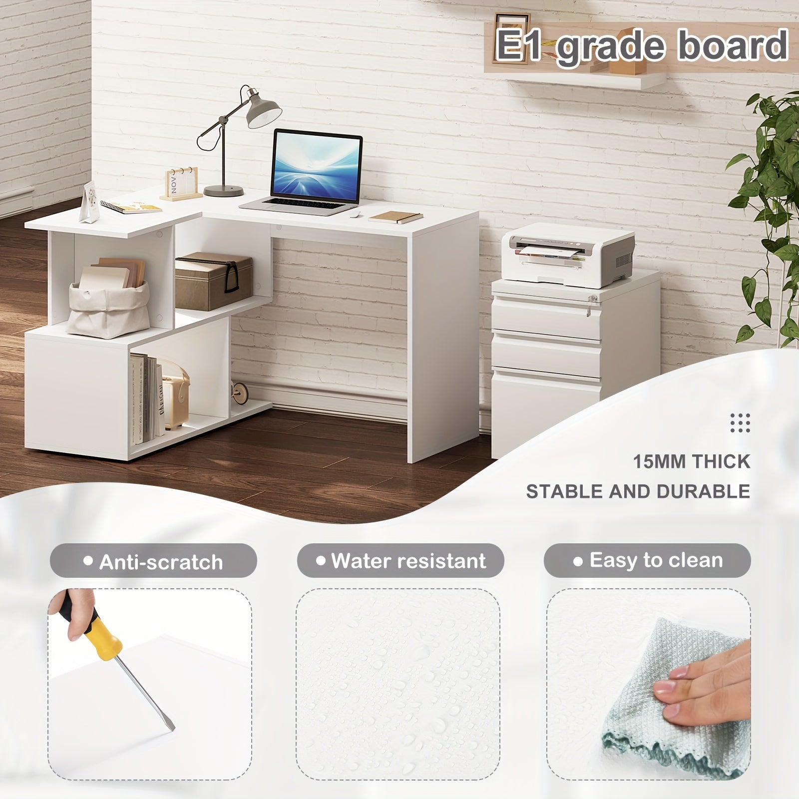 1pezzo Scrivania a L, 120X100Cm, Scrivania da Ufficio, Scrivania per Computer, con Ripiano, Scrivania a Angolo, Lavorazione
