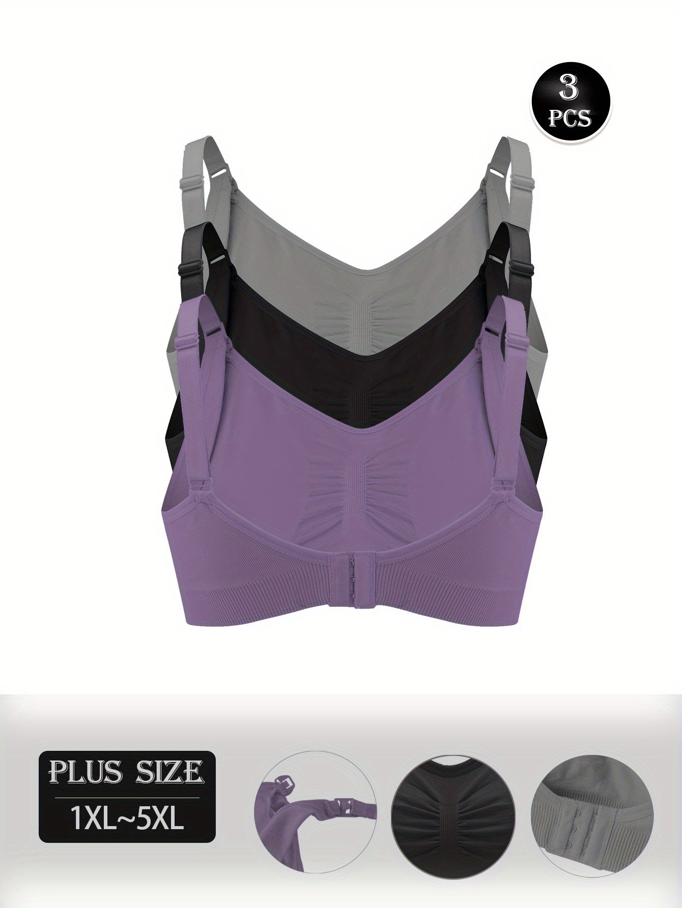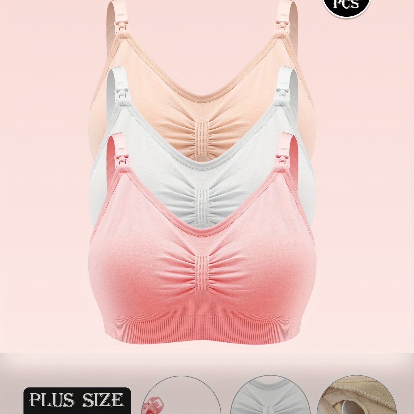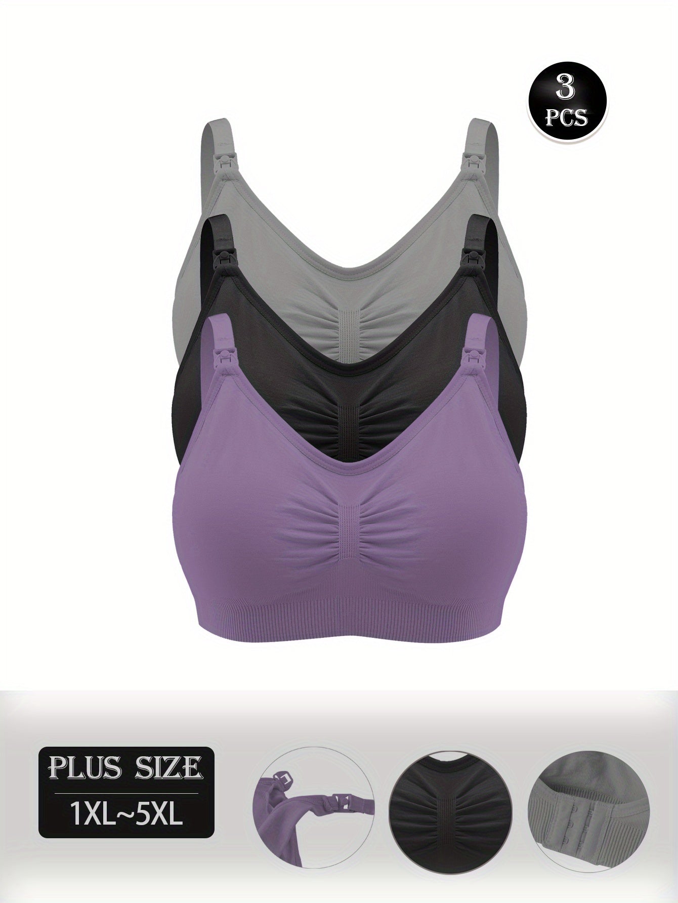 3pezzo Plus Size Nursing Bras per Donne - Senza cuciture, Comodi Reggiseno Maternità a Copertura Completa, Tessuto Morbido e Traspirante, Facile da Pulire, con Imbottiture Rimovibili, per Allattamento e Gravidanza, Reggiseno Maternità | Tessuto Traspirant