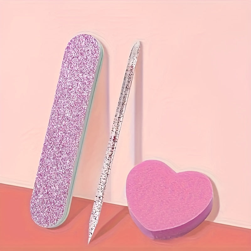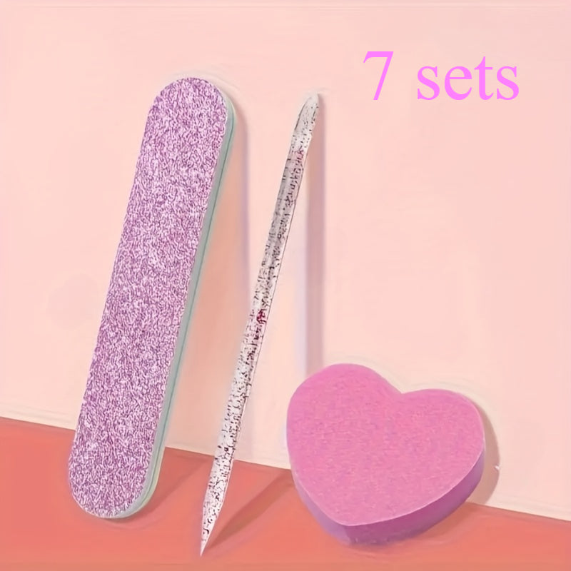 7 Set di Regali Romantici, un Kit per la Cura delle Unghie - Limatore per Unghie con Glitter Rosa, Cristallo Lucidante e Blocco di Spugna a Forma di Cuore - Set di Strumenti per Manicure e Pedicure senza Profumo, Perfetto per San, Compleanni e Vacanze.