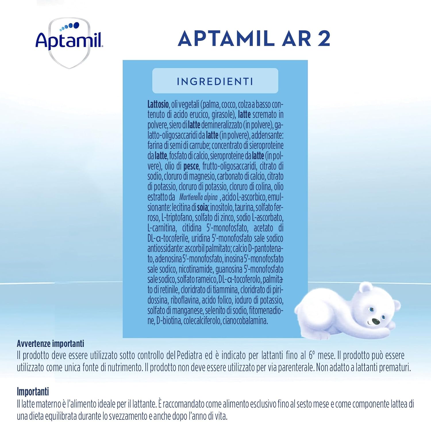 Aptamil AR2, Latte Antirigurgito per Neonati dal 6° mese al 12° mese compiuto, Confezione da 400g