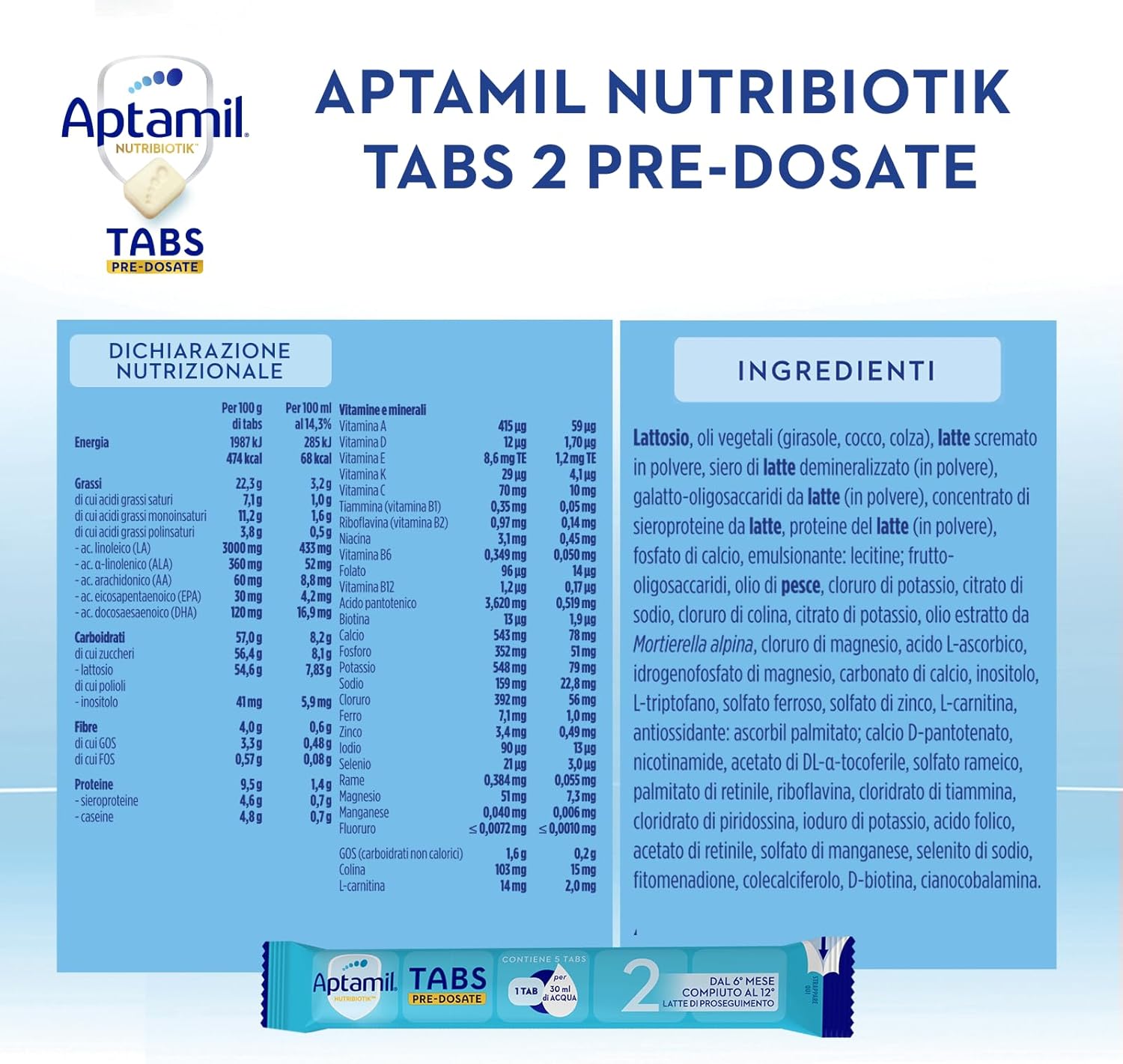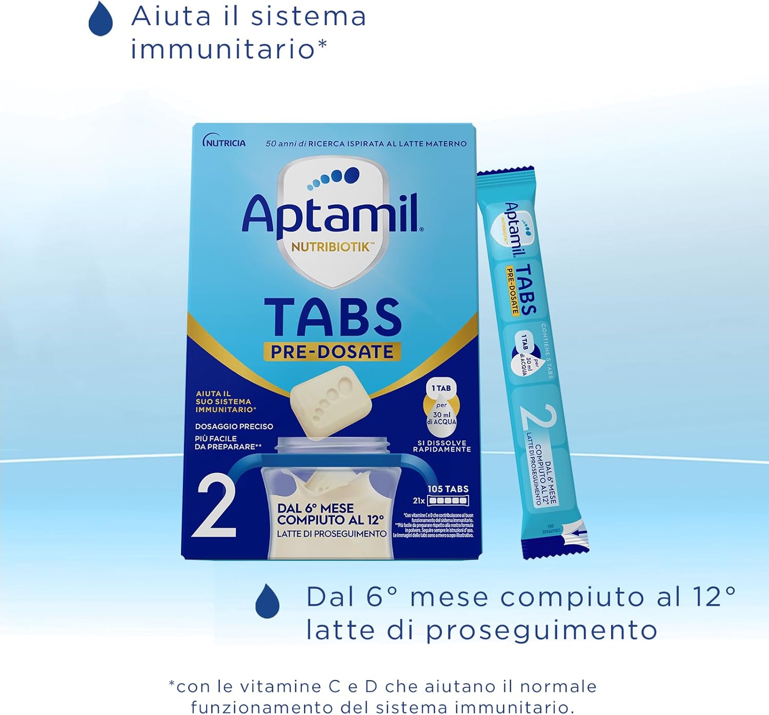 APTAMIL NUTRIBIOTIK 2 - Latte di Proseguimento Dal 6° mese compiuto al 12° - Confezione da 21 bustine (105 tabs pre-dosate)