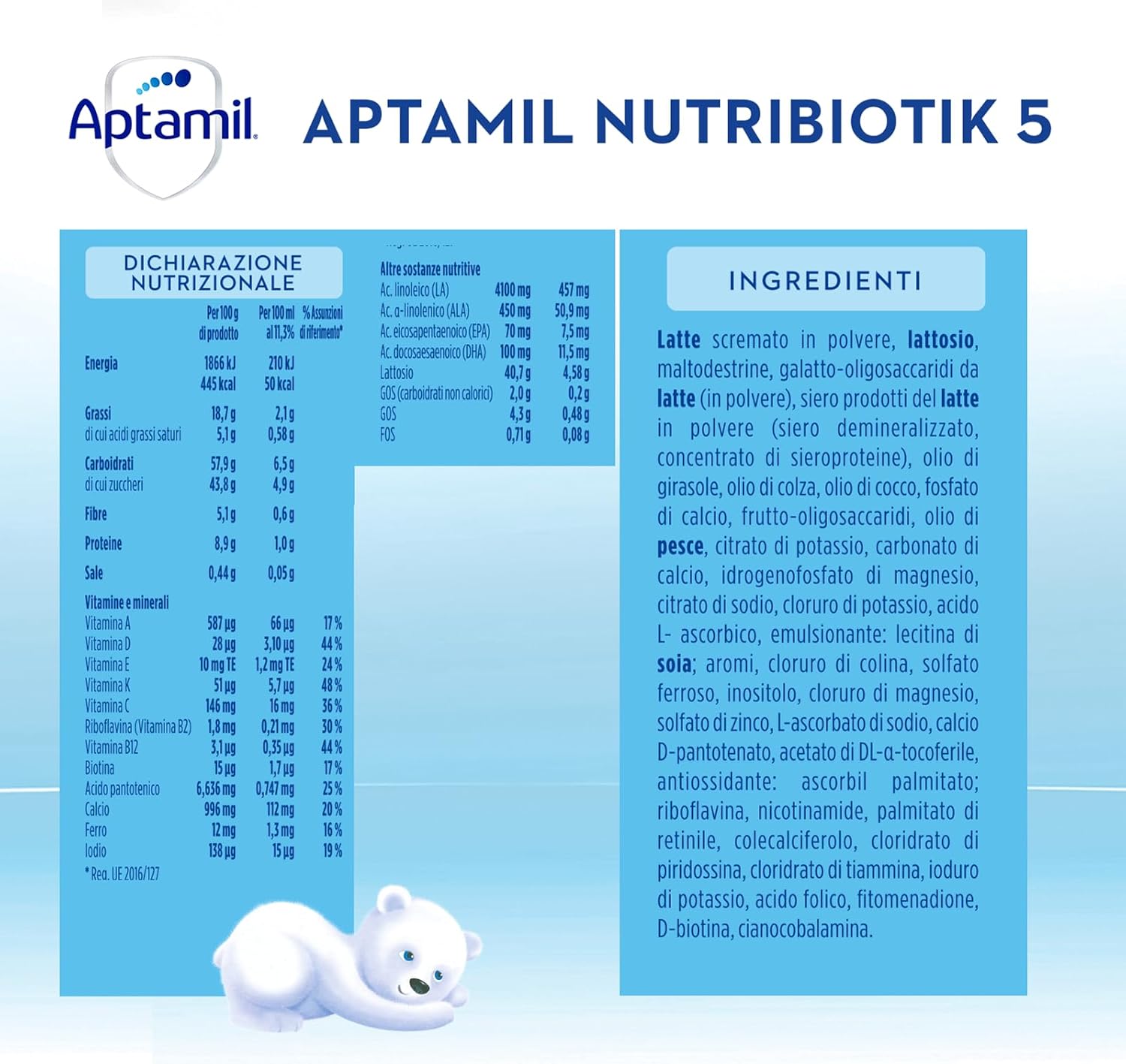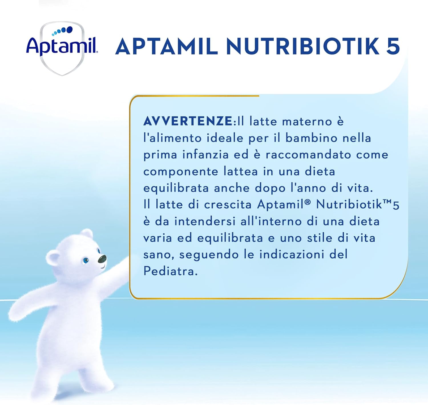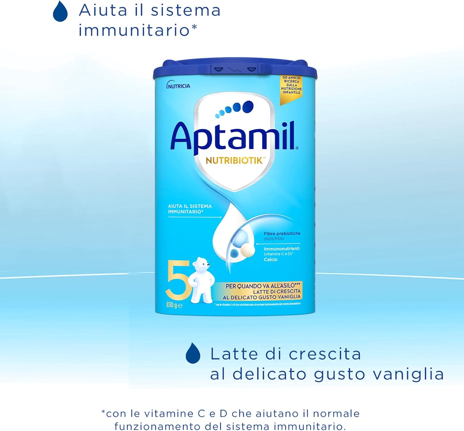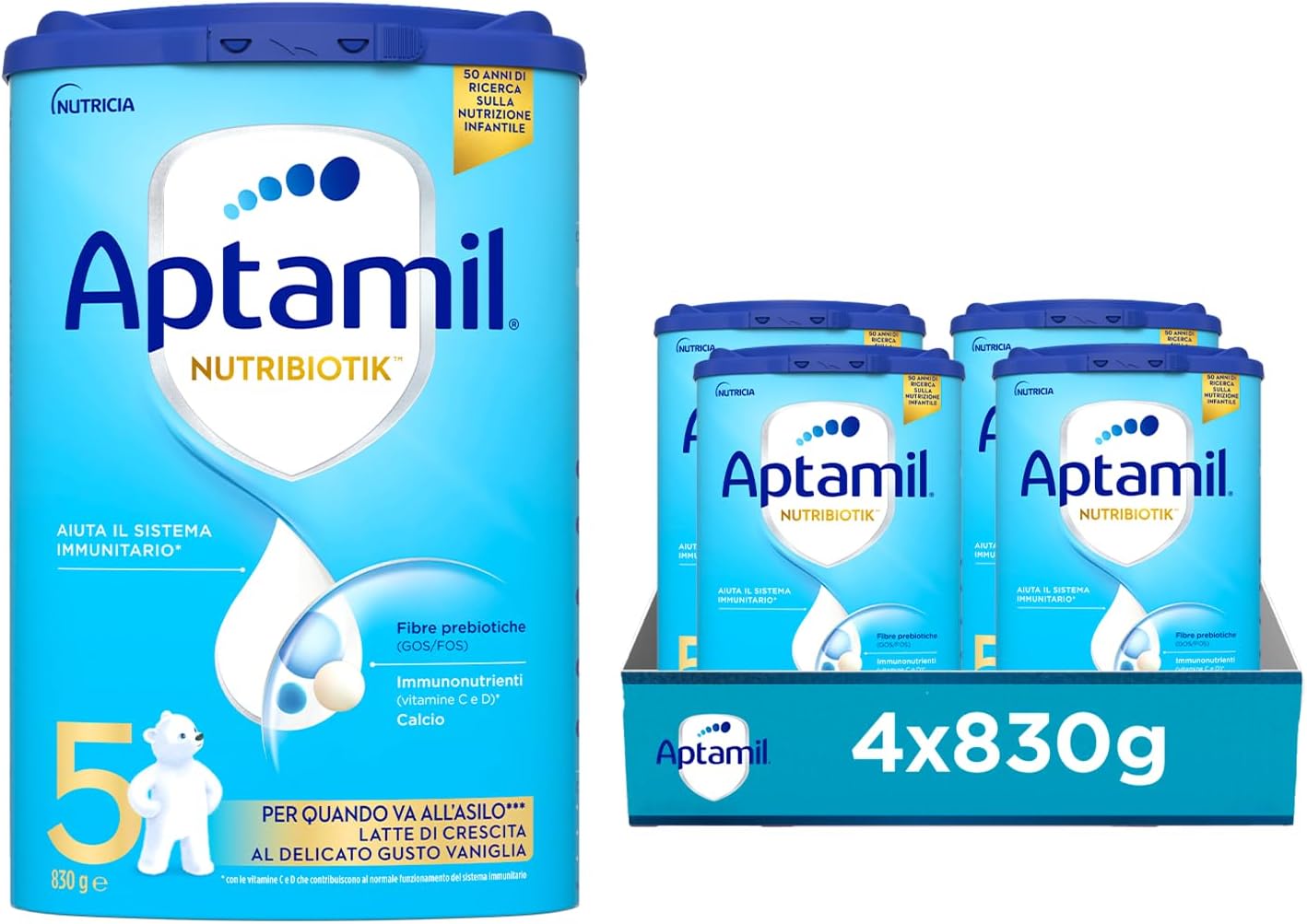 APTAMIL Nutriobiotik 5 - Latte di Crescita in Polvere al Delicato gusto di Vaniglia per Bambini dai 36 mesi - da 3320 grammi (4 confezioni da 830g)