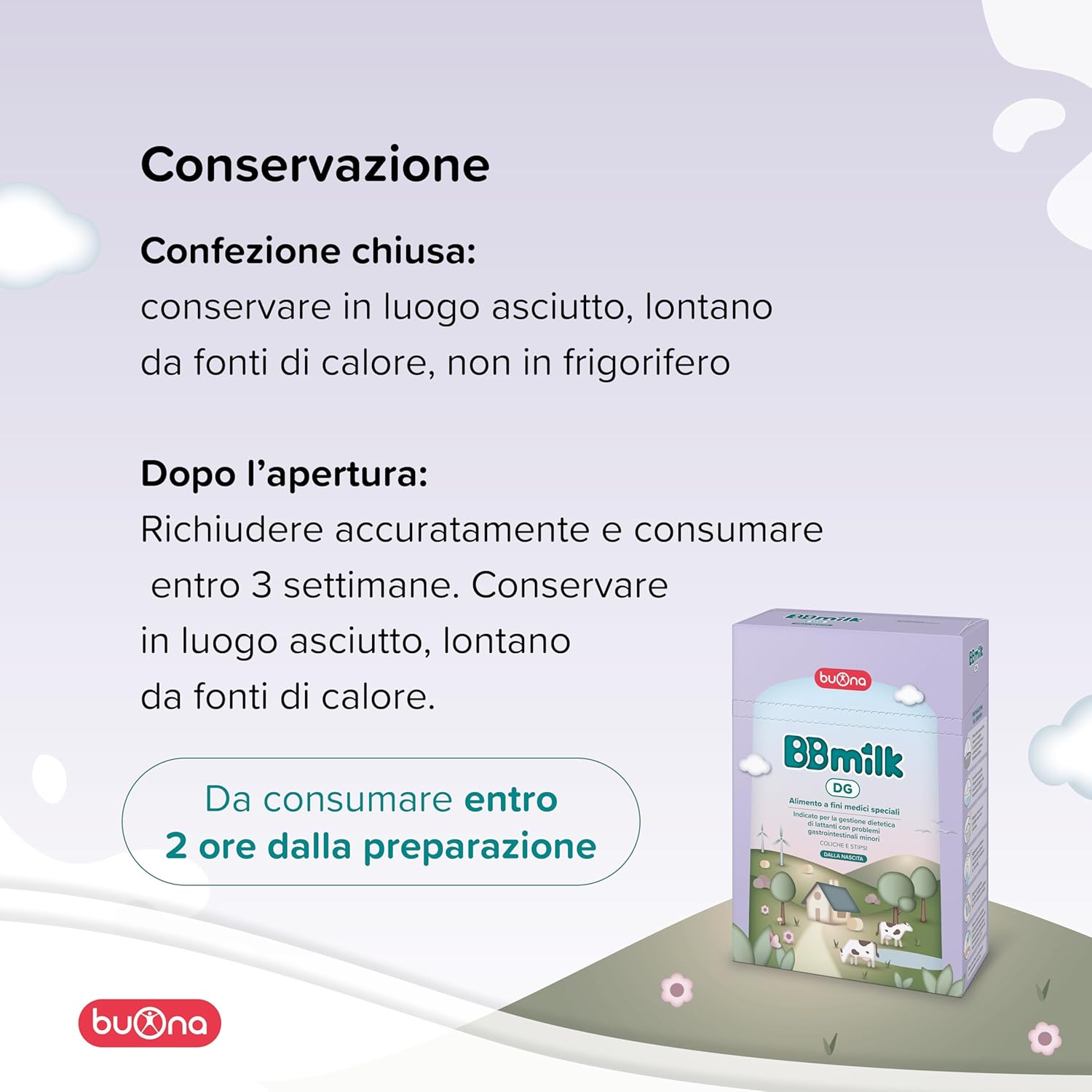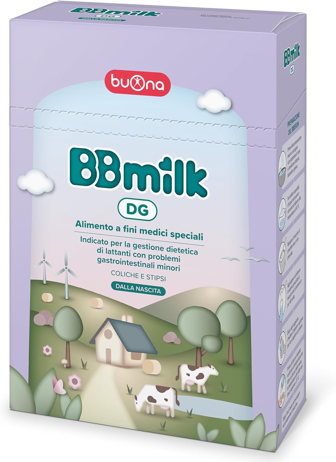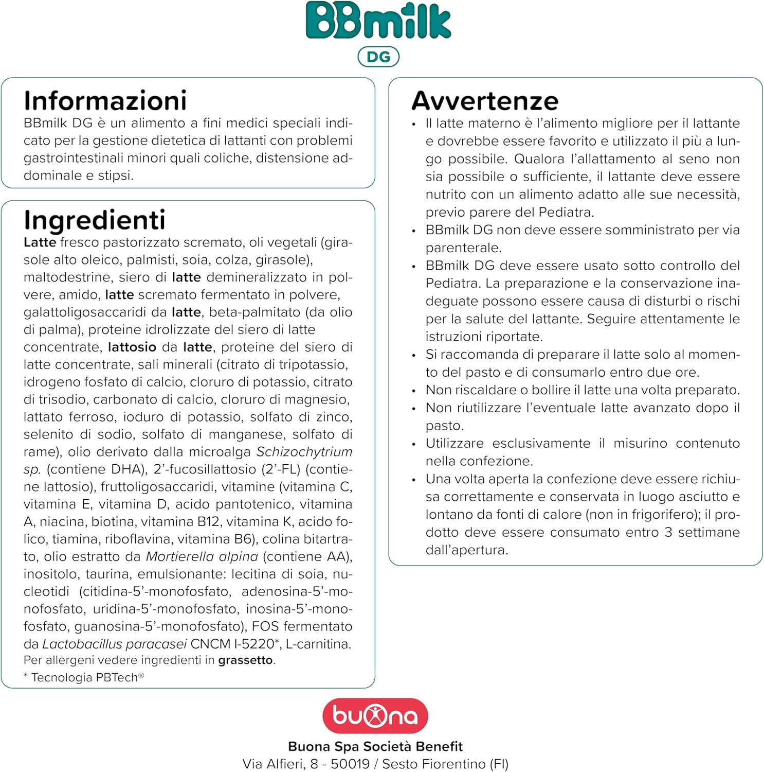 Buona Latte in Polvere per Coliche Neonato BBmilk DG 400g, Latte in Polvere per Neonati 0-12 Mesi con Coliche e Stipsi, Alimento a Fini Medici Speciali, Made in Italy