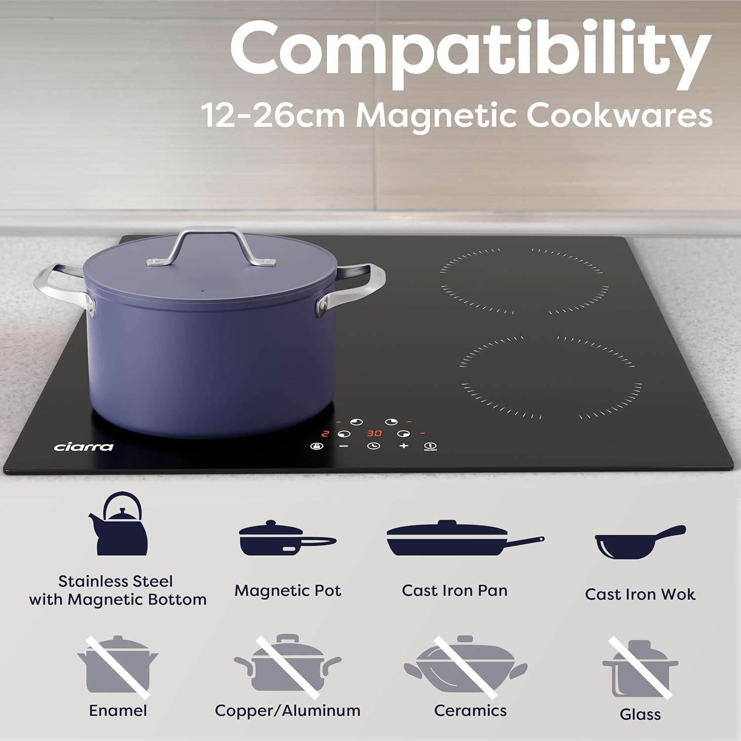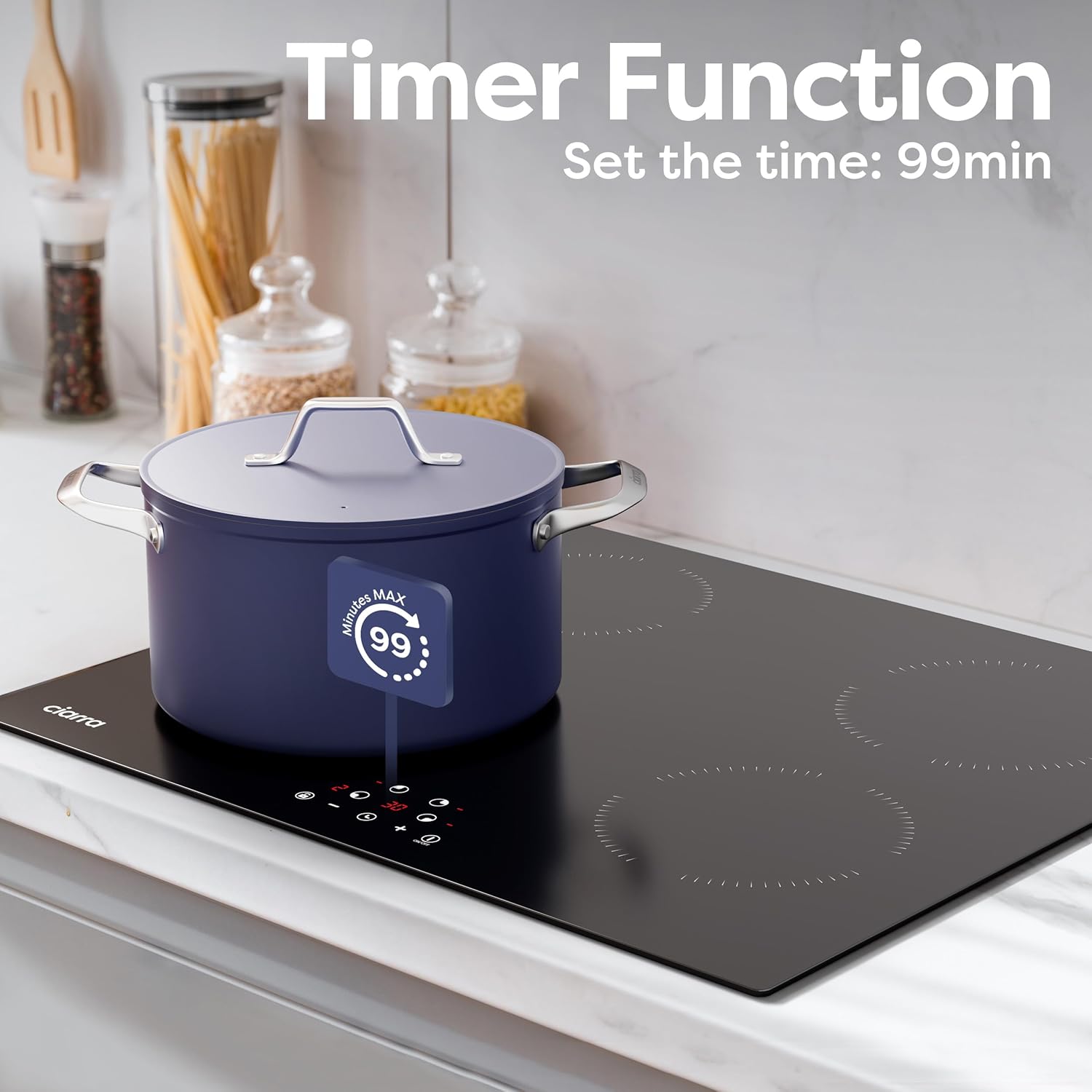 CIARRA Piano Induzione 4 Fuochi, Fornello Induzione con Sicurezza Bambini, Controllo Touch, Timer, 59CM, AWBBIH4-A