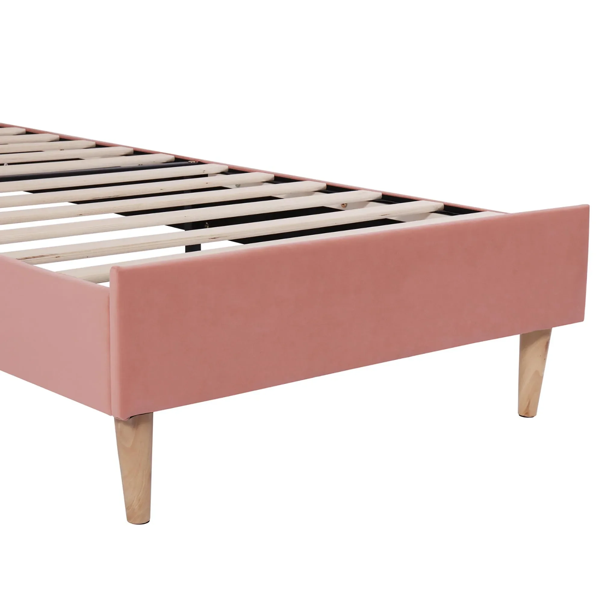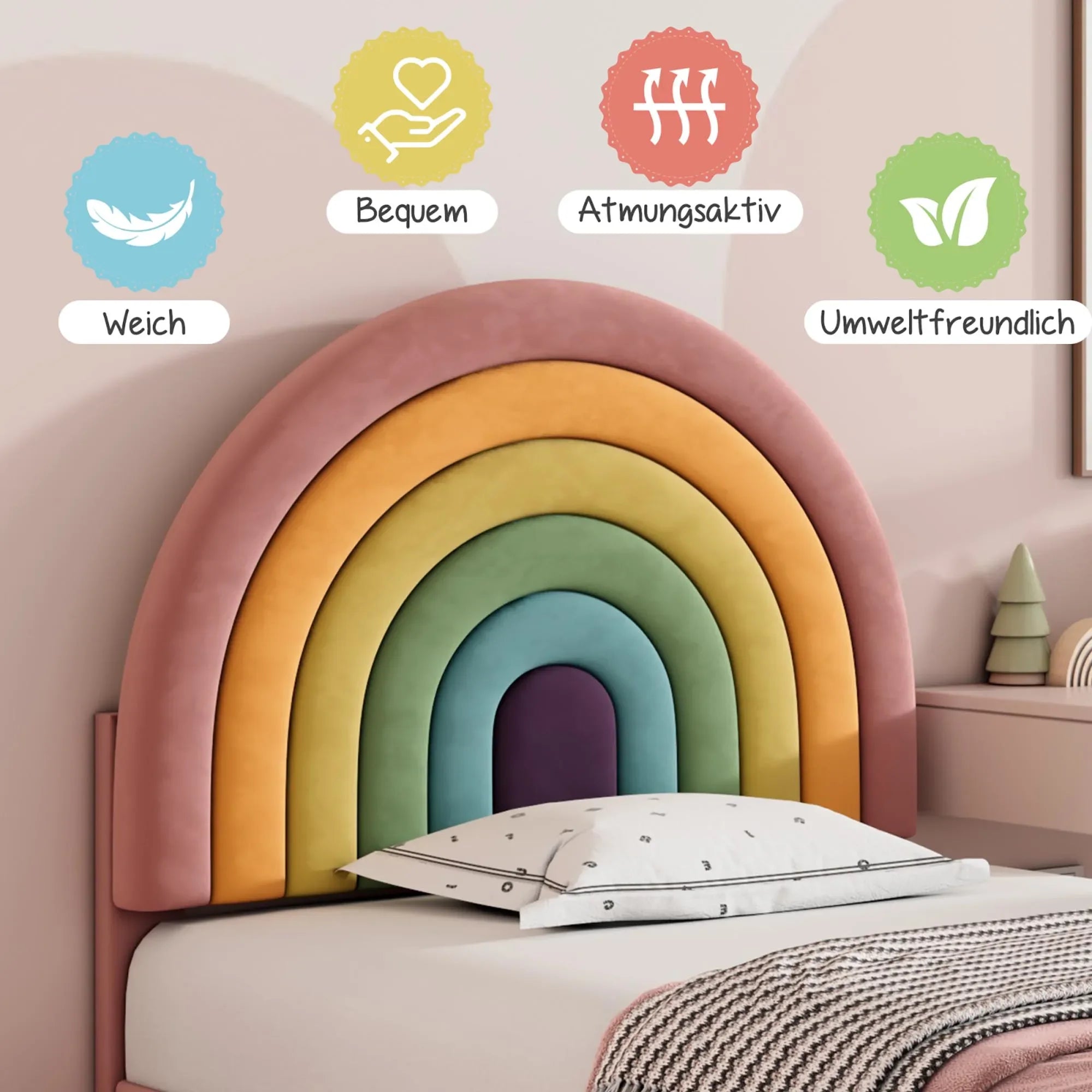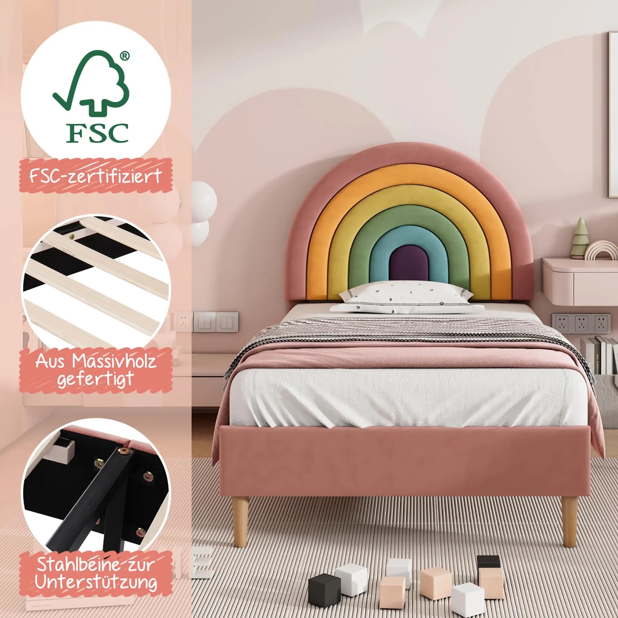 Comanlai 90 * 200 cm Letto imbottito in velluto Letto singolo in legno per bambine, letto per bambini con testiera arcobaleno rosa