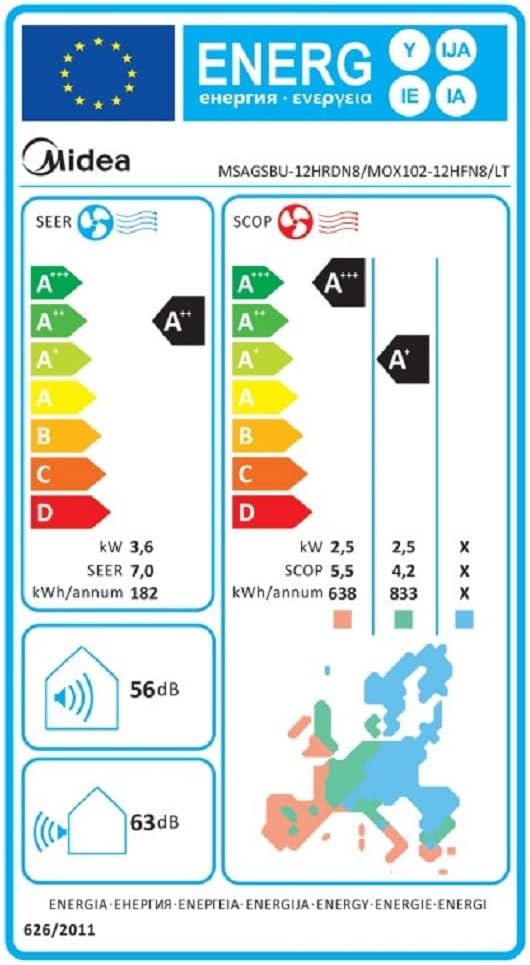 Condizionatore climatizzatore monosplit fisso 12000 btu classe di efficienza energetica A+++ con telecomando Gas R32 MIDEA