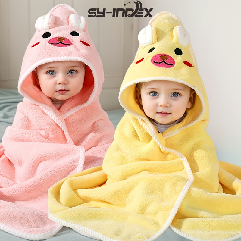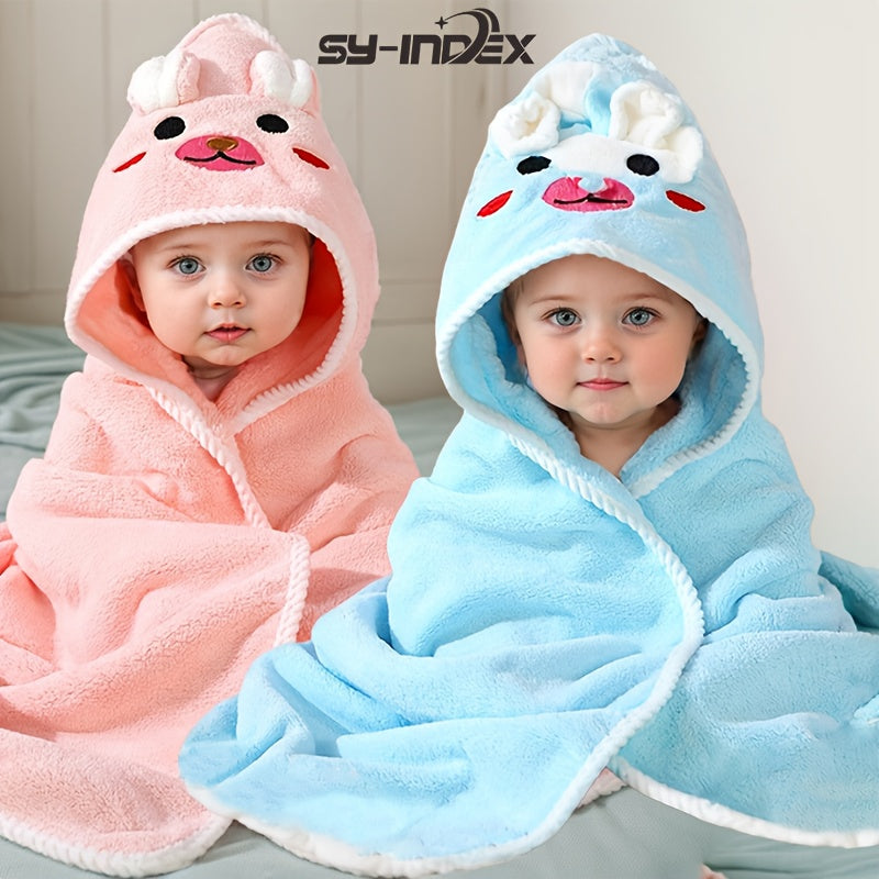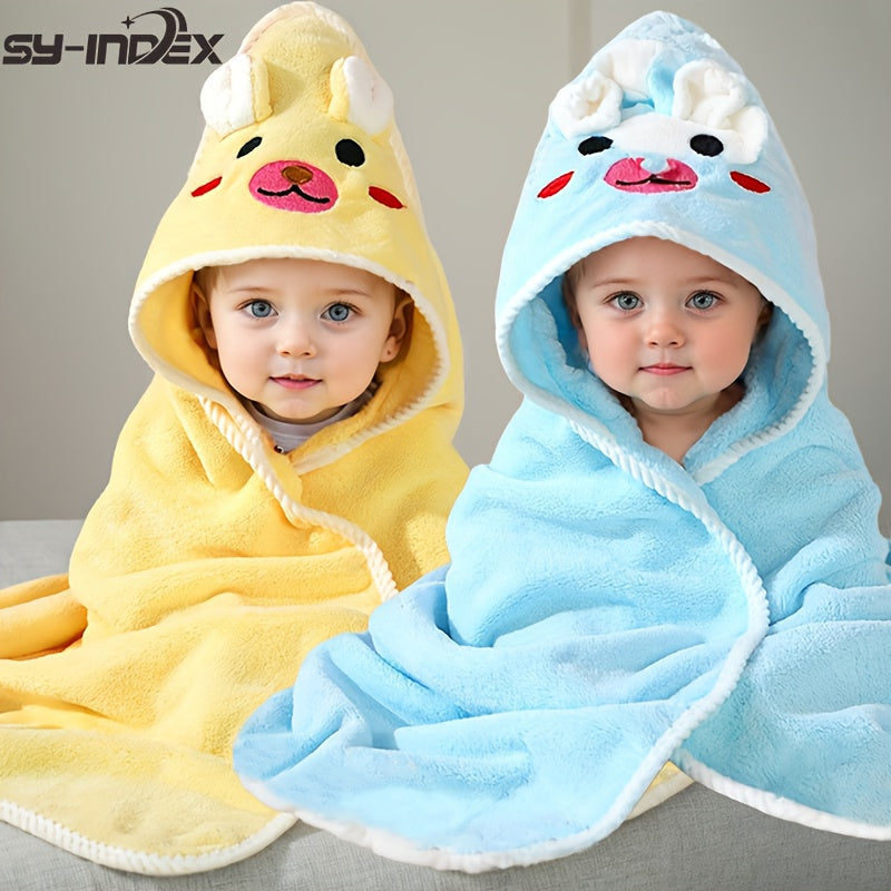 Confezione da 2 Asciugamani con Cappuccio per Neonati e Bambini Piccoli - Poliestere Morbido e Spesso ad Alta Assorbenza, Fantasie di Animali Carini (Orso & Orecchie di Coniglio), 80x80cm, Lavabili in Lavatrice - Essenziali per la Doccia dei Neonati, Rega