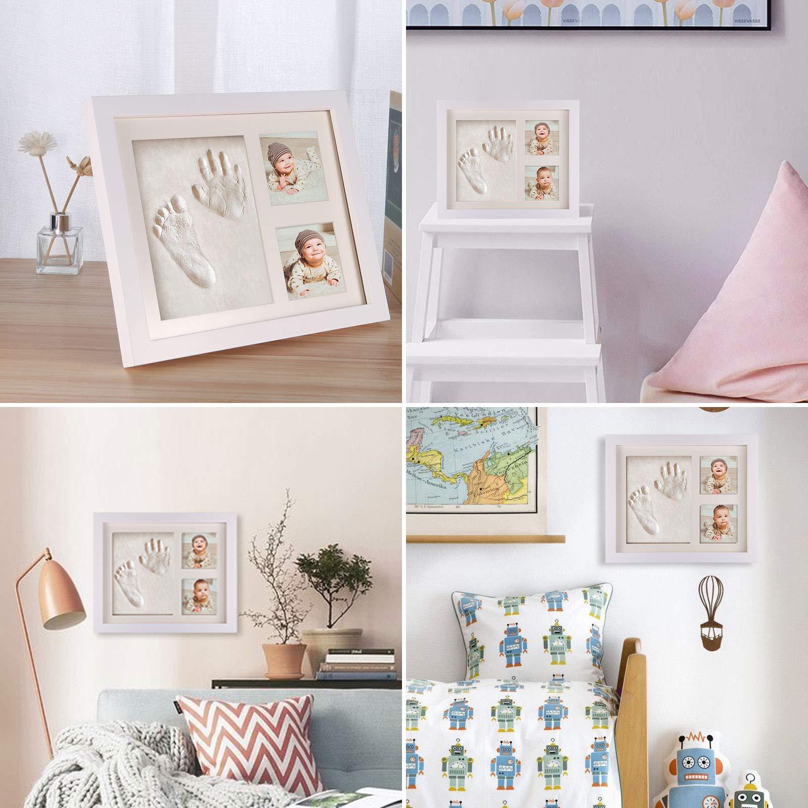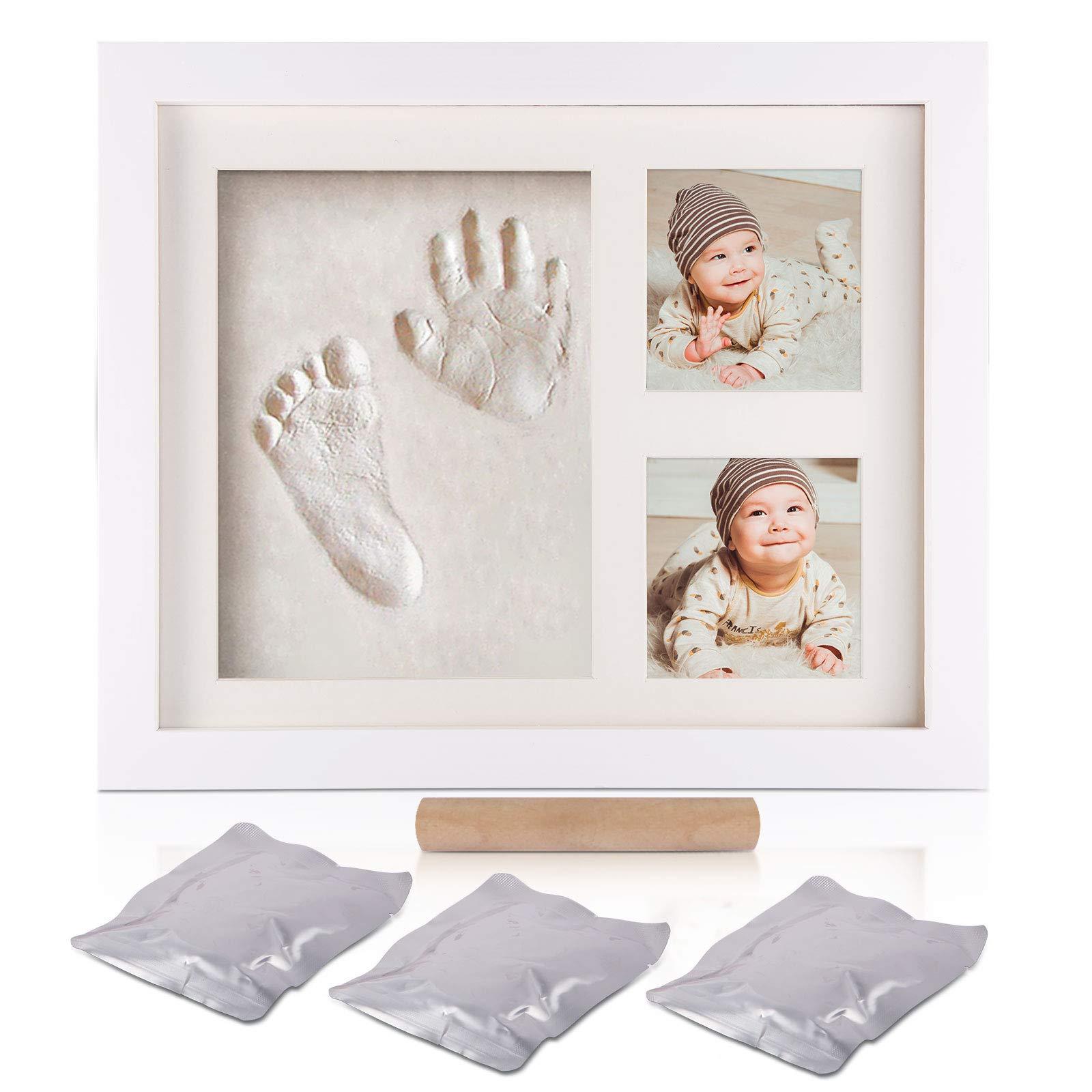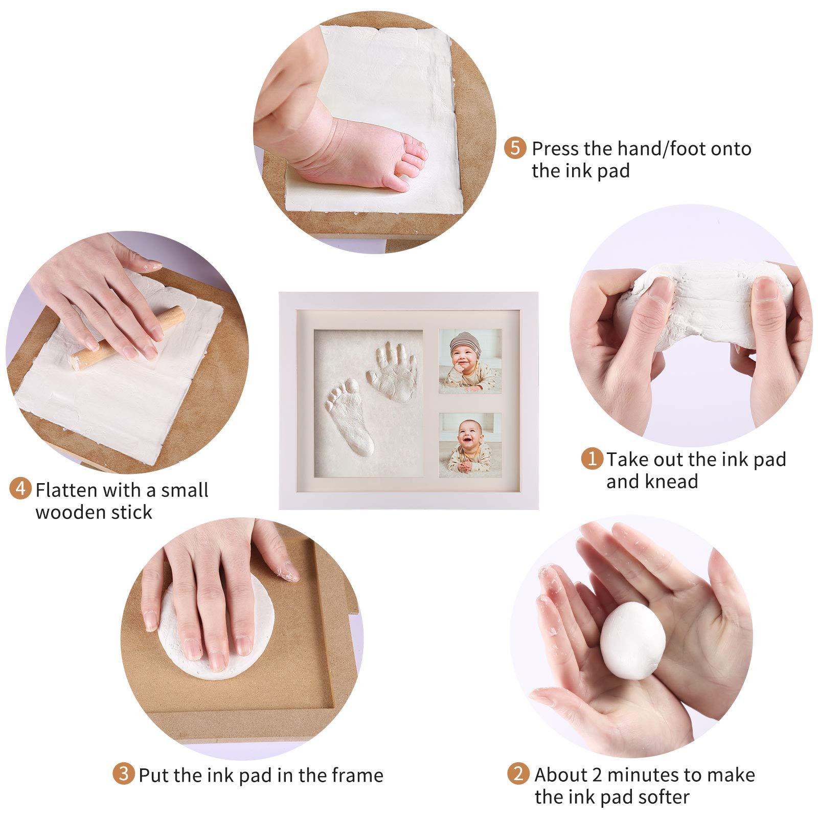 Cornice in legno per foto di bambino, impronta e impronta di piede di bambino, set di cornici per foto di bambino, cornice in legno per foto di bambino con 3 confezioni di timbri di inchiostro non tossici, qualità perfetta per feste di compleanno di famig