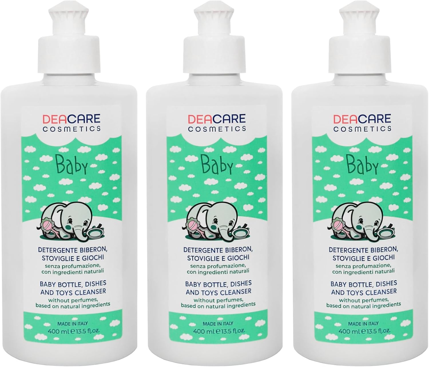 DEACARE BABY KIT DI 3 FLACONI DI DETERGENTE BIBERON, STOVIGLIE E GIOCHI DA 400ML L'UNO.