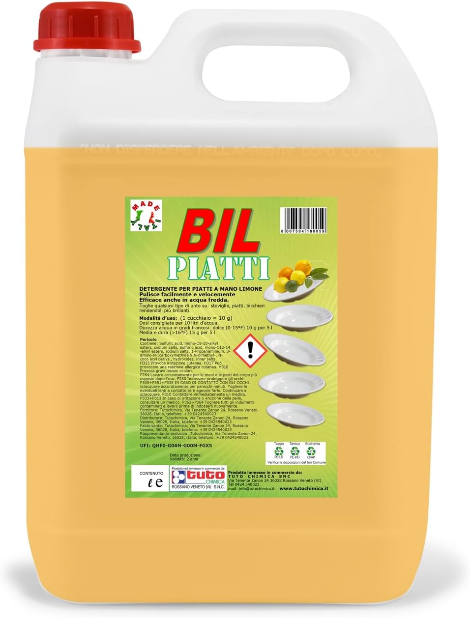 Detersivo Piatti a Mano Agrumi BIL 8-5L, Professionale, Azione Sgrassante