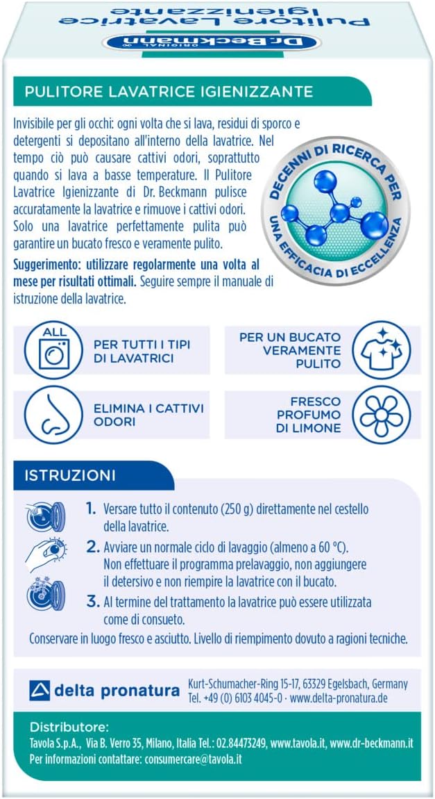 Dr. Beckmann Pulitore Lavatrice Igienizzate, Prodotto cura lavatrice con carboni attivi, Rimuove odori spiacevoli, 250 g, Confezione da 1