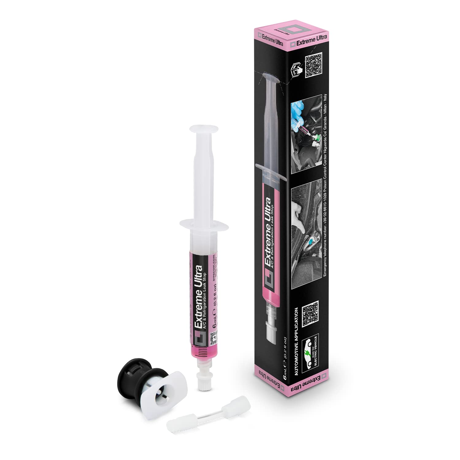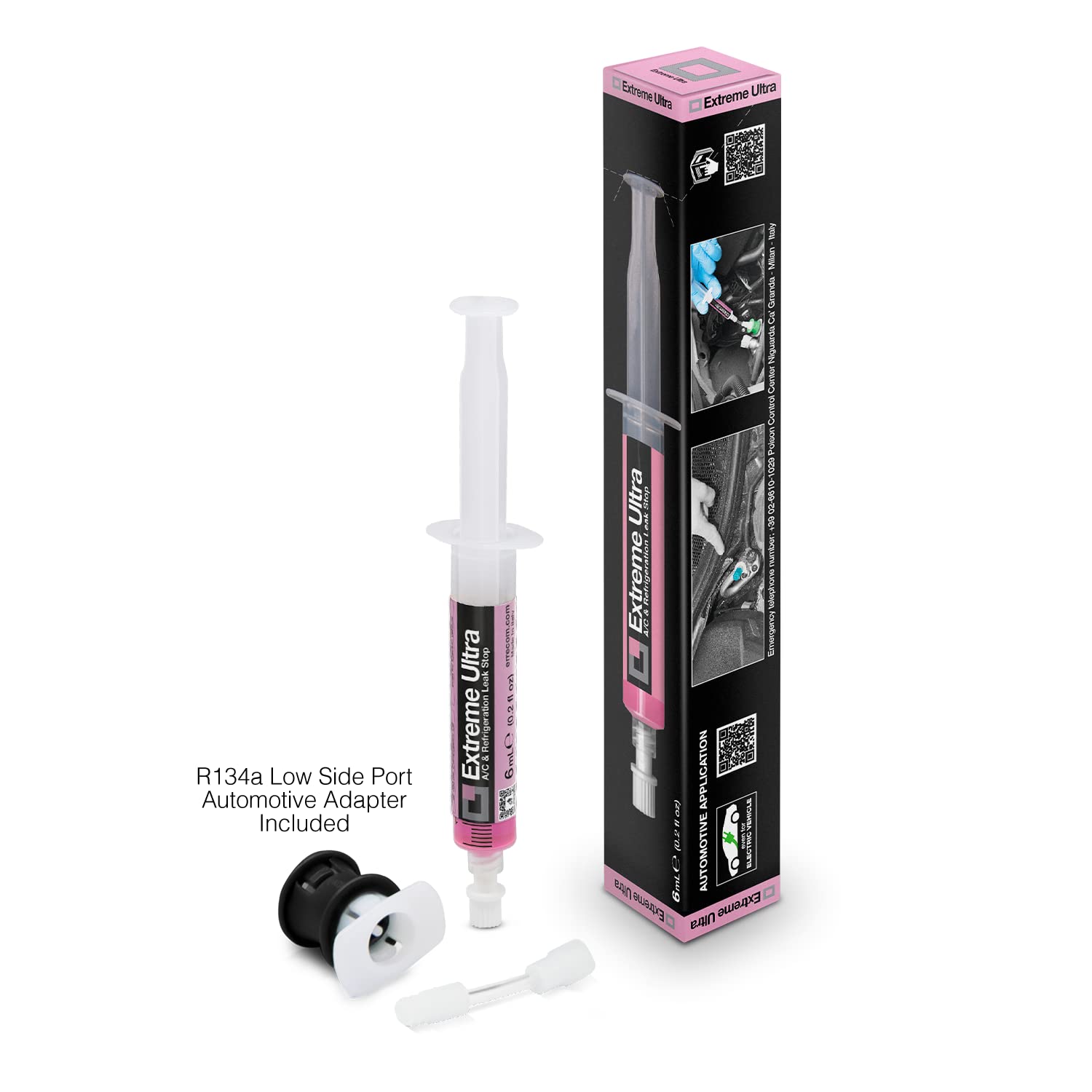 ERRECOM Extreme Ultra - 6 ml, Turafalle per Impianti di Climatizzazione Auto, Include Adattatore per valvola di Carica Lato Bassa Pressione Gas R134a
