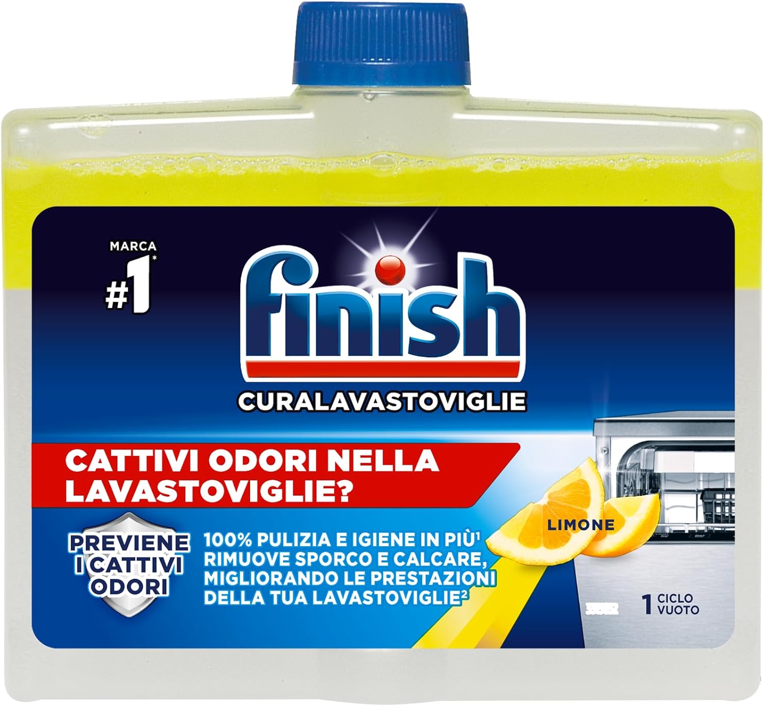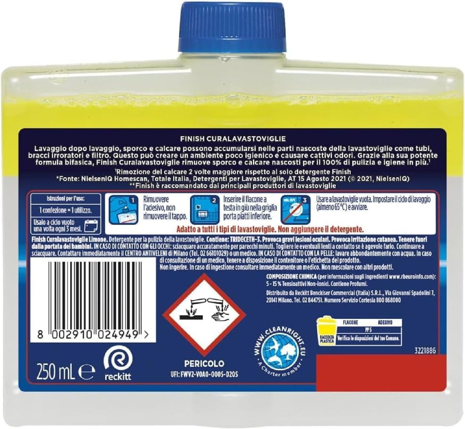 Finish Curalavastoviglie, Additivo Lavastoviglie, 1 Prodotto per Pulizia Lavastoviglie da 250 ml, Cura Lavastoviglie al Limone
