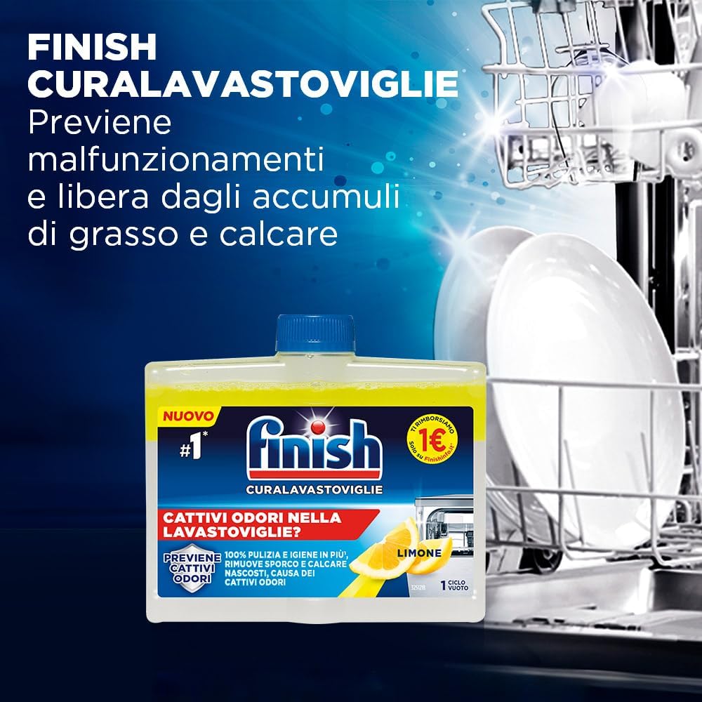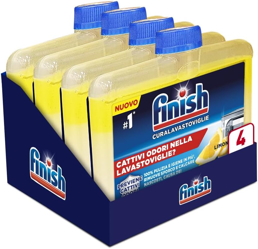 Finish Curalavastoviglie al Limone, Additivo per una Lavastoviglie Pulita dai Residui di Grasso e Calcare, 250ml (confezione da 4)