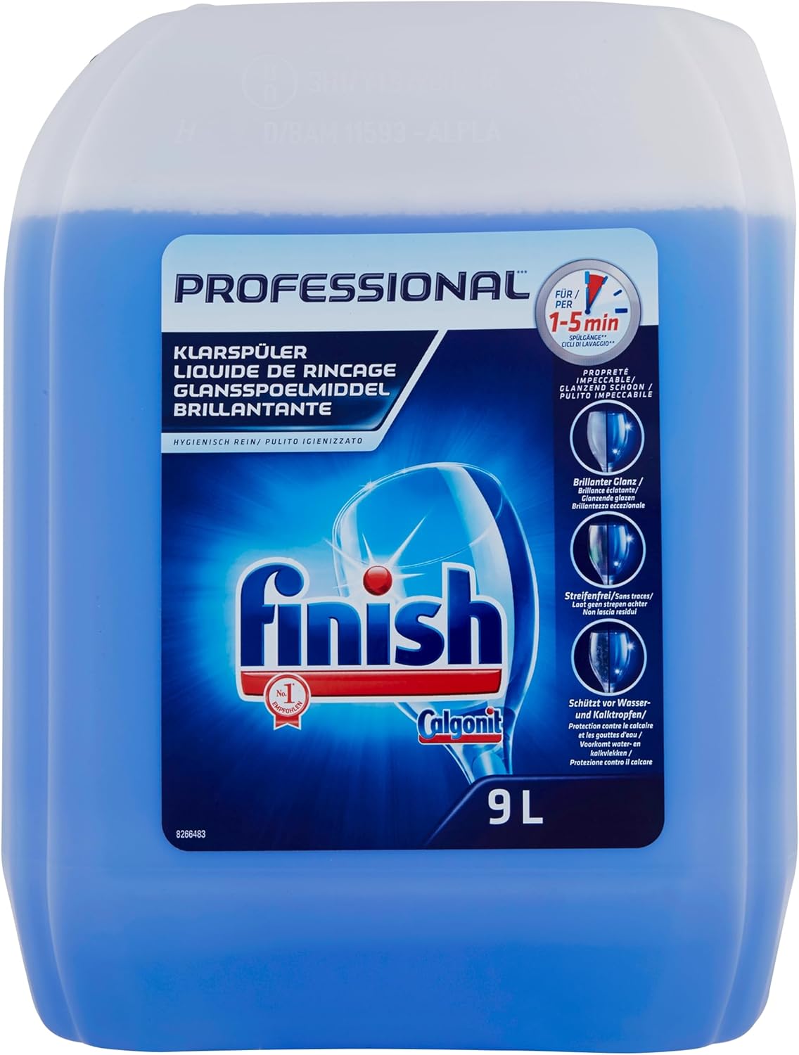 Finish Professional Brillantante, 1 prodotto da 9L, Additivo Lavastoviglie per Stoviglie Splendenti e Asciutte, Lavastoviglie Impeccabile