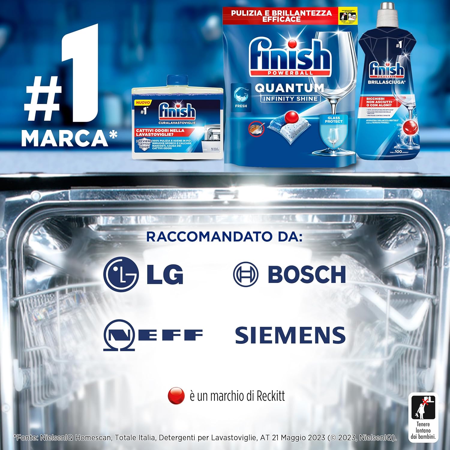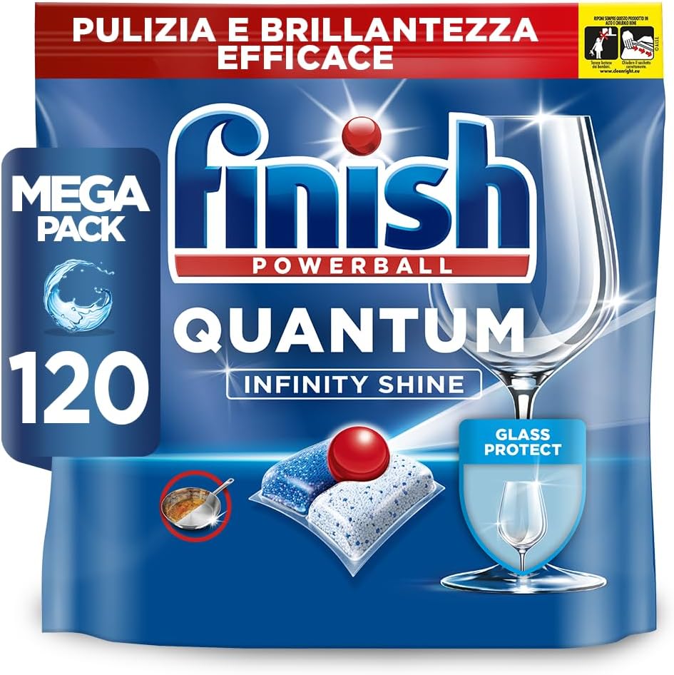 Finish Quantum Infinity Shine Pastiglie Lavastoviglie, 120 Capsule Lavastoviglie, Detergenti per Lavastoviglie per una Pulizia e Brillantezza Efficace (Confezione da 2)