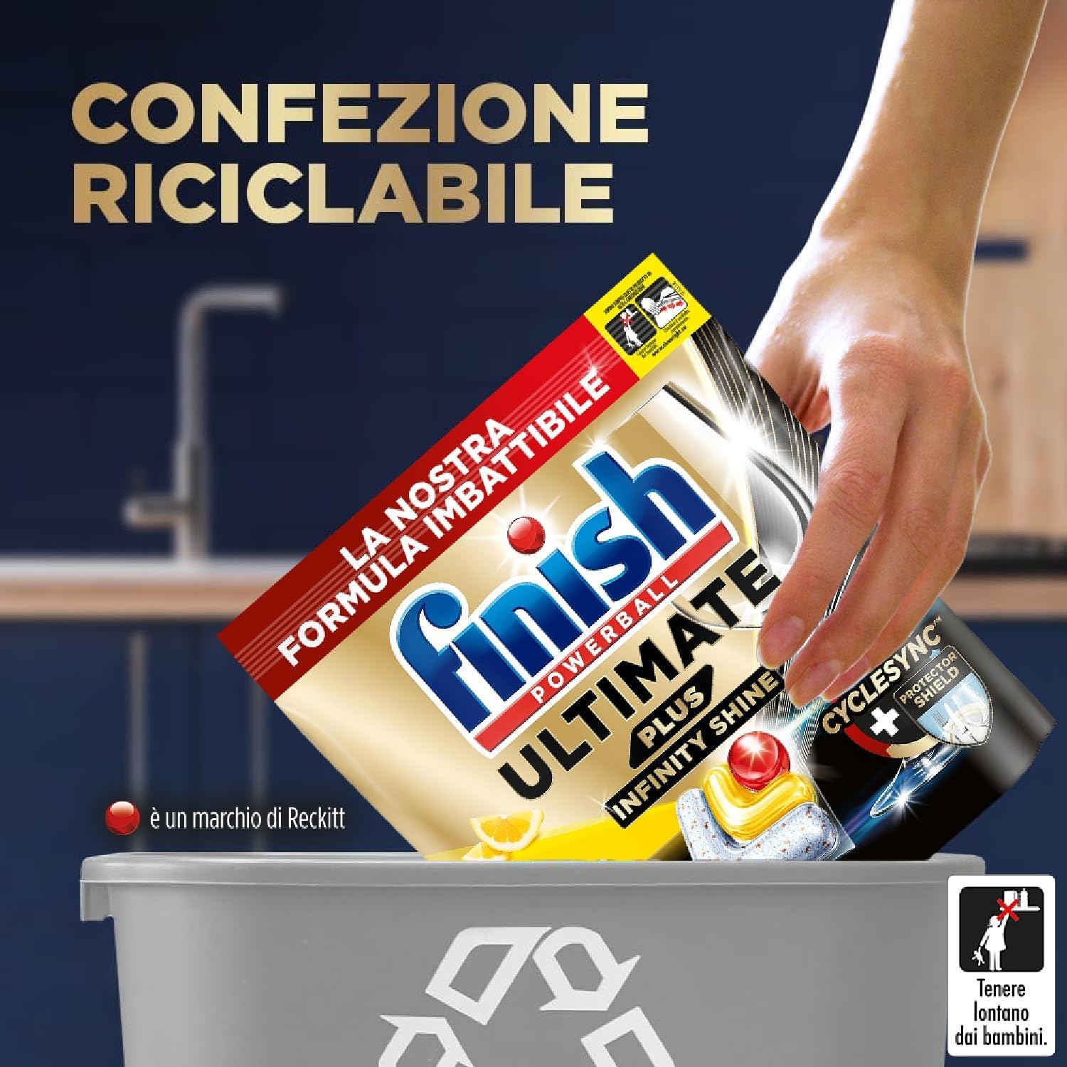 Finish Ultimate PLUS Infinity Shine Pastiglie Lavastoviglie al Limone, 105 Capsule con Scudo Protettivo contro lo Sporco e i Residui Incrostati (Confezione da 2)
