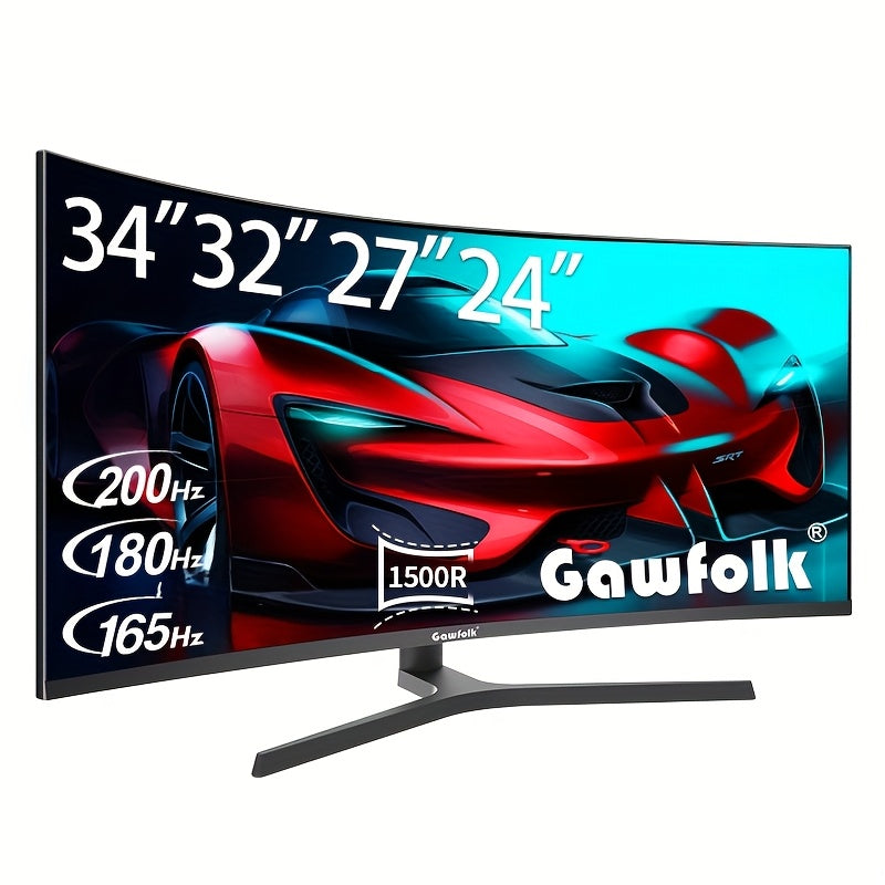 Gawfolk Monitor Curvo Ultrawide da 34/32/27/24 Pollici, Schermo pz 1500R UWQHD 3440x1440 a 165/180/200Hz con FreeSync, Base Regolabile Multi-Direzionale e Supporto VESA 75*75mm per Gaming