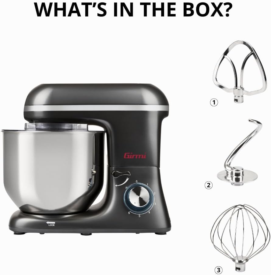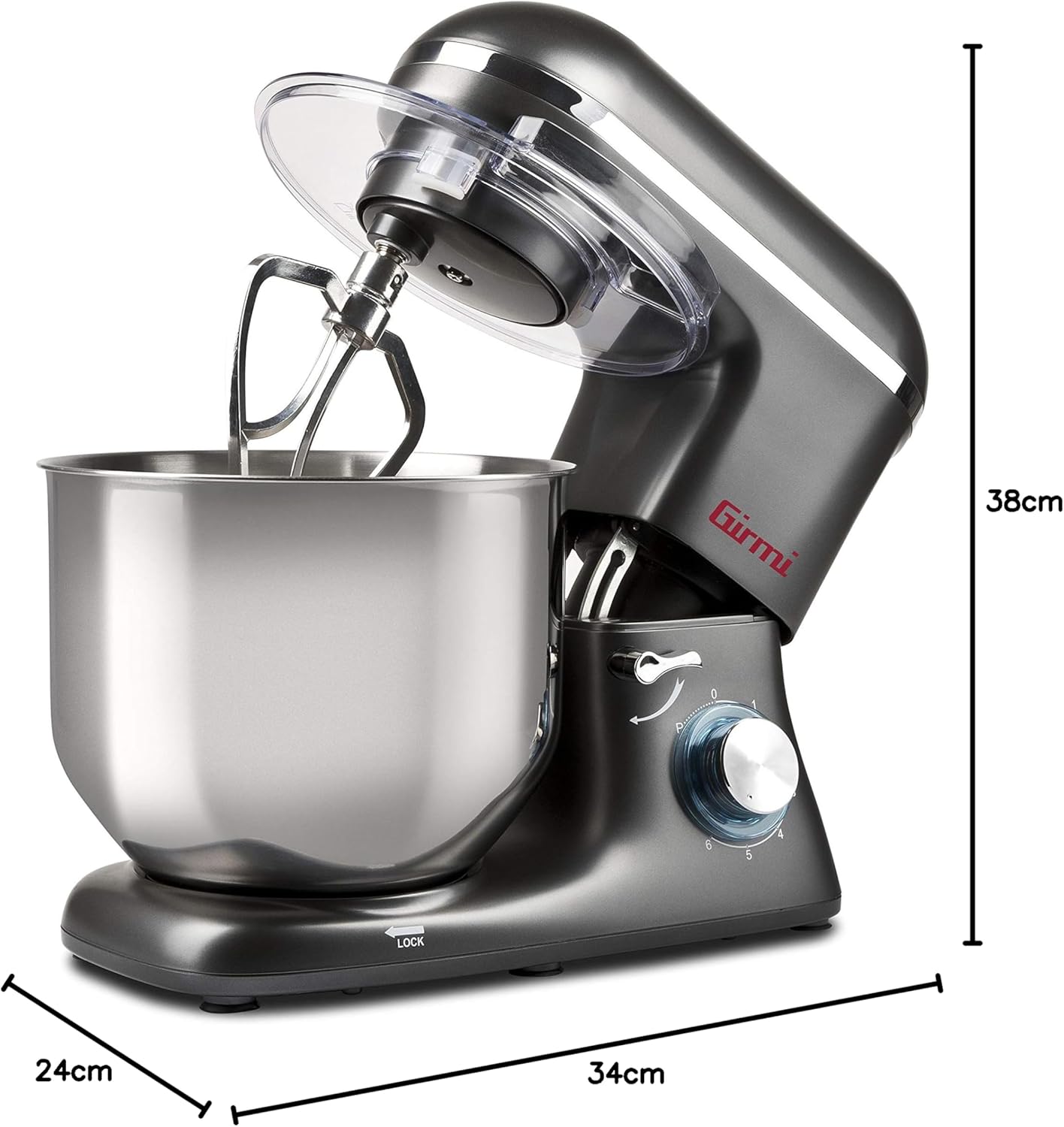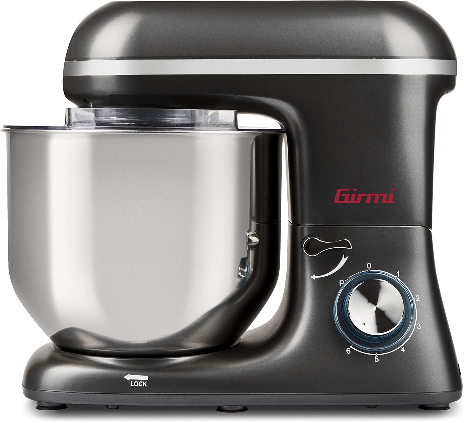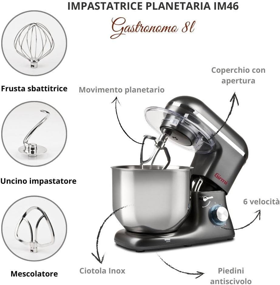 Girmi IM46 Impastatrice Planetaria, 1800 W Max, 8 Litri, 6 Velocità, Pulse, Contenitore inox, Dispositivo di sicurezza, Accessori inclusi, Grigio Antracite