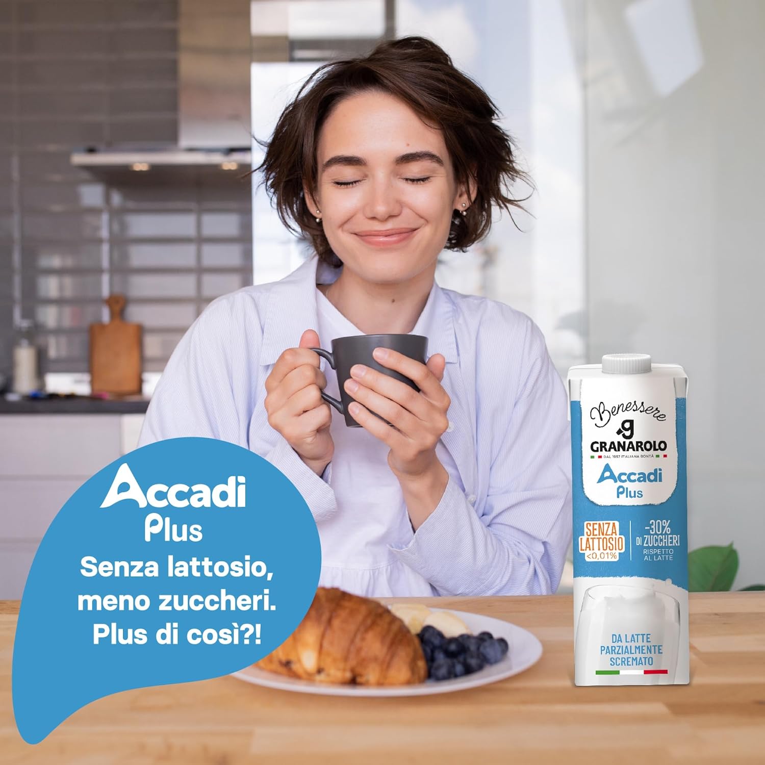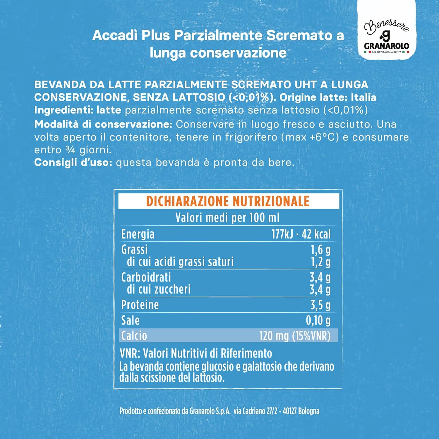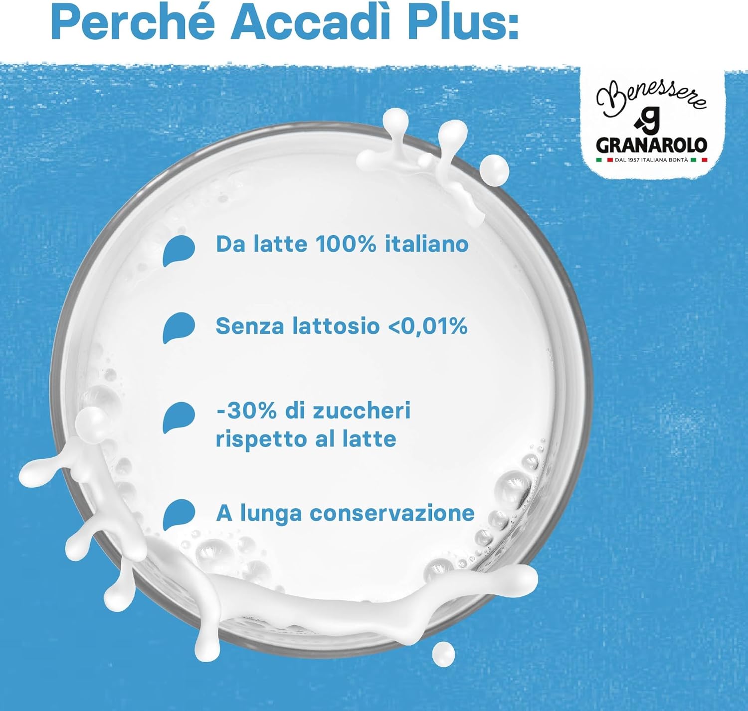 Granarolo Benessere Accadì Plus Parzialmente Scremato UHT, 6 Confezioni da 1L, da Latte 100% Italiano, Senza Lattosio (<0,01%), a Lunga Conservazione