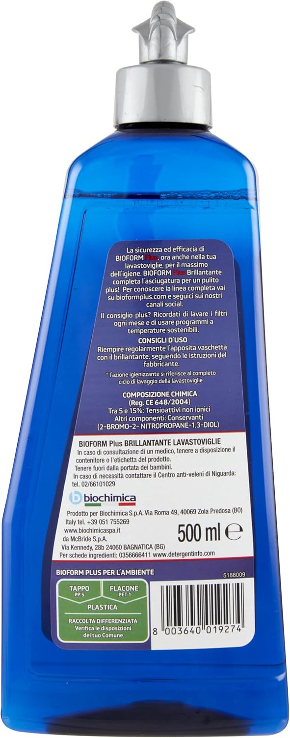 Hemir Bioform Plus Brillantante Lavastoviglie igienizzante 500 ml, Liquido