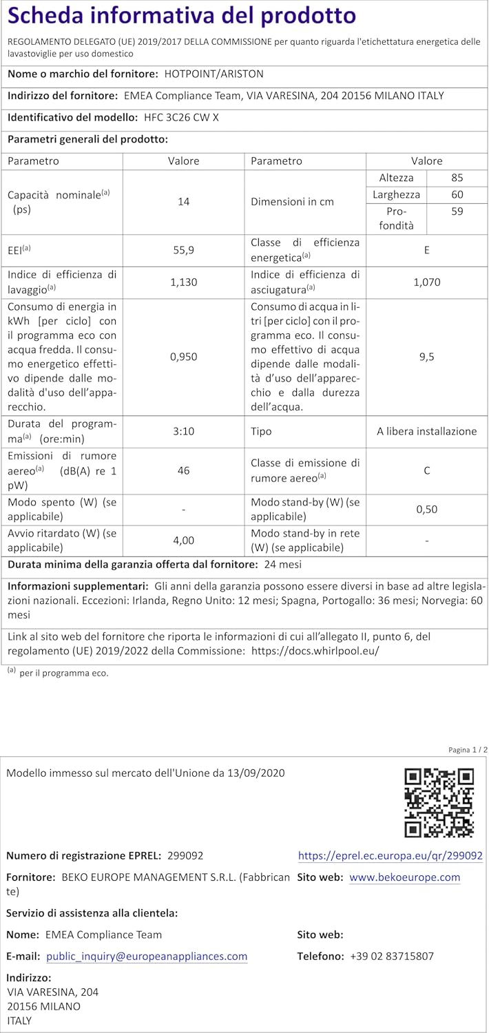 Hotpoint Ariston HFC 3C26 CW X, lavastoviglie verticale, 14 posti, terzo cestello, inox