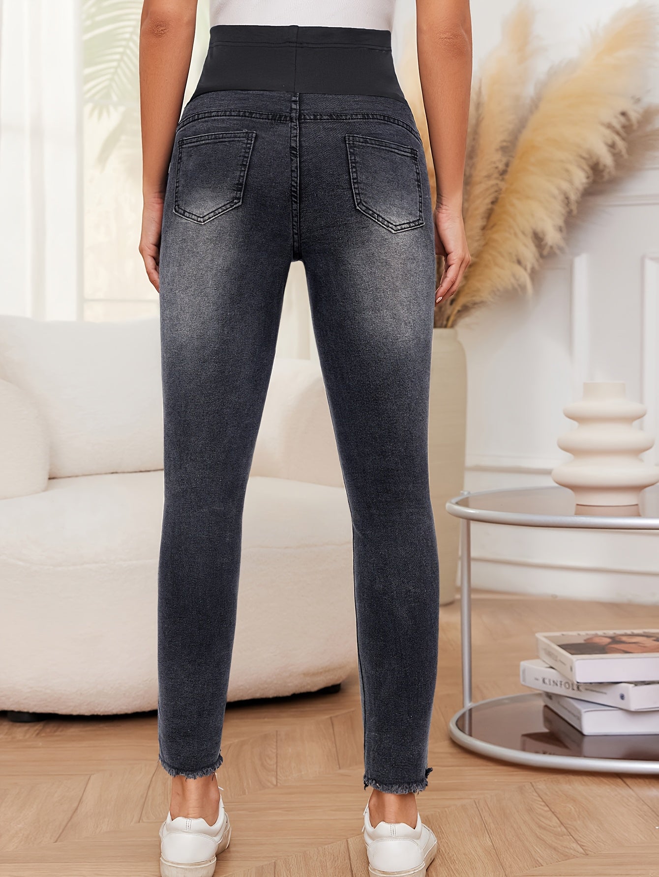 Jeans Skinny Maternità Comodi & alla Moda in Nero & Grigio - Vita Alta, Denim Elasticizzato con Miscela Morbida, Non Trasparente, Adatti a Tutte le Stagioni, Facili da Curare, Jeans Allseason|Jeans Maternità Eleganti| Jeans Misto