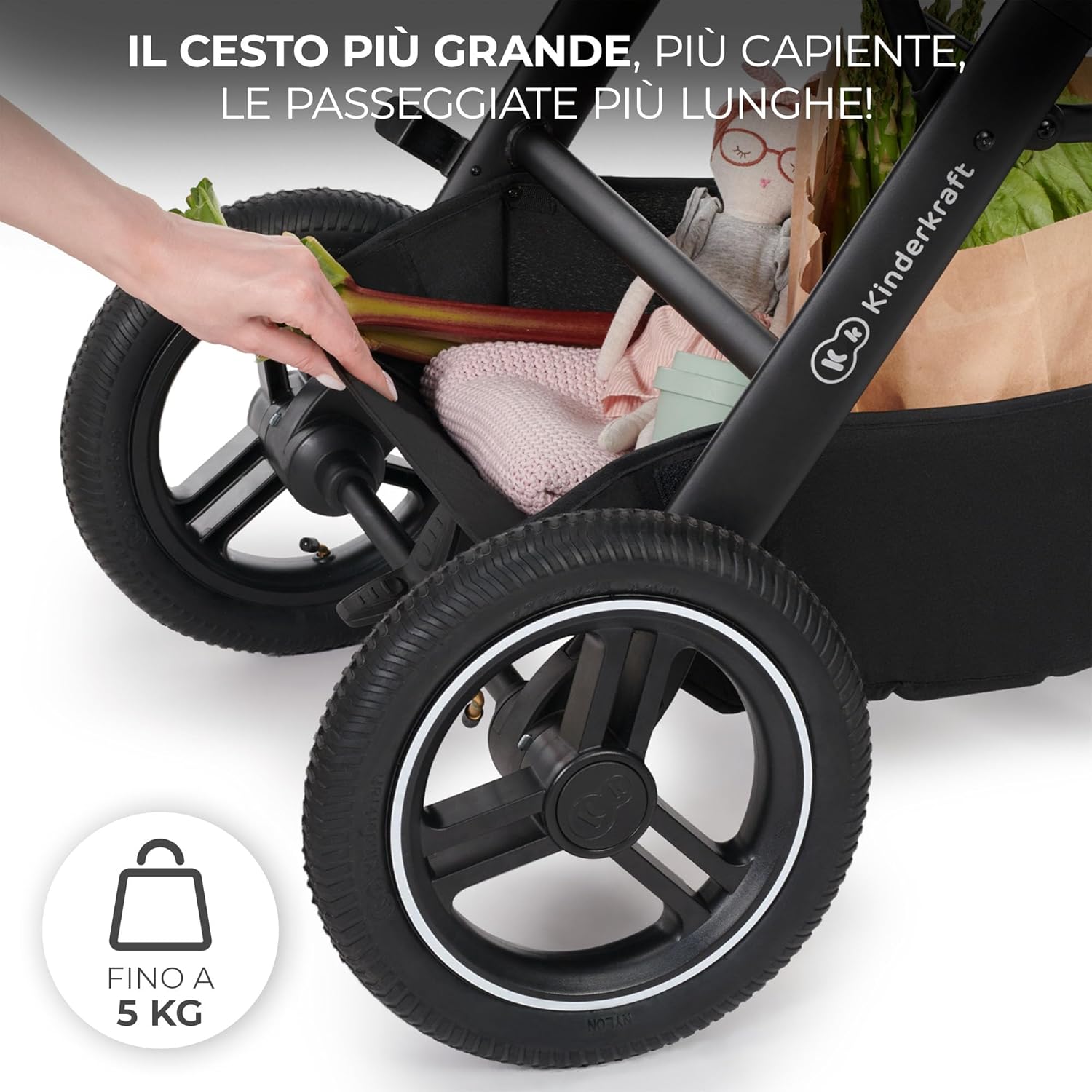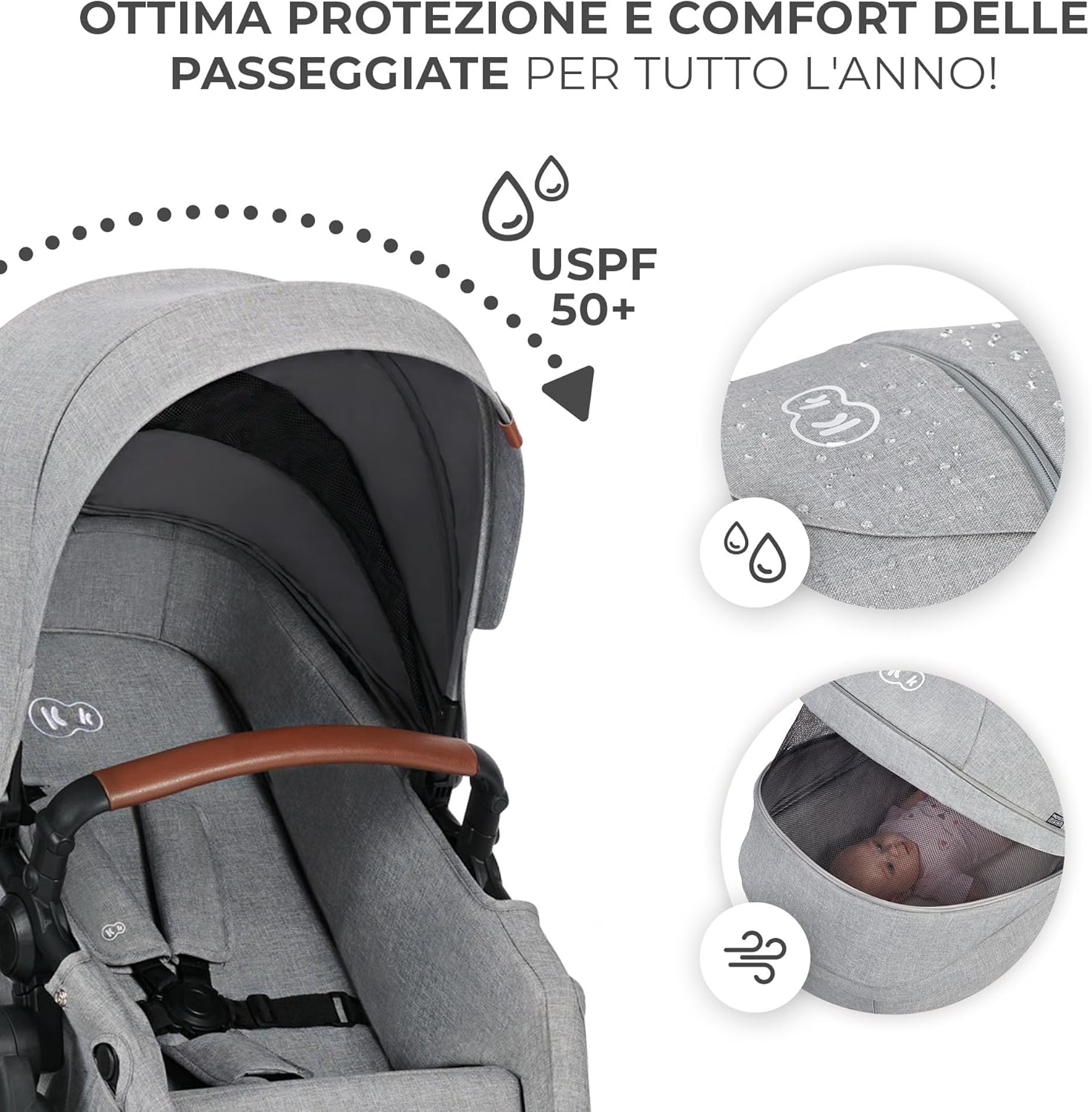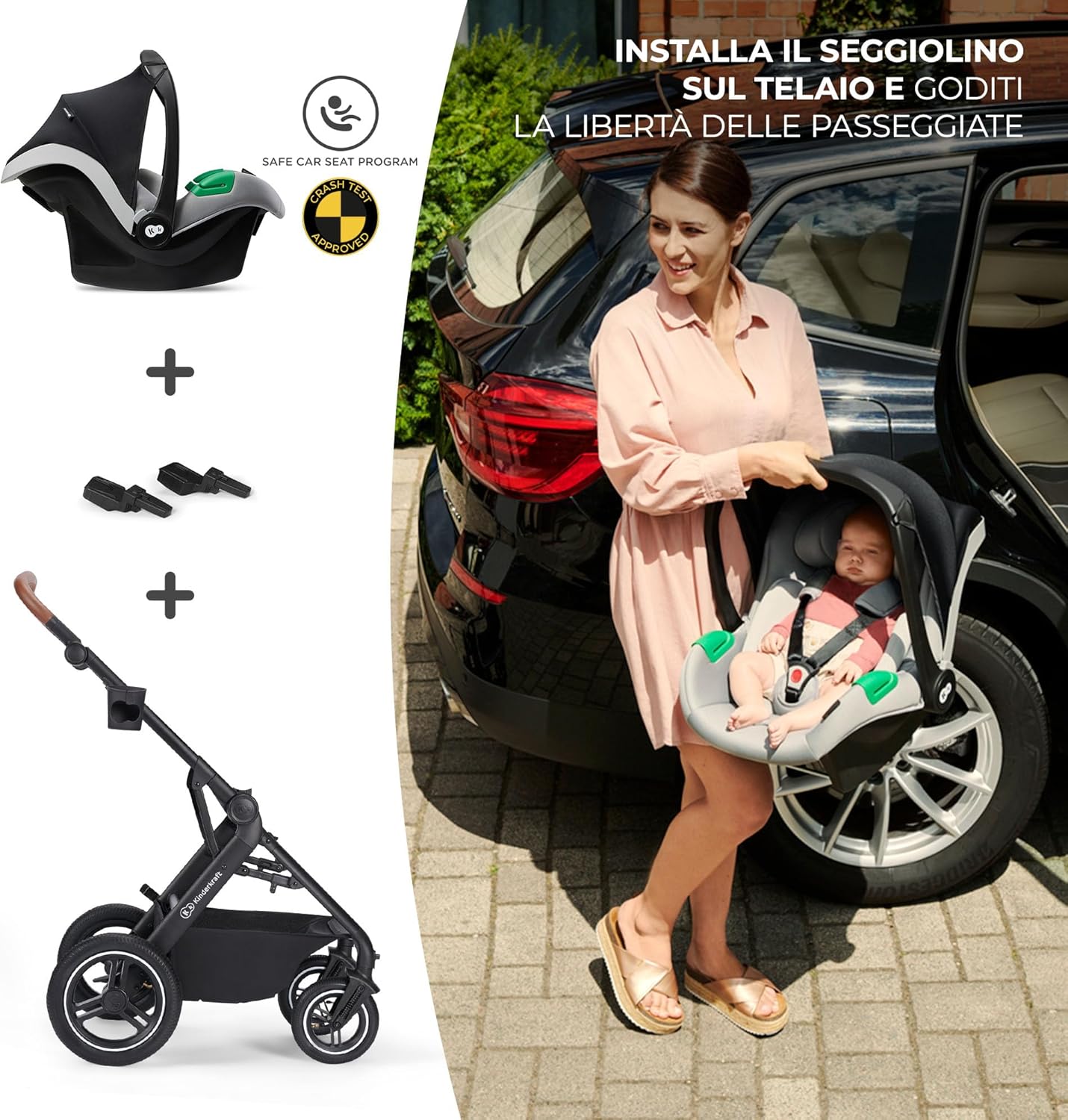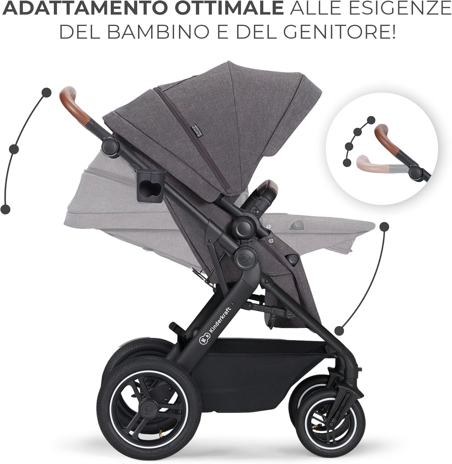 Kinderkraft B-TOUR Passeggino Trio Neonati 3 in 1 di 22 kg, Sistema modulare combinato, con Ovetto I-size 40-75 cm, Pieghevole, Sedile XL, Impermeabile filtro UPF50+, Posizione Nanna, Grigio