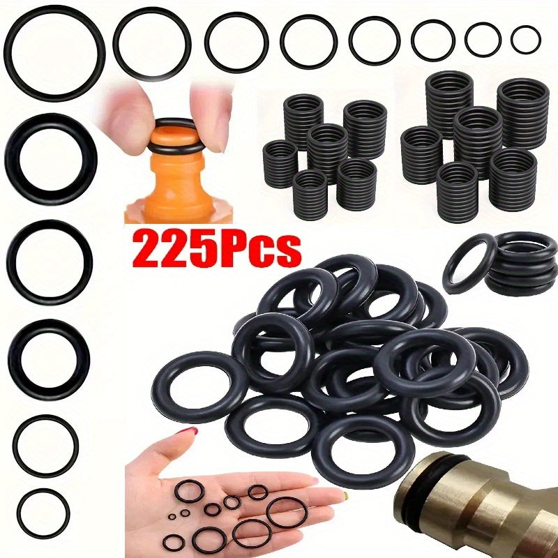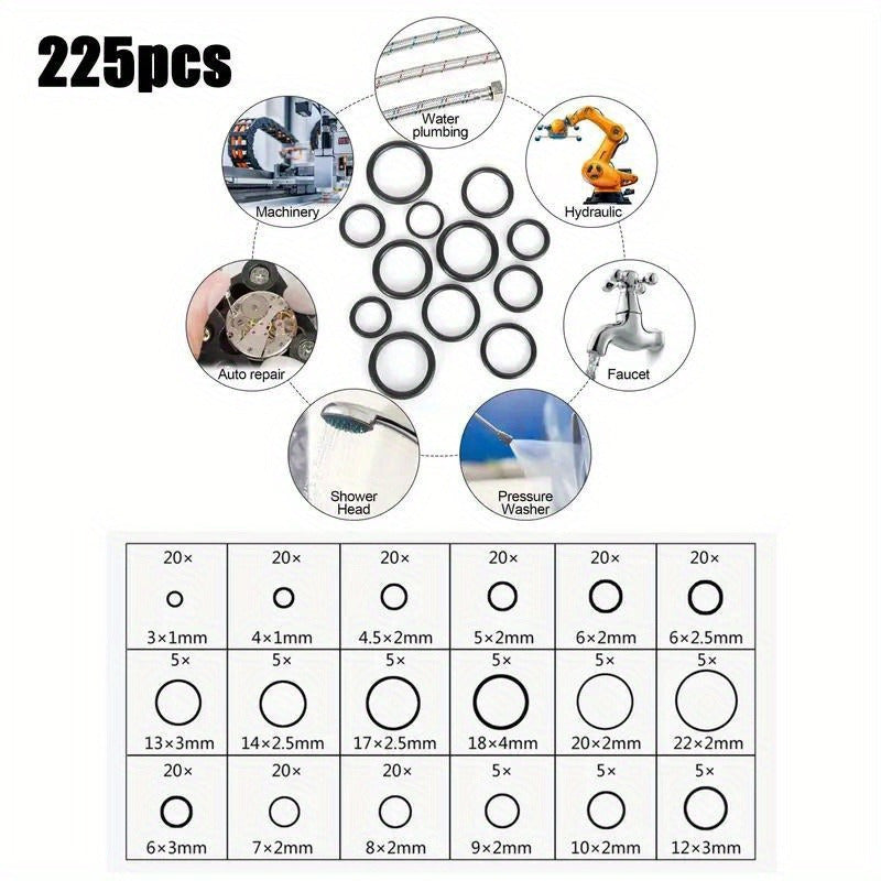 Kit assortimento di anelli in gomma da 225 pezzi, 18 dimensioni, resistenti all'olio, guarnizioni sigillanti sferiche resistenti per idraulica, automobilismo, meccanica - Contiene scatola di stoccaggio riutilizzabile