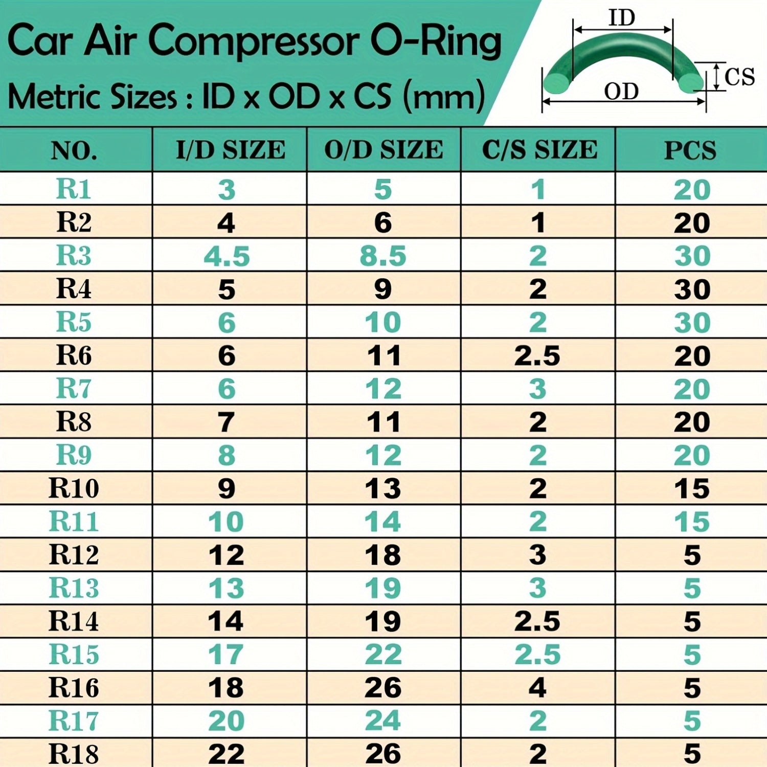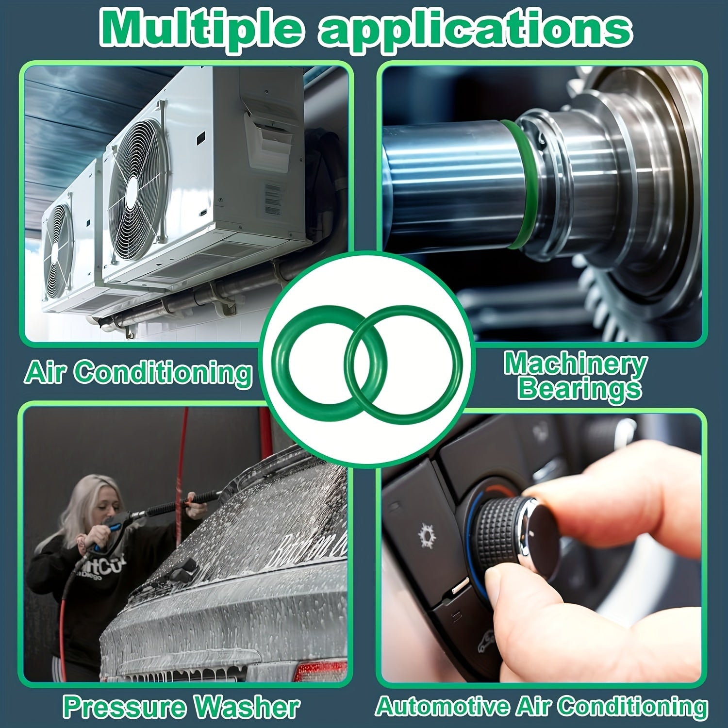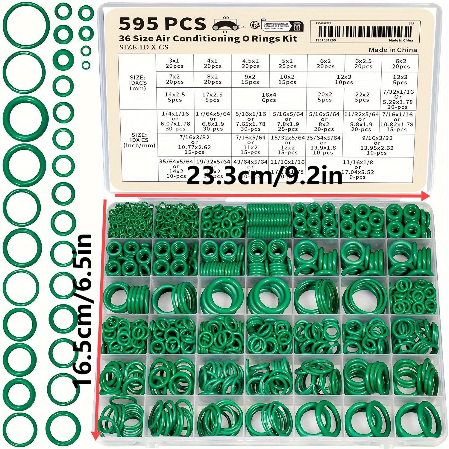 Kit di 595 anelli O metrici e SAE per riparazioni di AC, compressore e rubinetto - Anelli sigillanti verdi durevoli per manutenzione professionale di HVAC, strumenti per riparazioni di linee di condizionamento d'aria | Stoccaggio aperto | Materiale traspa