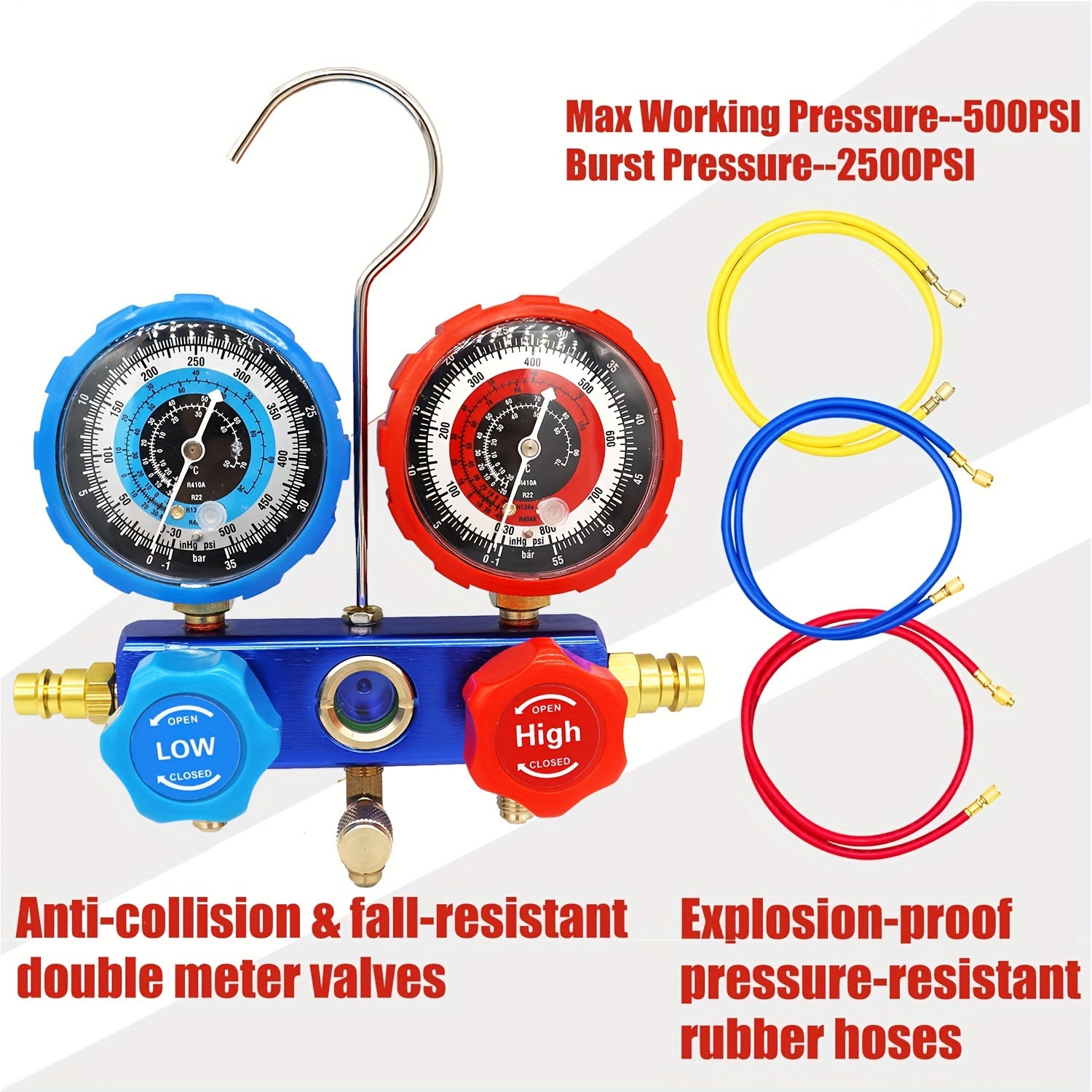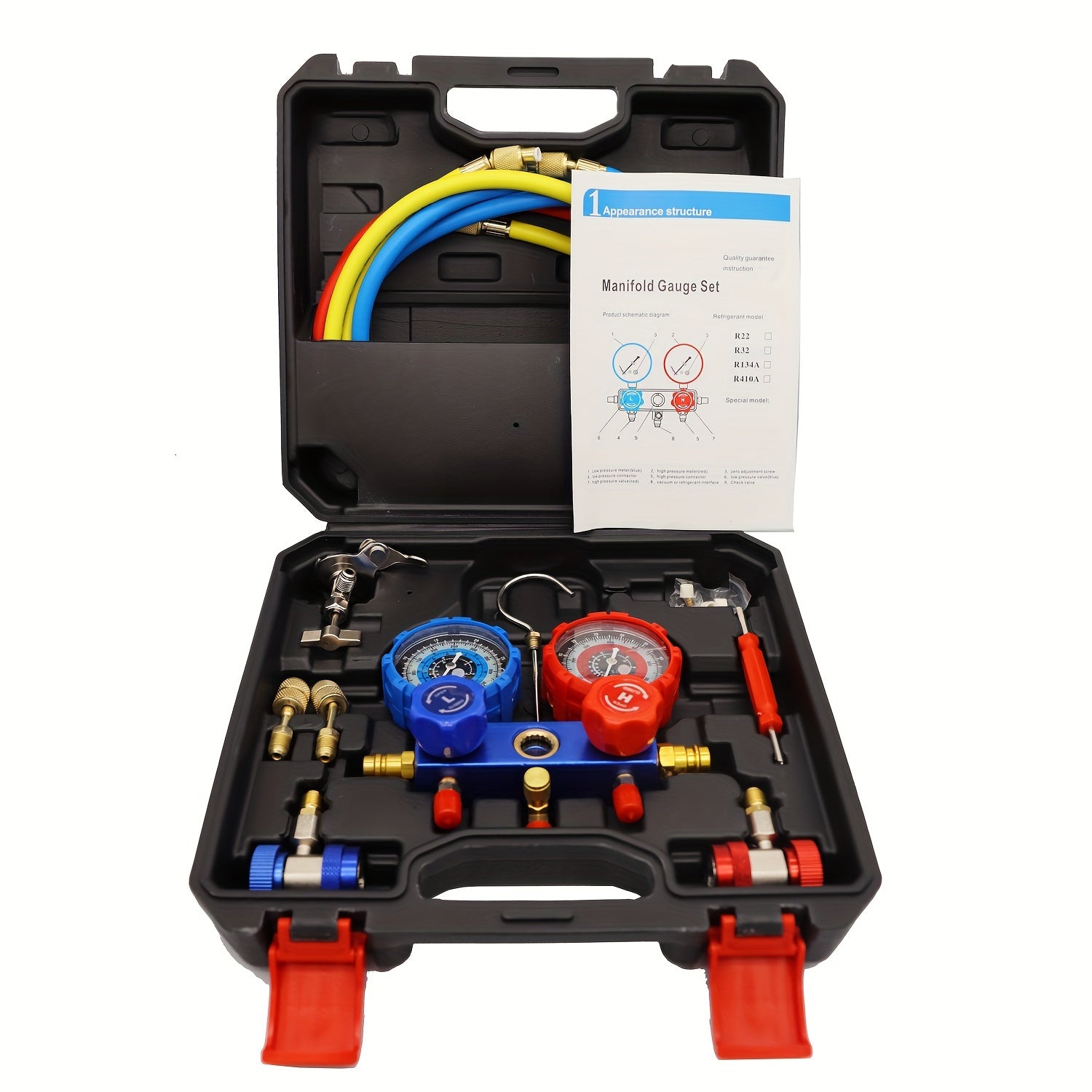 Kit di Strumenti Diagnostici per Condizionatori Mythtiger - Set di Valvole a Doppio Manometro R410A, R22, R134a, R404A per Riparazione Sistema di Raffreddamento, Accessori di Raffreddamento per Auto