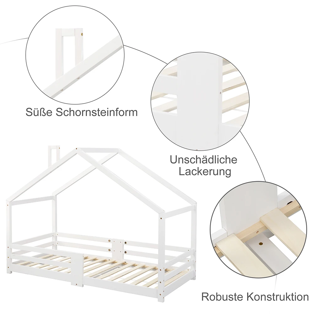 KOMHTOM Letto per bambini 90x200 cm in legno di pino bianco senza materasso