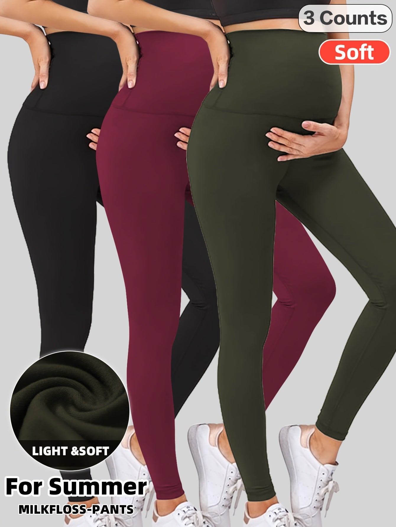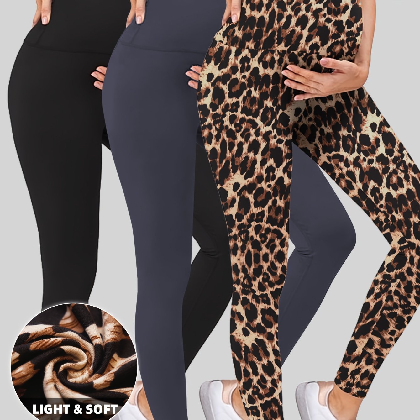Leggings Maternità a Vita Alta 3 Pezzi - Morbidi, Elasticizzati, Comodi Pantaloni Yoga per la Gravidanza con Stampa Leopardata, Neri e Grigi, Tessuto Leggero e Milkfloss per Tutte le Stagioni, Abbigliamento Maternità