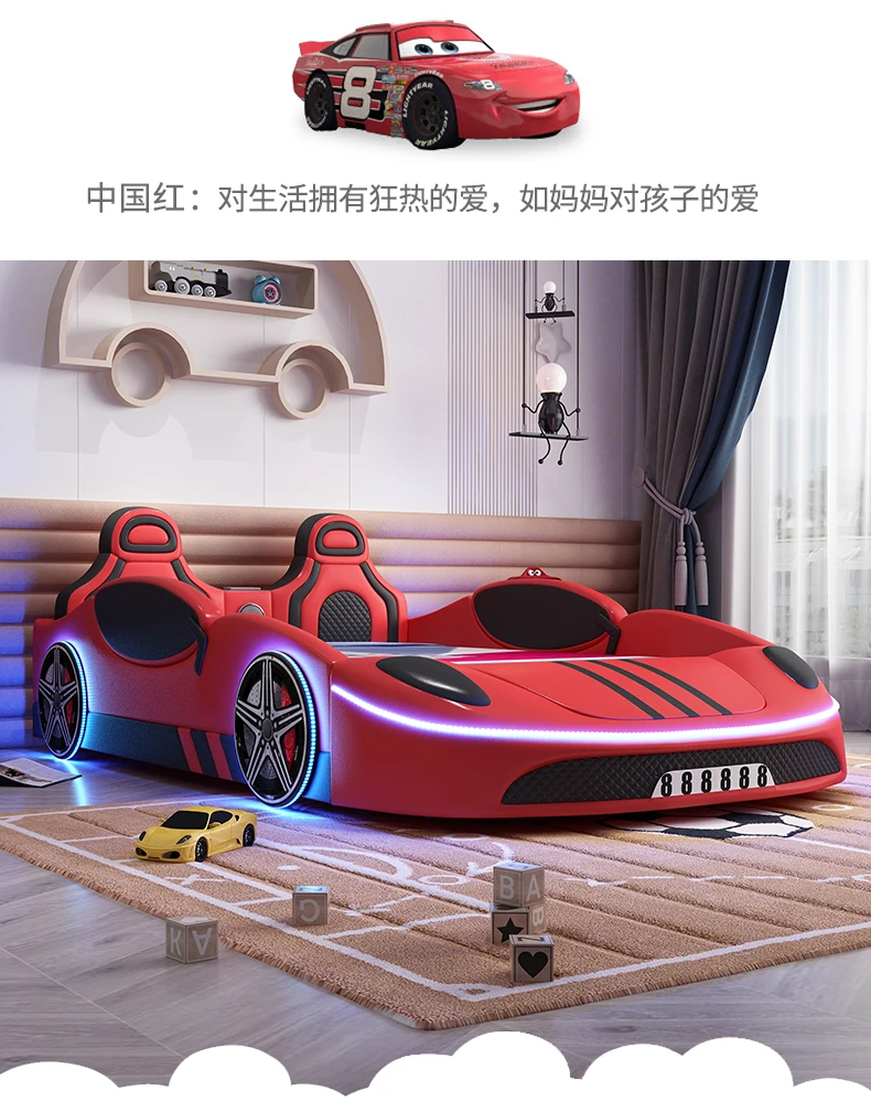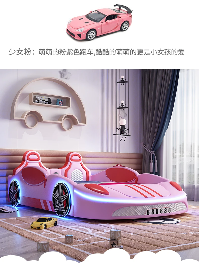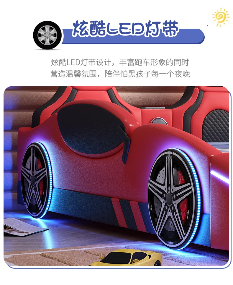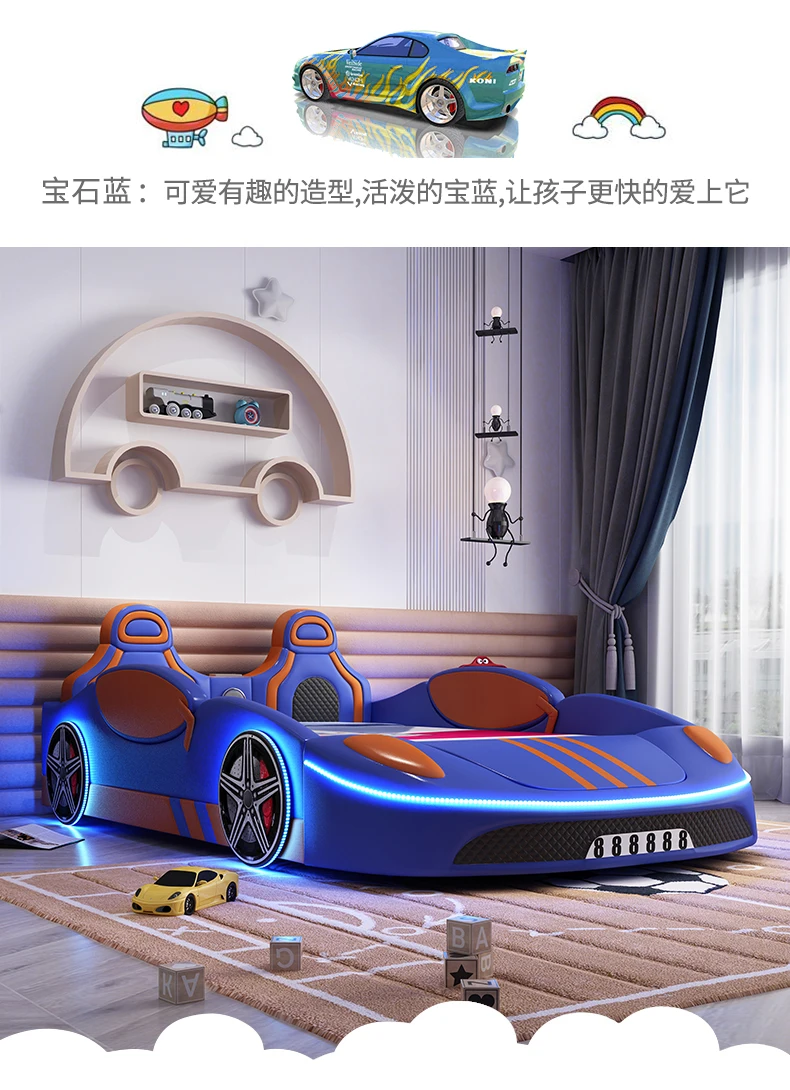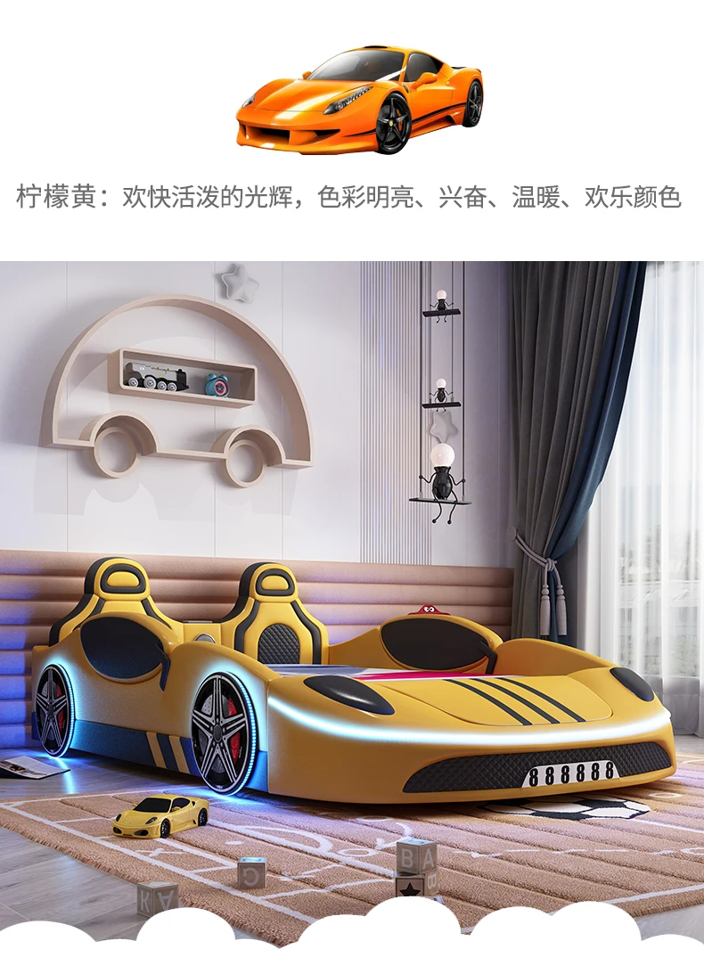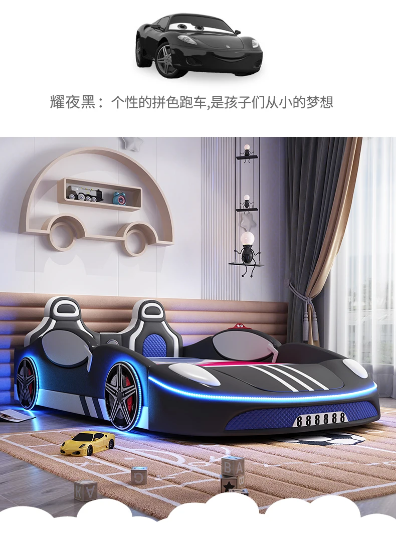 Letti per bambini di sicurezza normale Guardrail a forma di auto Box in stile moderno Letti per bambini Design per ragazzi Mobili per bambini singoli illuminati per la casa
