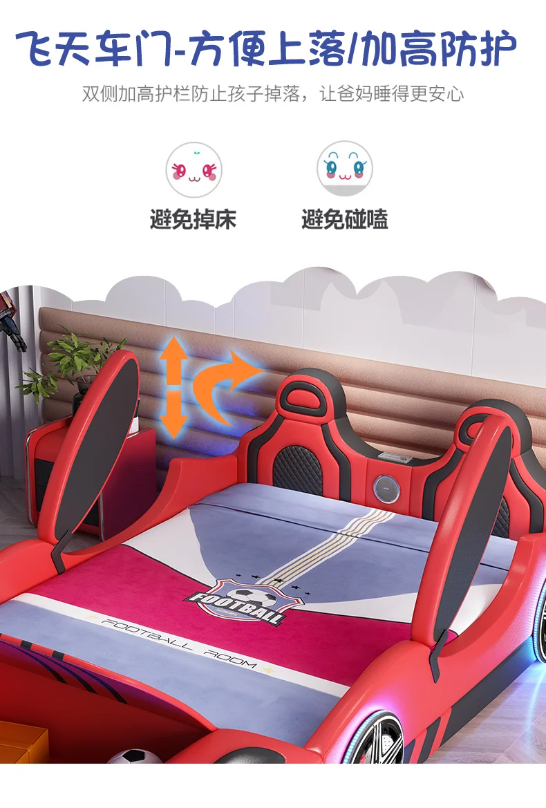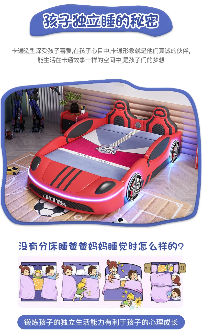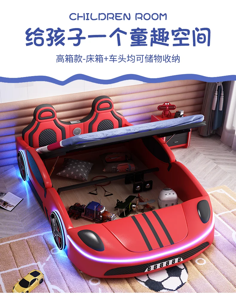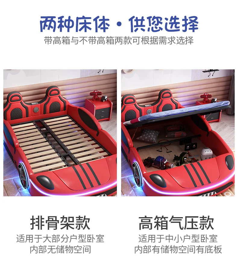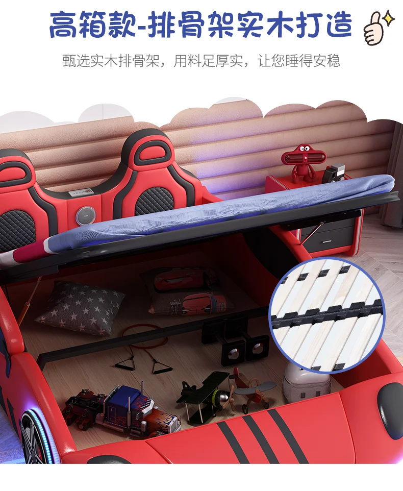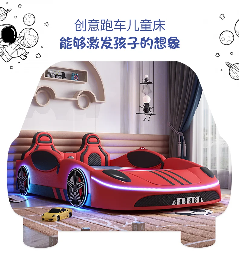 Letti per bambini di sicurezza normale Guardrail a forma di auto Box in stile moderno Letti per bambini Design per ragazzi Mobili per bambini singoli illuminati per la casa
