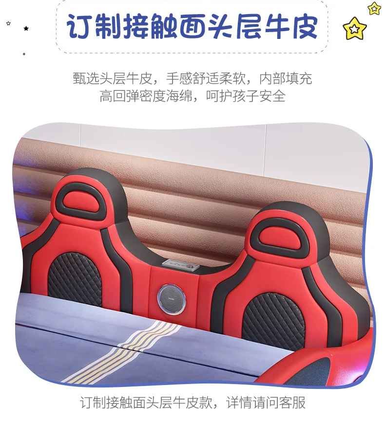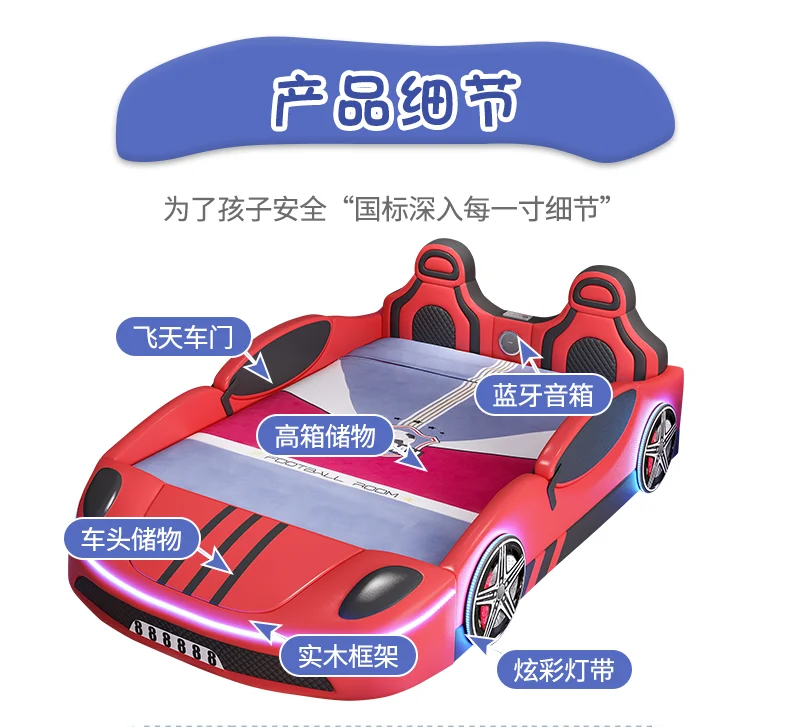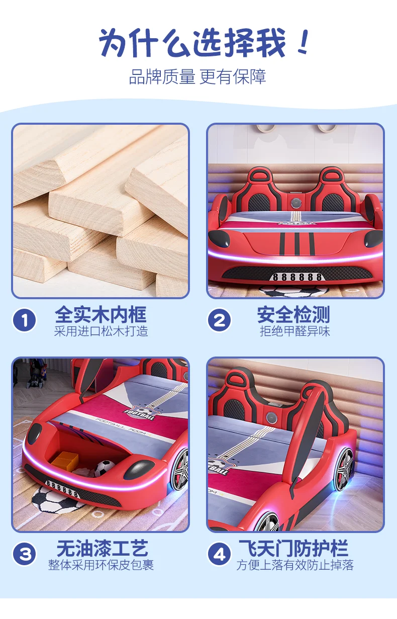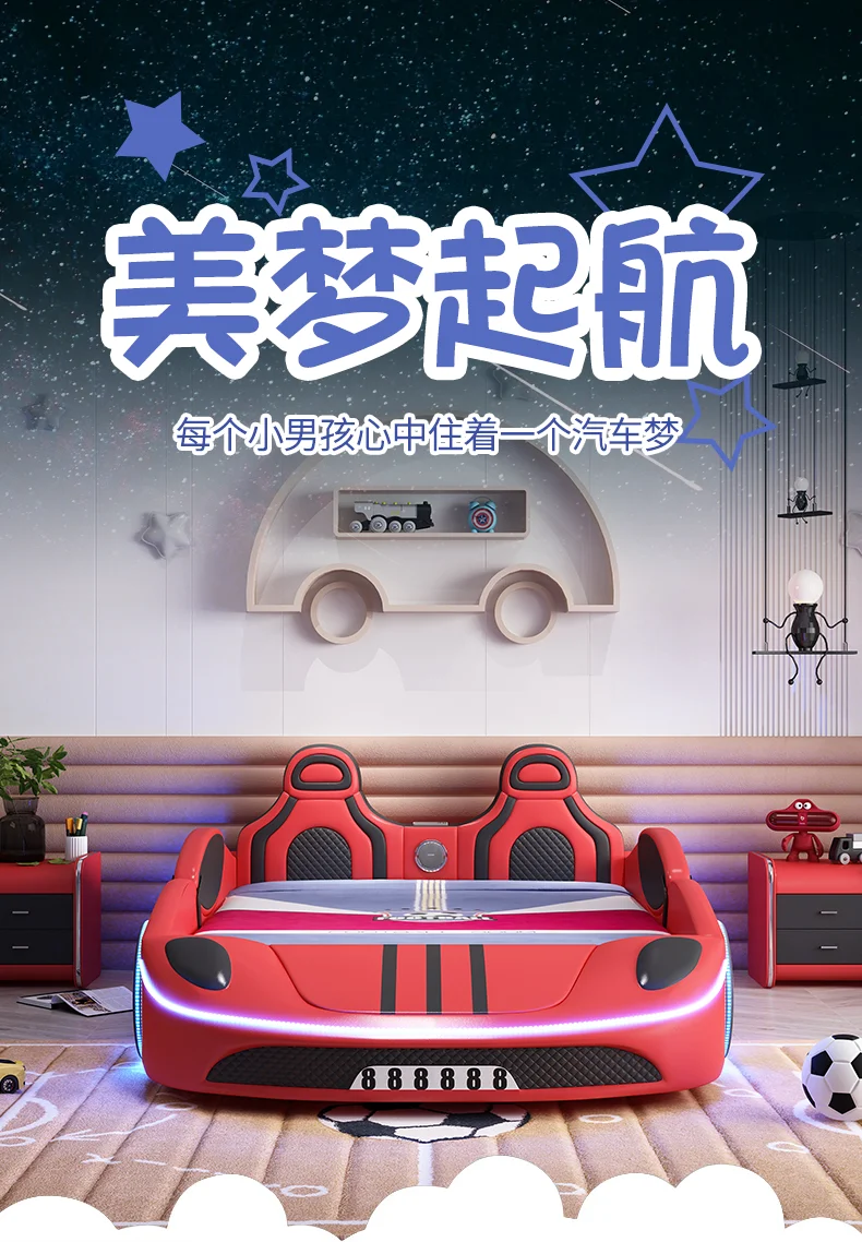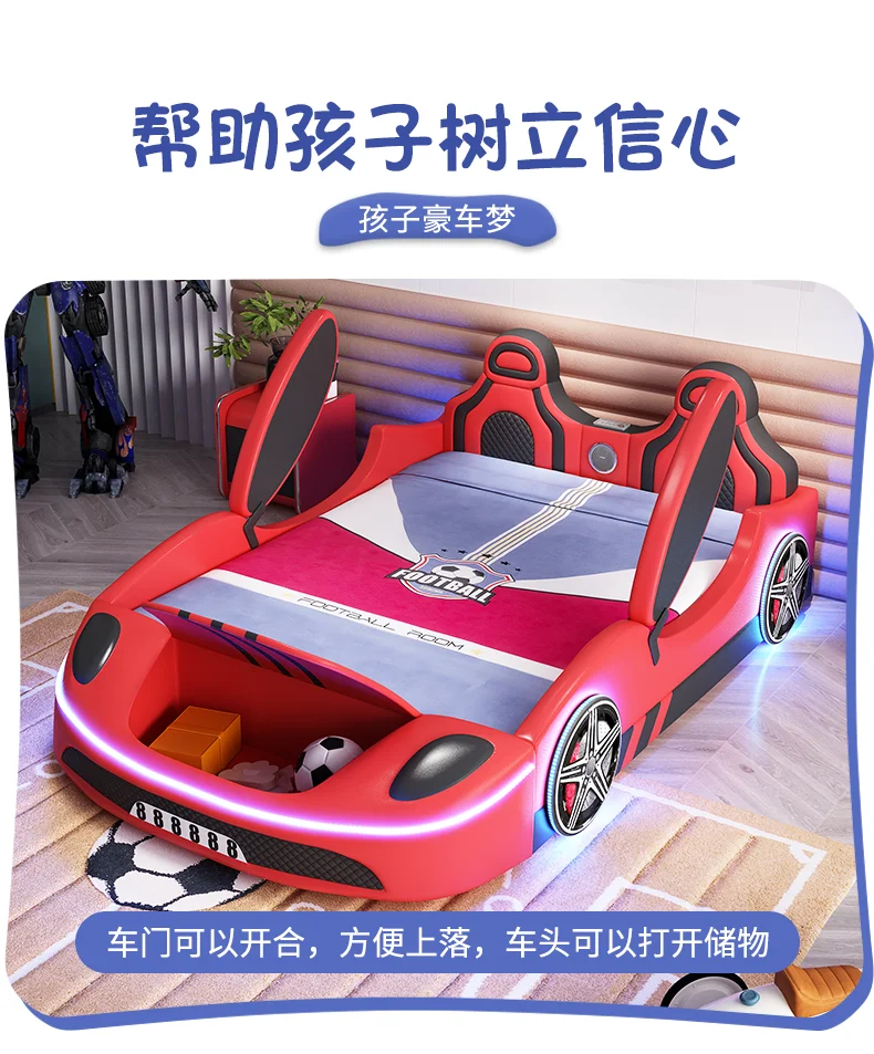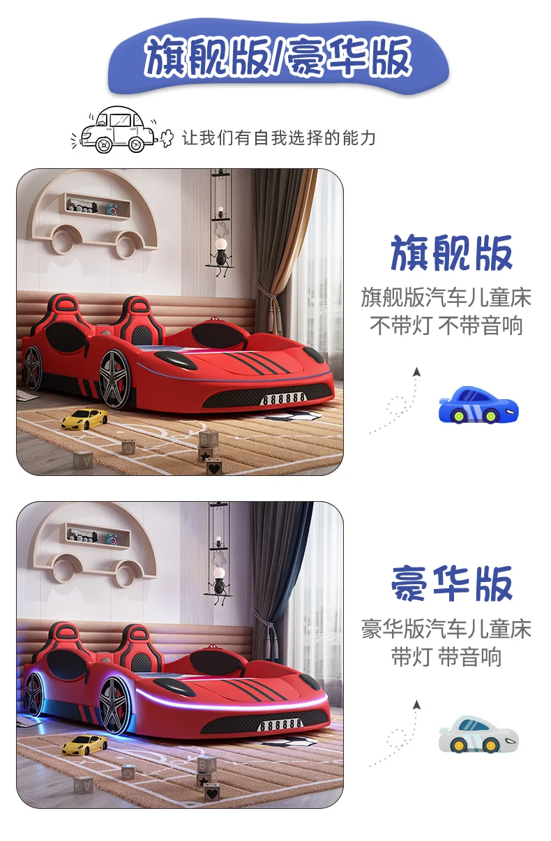 Letti per bambini di sicurezza normale Guardrail a forma di auto Box in stile moderno Letti per bambini Design per ragazzi Mobili per bambini singoli illuminati per la casa
