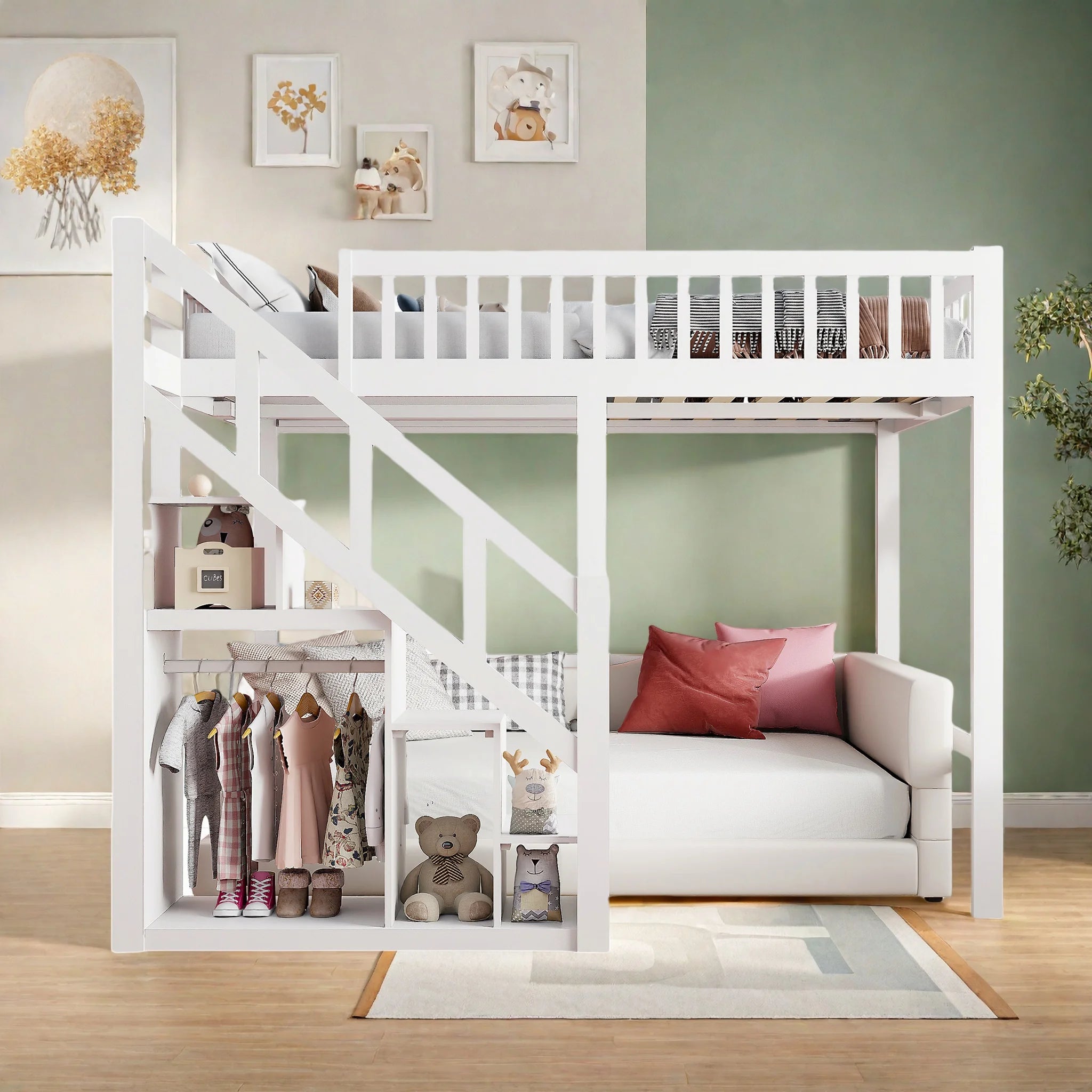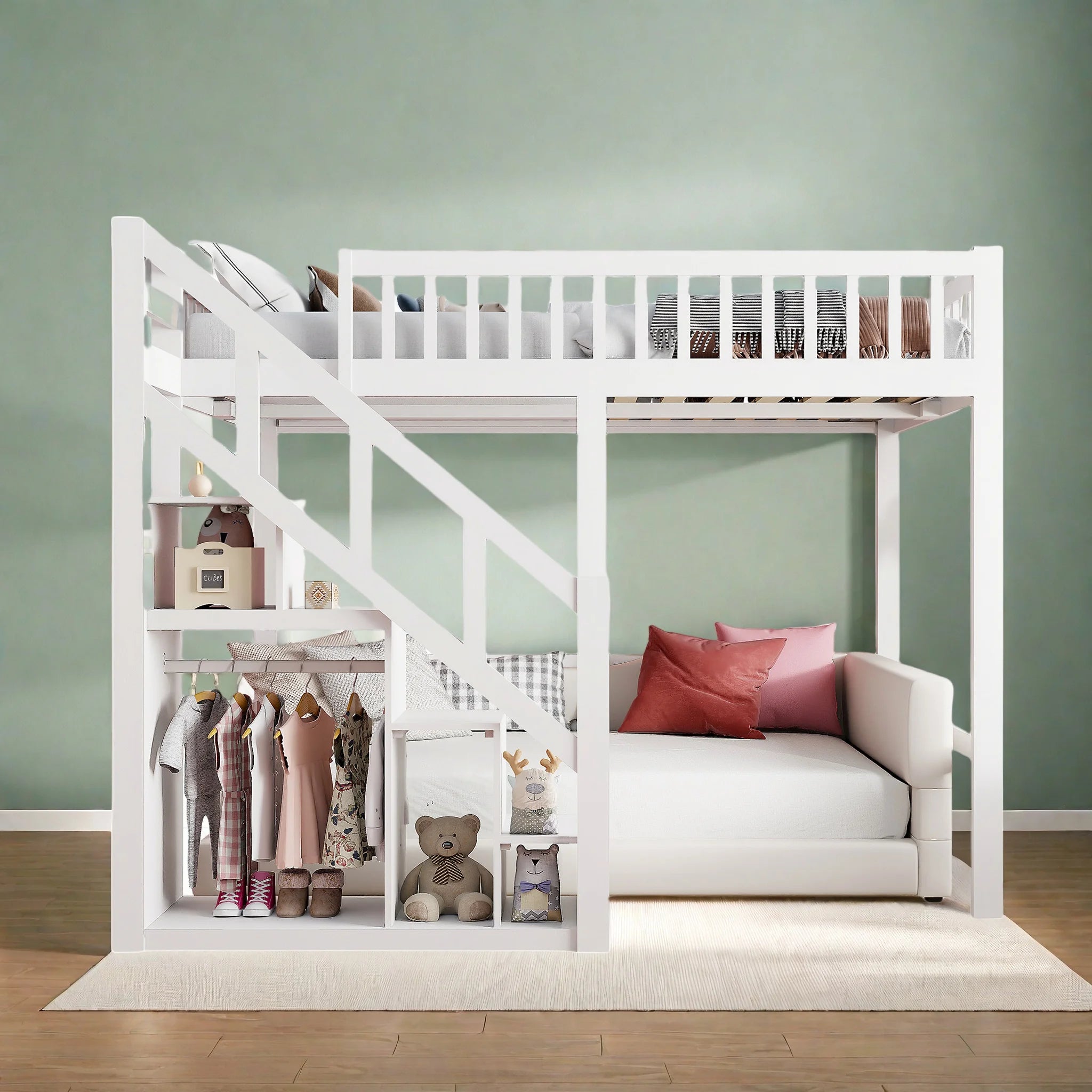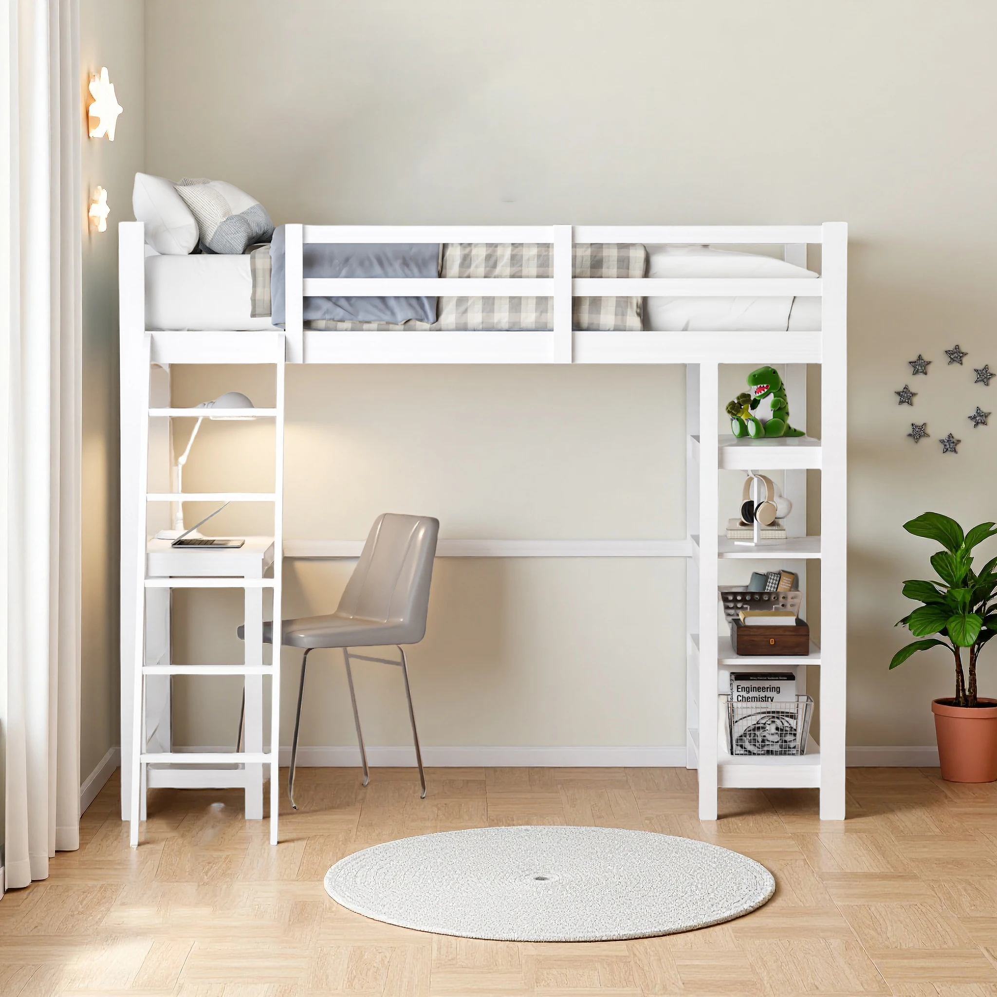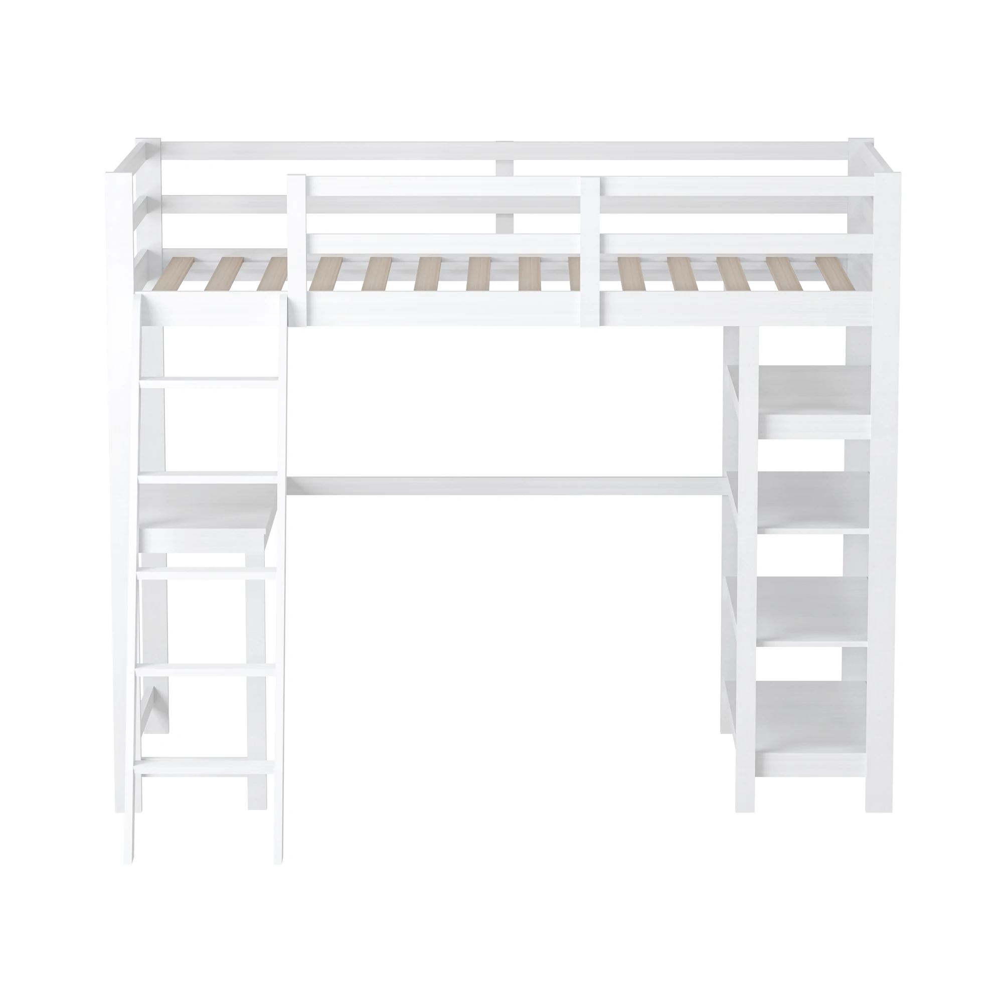 Letto a castello Aura in legno con scrivania e ripiano 140x200 cm Letto a castello singolo in legno massello Letto a castello per bambini