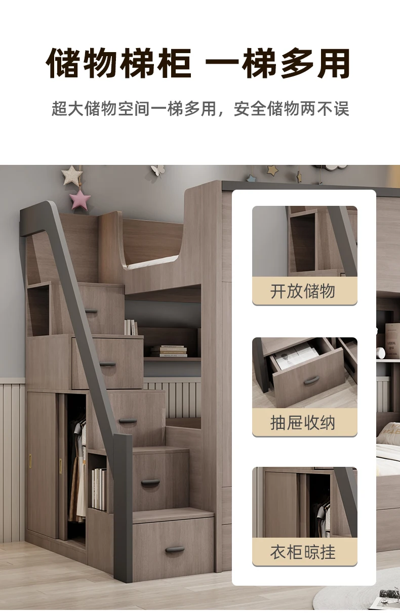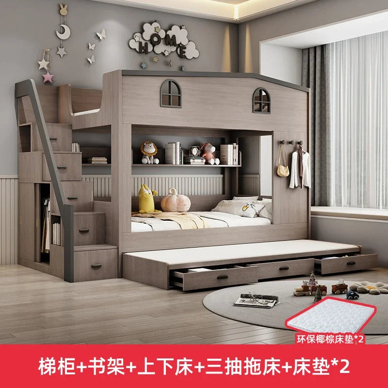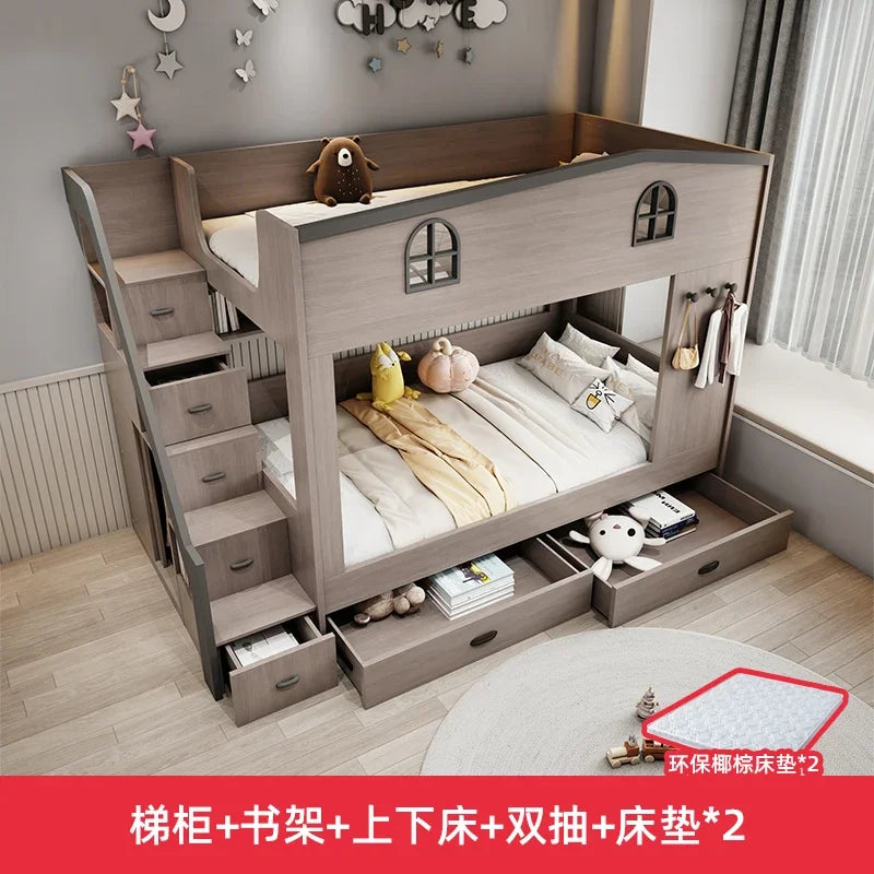 Letto a castello per bambini con cassetto portaoggetti loft letto matrimoniale Scale da arrampicata cornici complete Queen Wooden literas de 2 camas mobili per camera da letto