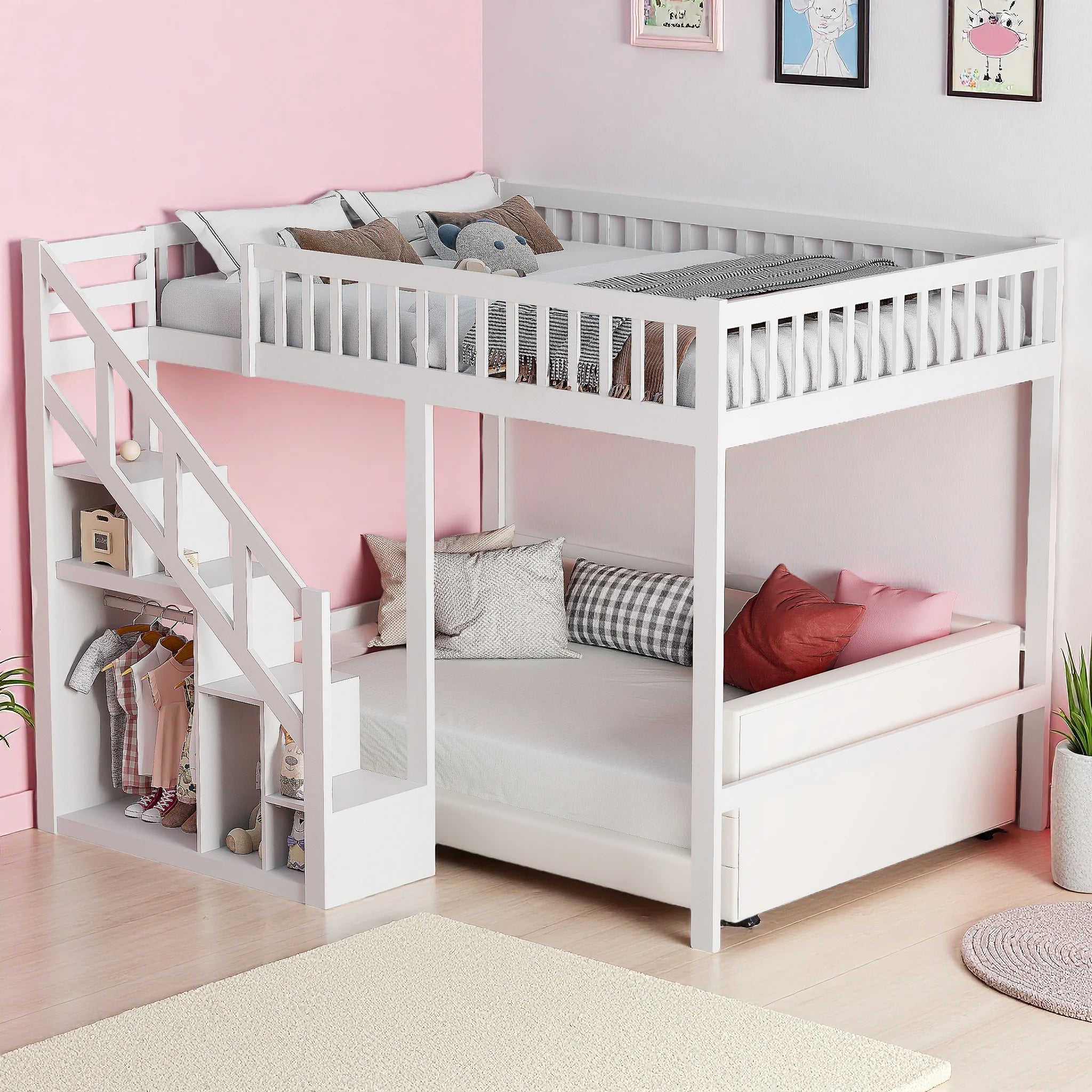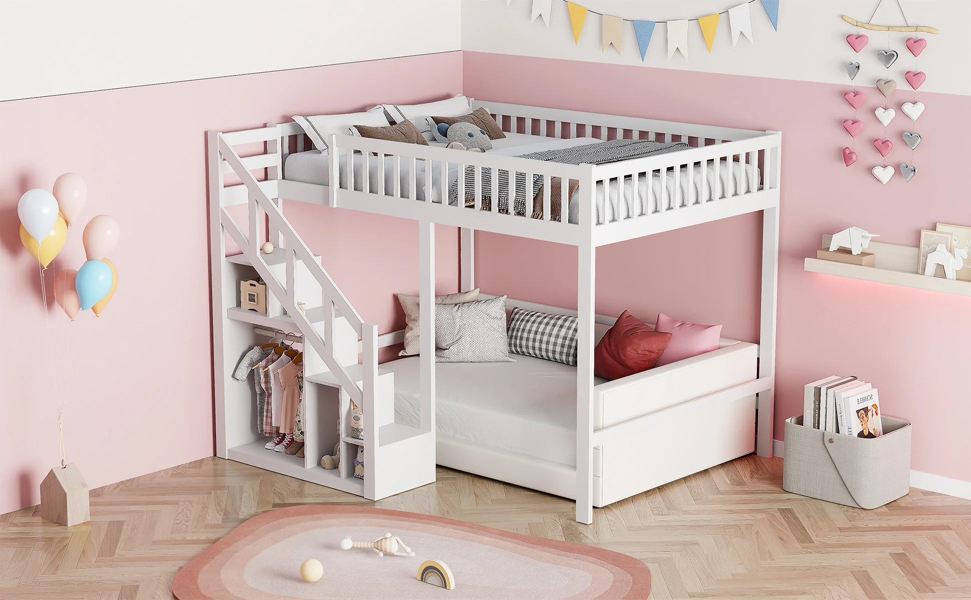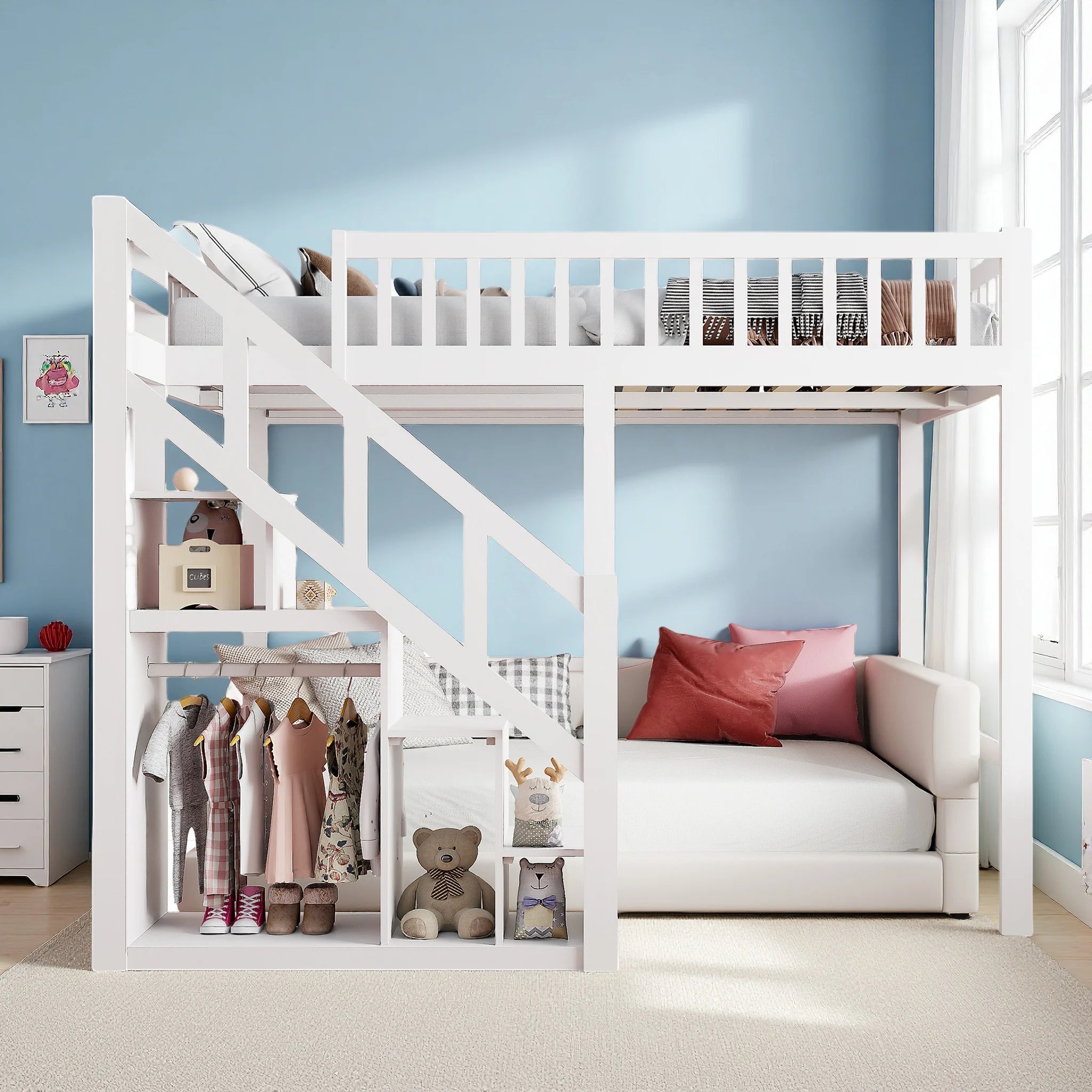 Il design di questo letto a soppalco per bambini 90x200 cm ottimizza lo spazio sotto il letto, creando un parco giochi, un angolo lettura o uno spazio per dormire.Stimola l'immaginazione e la vitalità dei bambini, promuovendo un'atmosfera dinamica e stimolante.Uno dei principali vantaggi di questo letto a soppalco è la sua scala con vano contenitore integrato.Ogni scaffale è progettato per fungere da contenitore, offrendo ampio spazio per riporre giocattoli, libri, vestiti e altri oggetti essenziali, in modo organizzato e a portata di mano.Questo letto a soppalco con contenitore è la soluzione ideale per ottimizzare lo spazio: non solo permette di dormire, ma è anche un elemento d'arredo versatile che unisce sicurezza, comfort e funzionalità.
