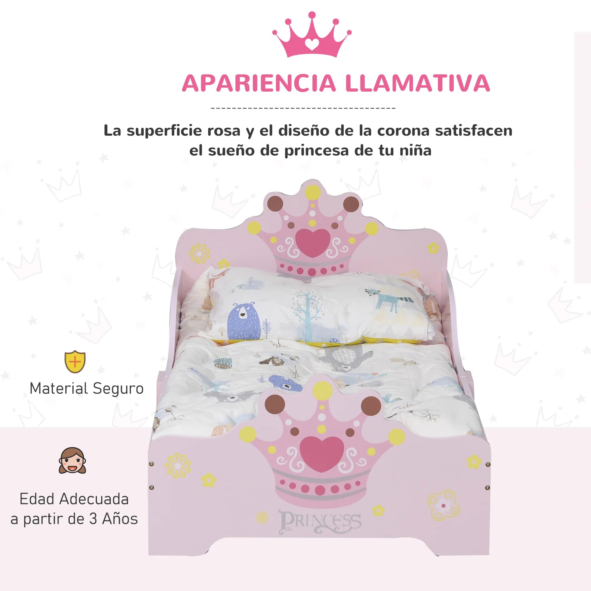 Letto HOMCOM per bambini + 3 anni 143x73x60 cm carico 50 kg rosa