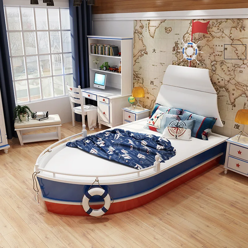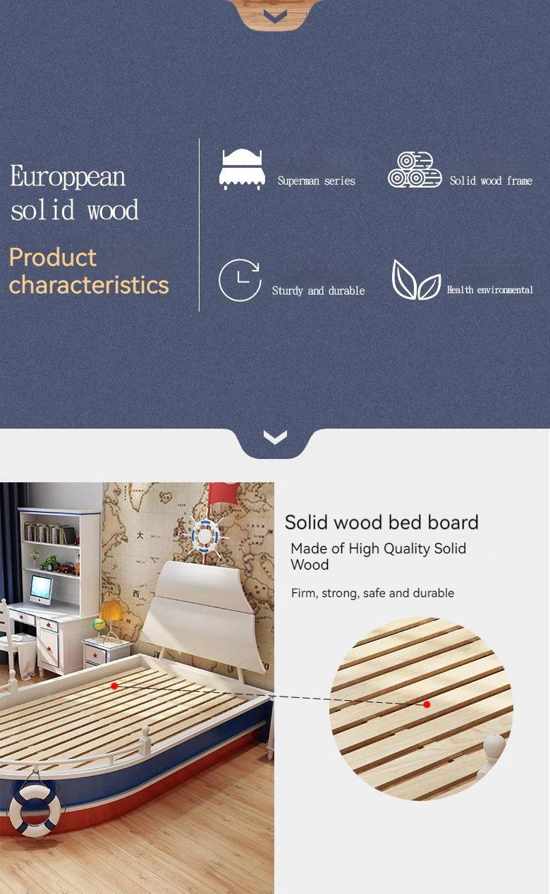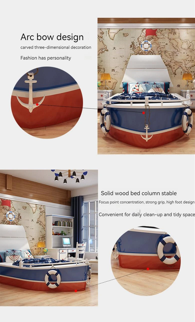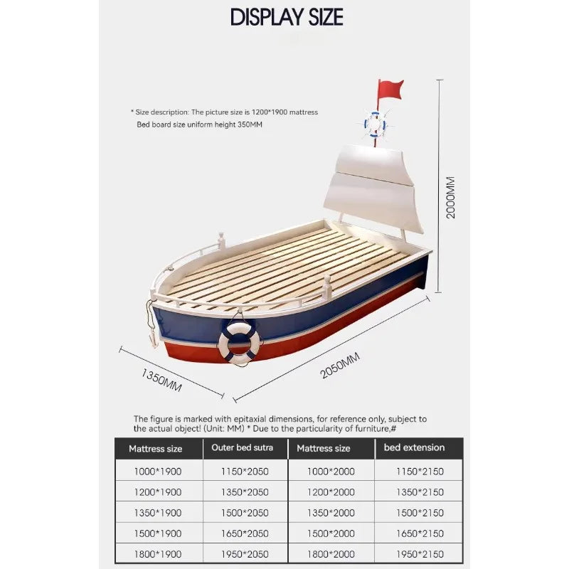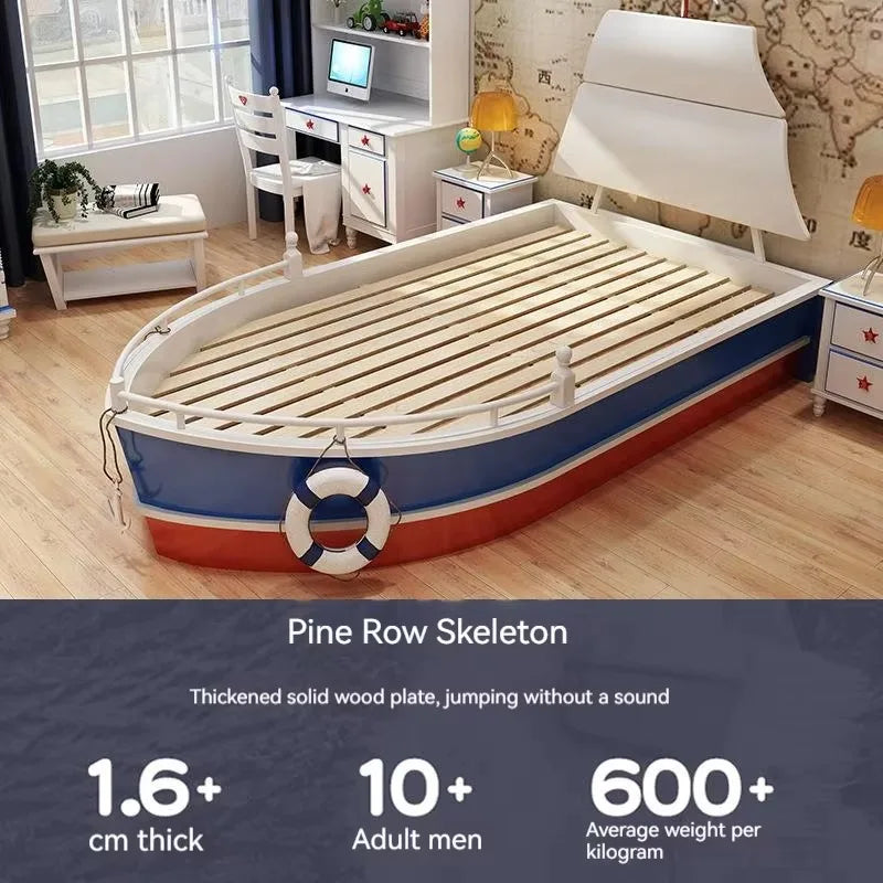 Letto per Bambini in Legno Massello 2026, Letto Singolo per Ragazzi, Design Creativo a Forma di Barca Nautica 1,5m con Ringhiera