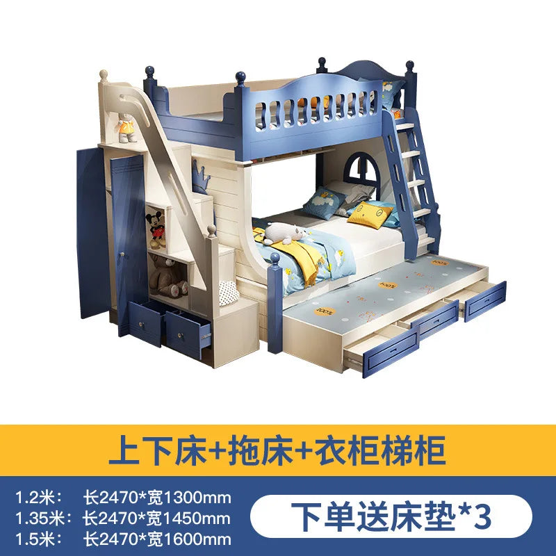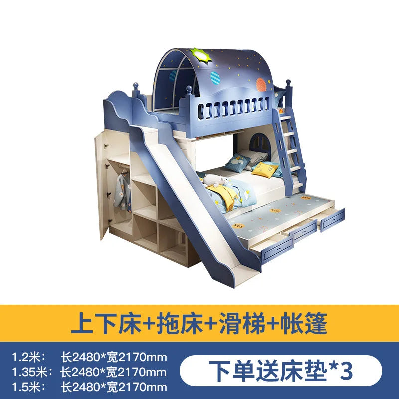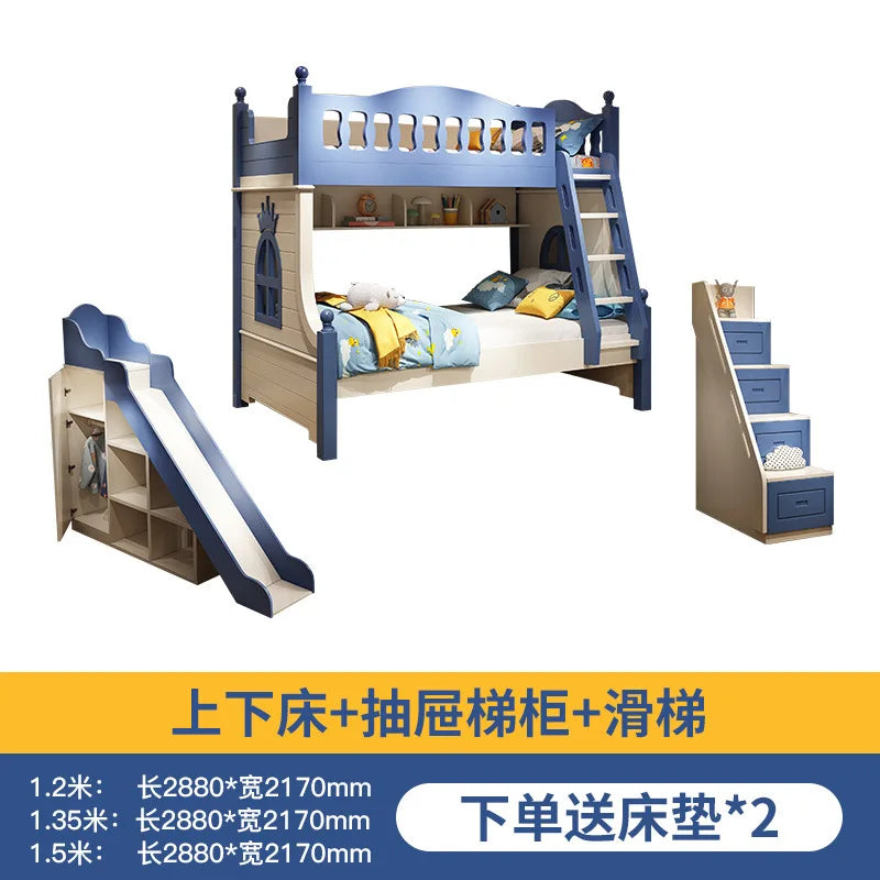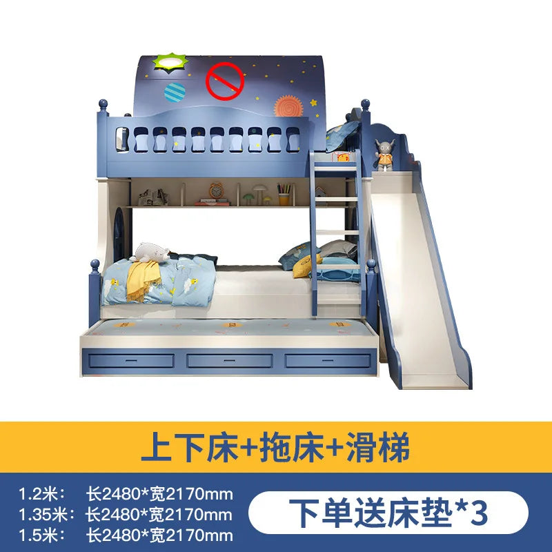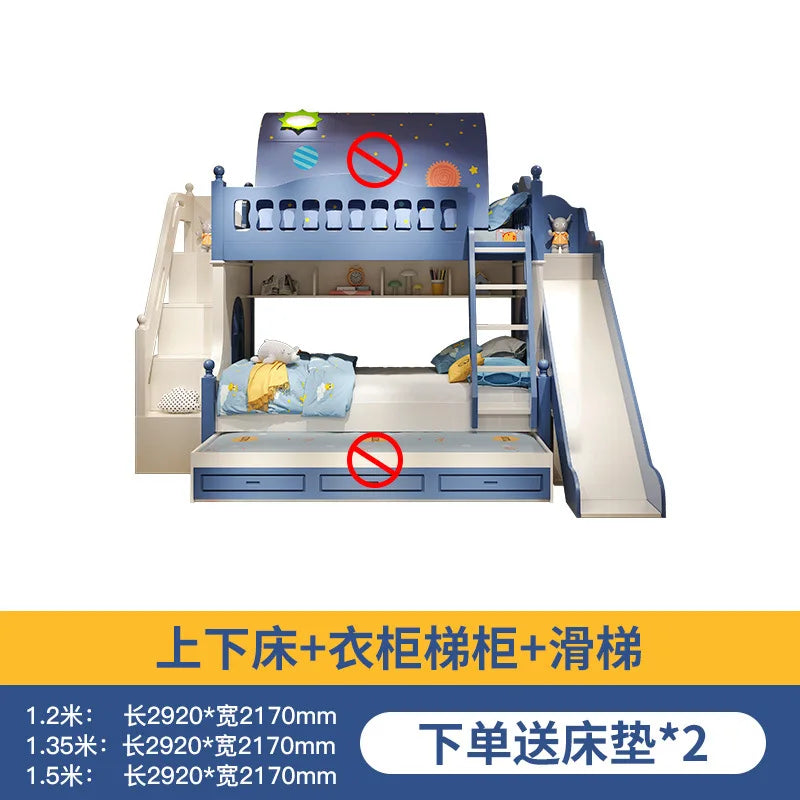 Letto per bambini Ragazzi Letto alto e basso a castello Letto per madre e bambino Scivolo A due strati rialzato