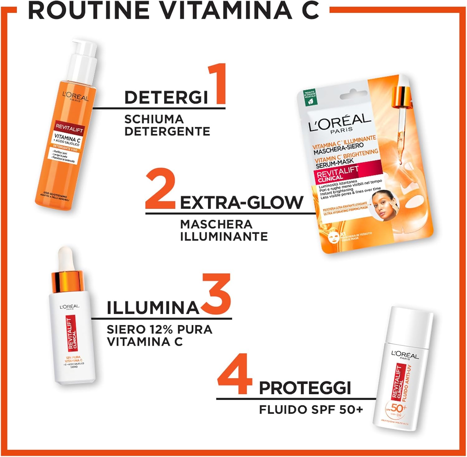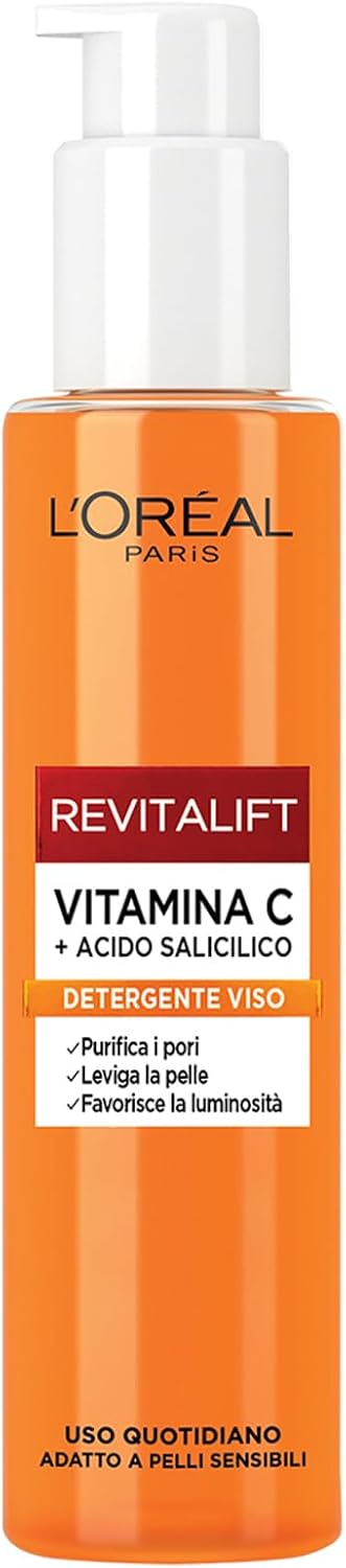 L'Oréal Paris Detergente Viso Purificante, Adatto a Pelli Sensibili, Azione Levigante e Uniformante, Pelle Morbida e Elastica, Con Vitamina C + Acido Salicilico, Revitalift, 150 ml