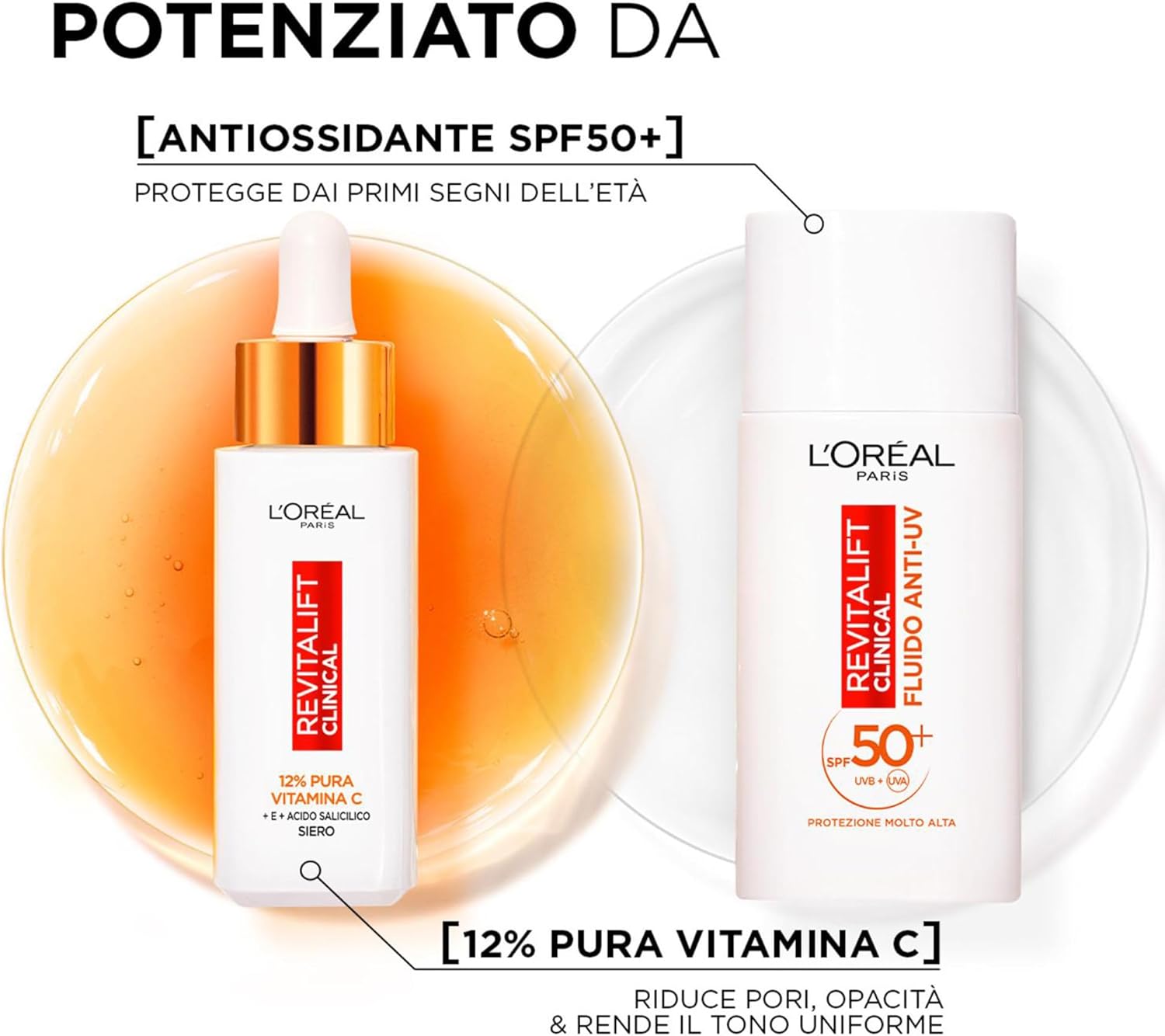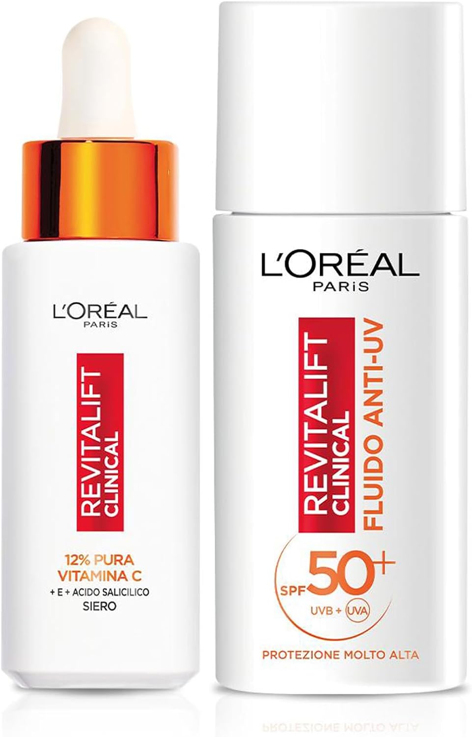 L'Oréal Paris Routine Illuminante e Protettiva, Con Siero 12% Pura Vitamina C e Fluido SPF 50+, Con Acido Salicilico, Revitalift Clinical, 30 ml + 50 ml