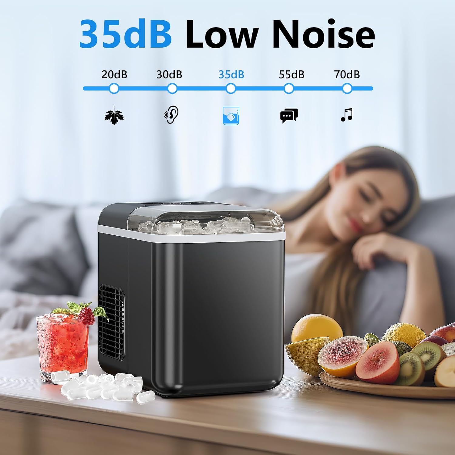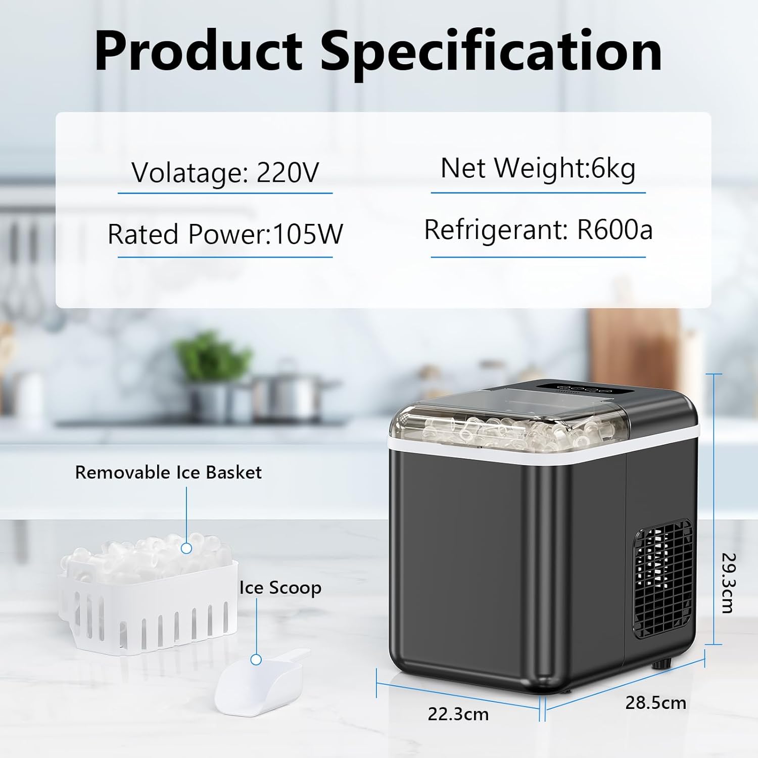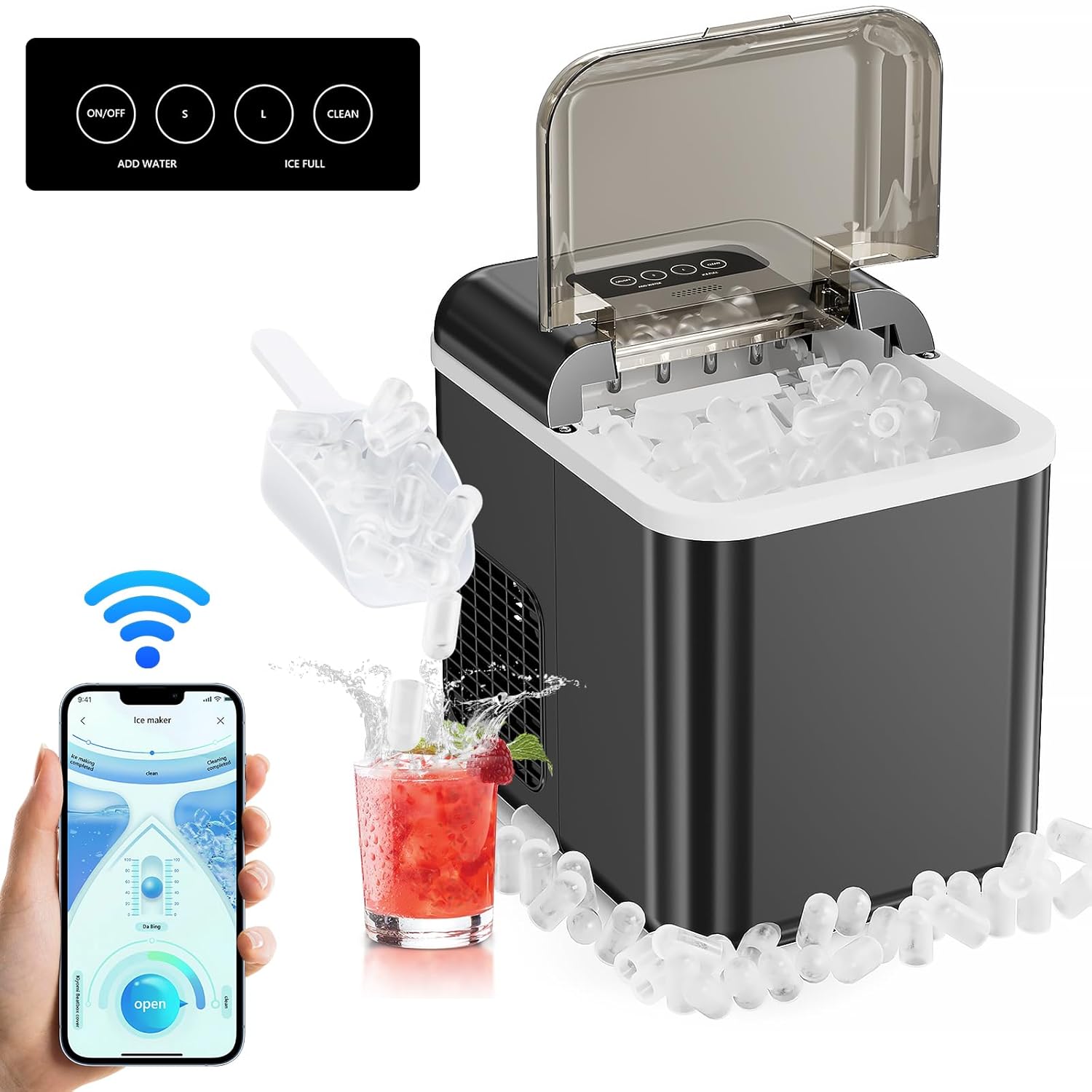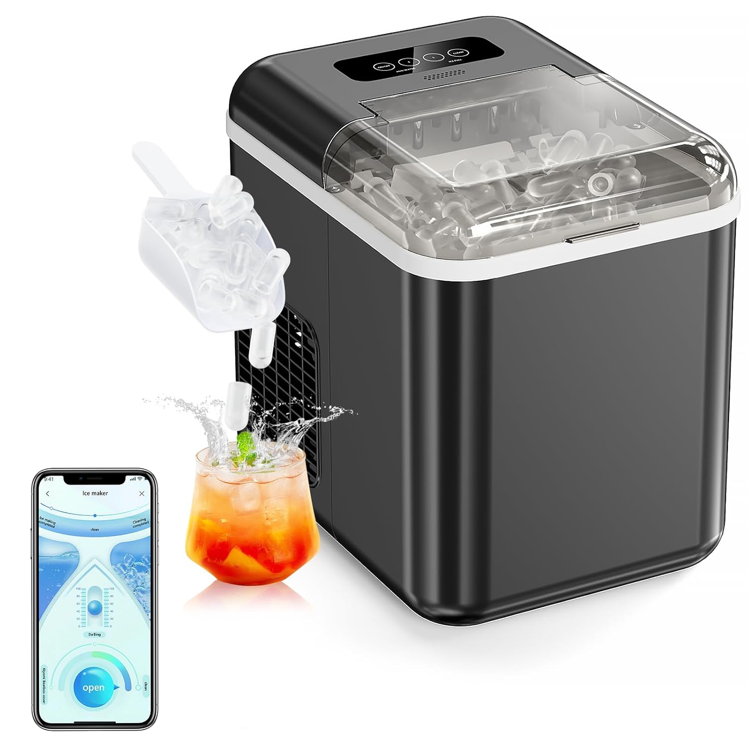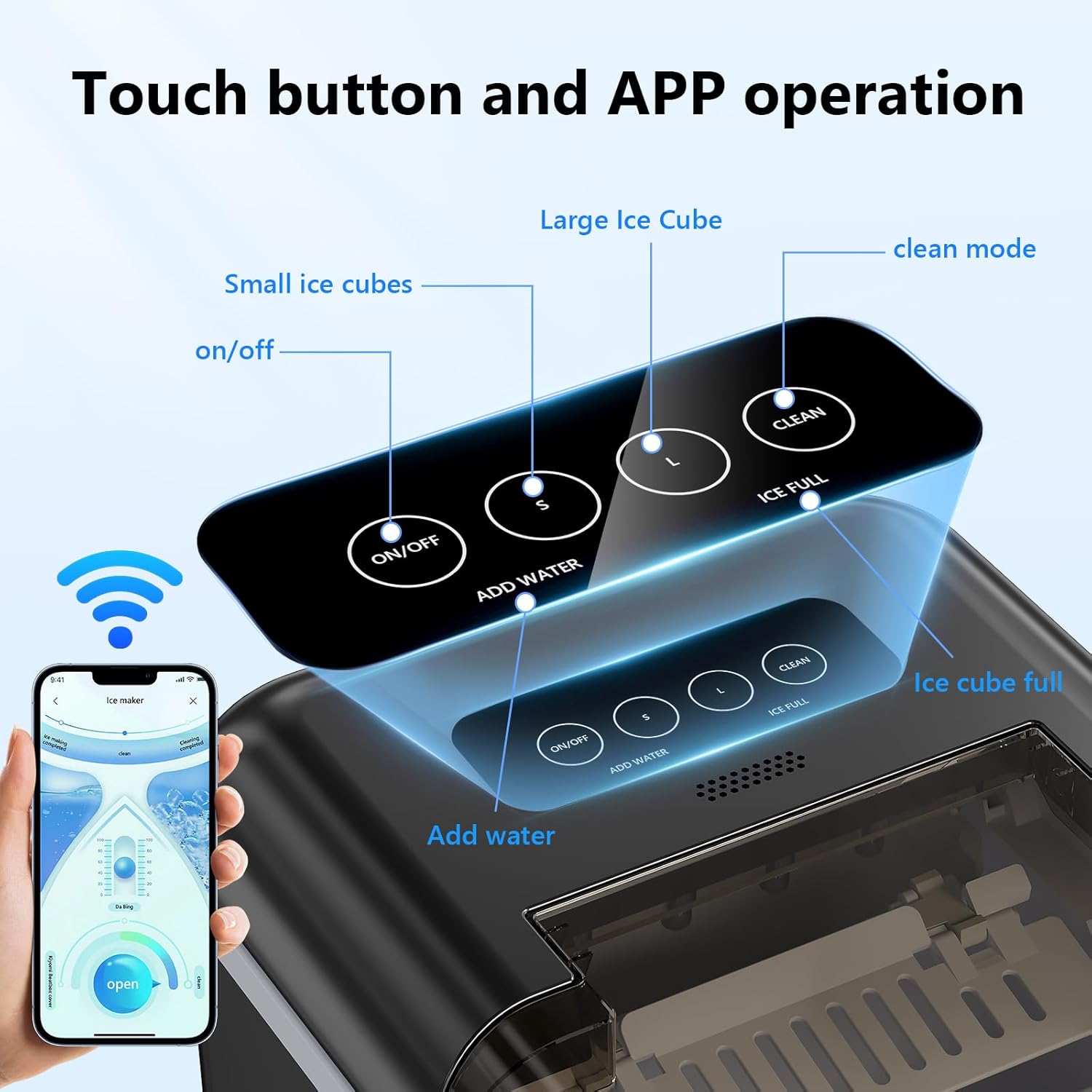 Macchina Ghiaccio 15kg/24h,Controllo Tramite APP Mobile, Macchina per il Ghiaccio da 9 Cubetti di Ghiaccio in 6-8 Minuti, 2 Dimensioni, Macchina per Cubetti di Ghiaccio con Pulizia Automatica.
