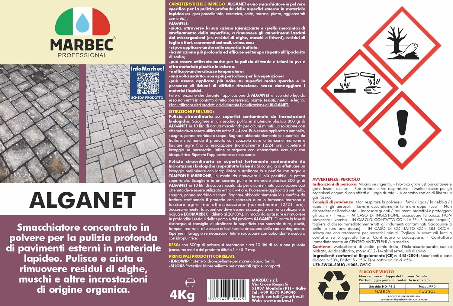 MARBEC ALGANET 4KG Detergente per la rimozione di annerimenti e incrostazioni biologiche su pavimenti e rivestimenti
