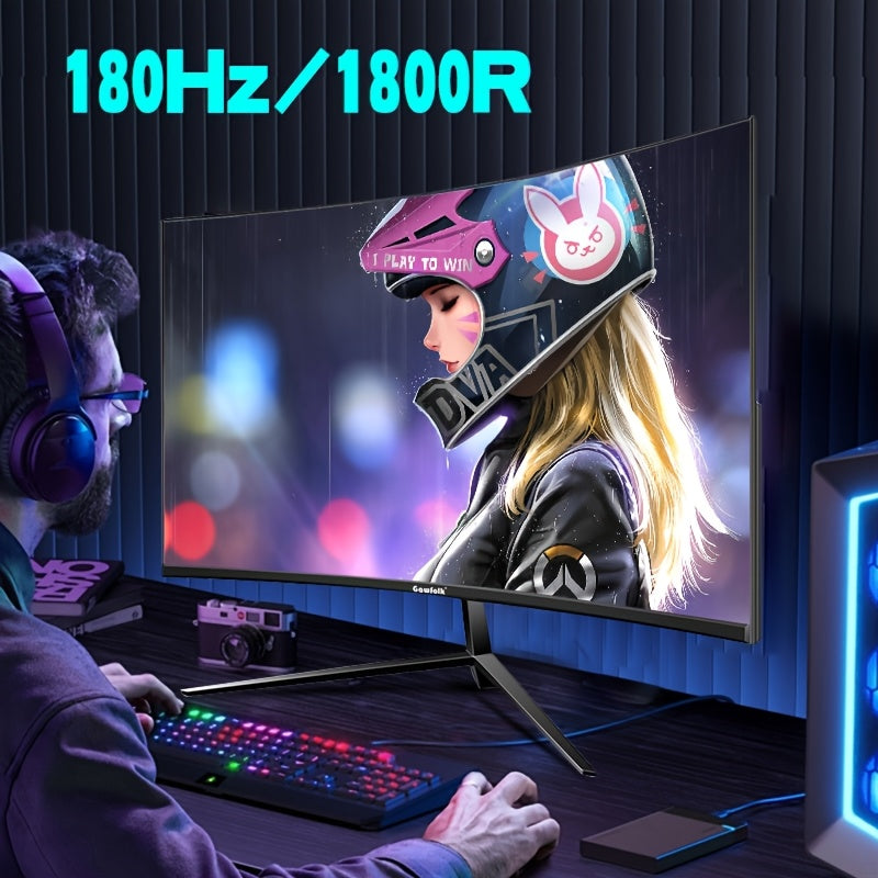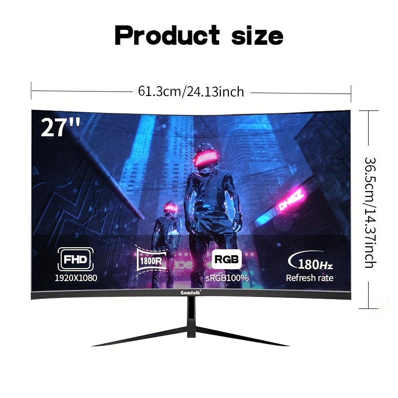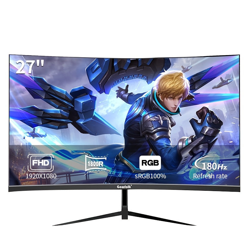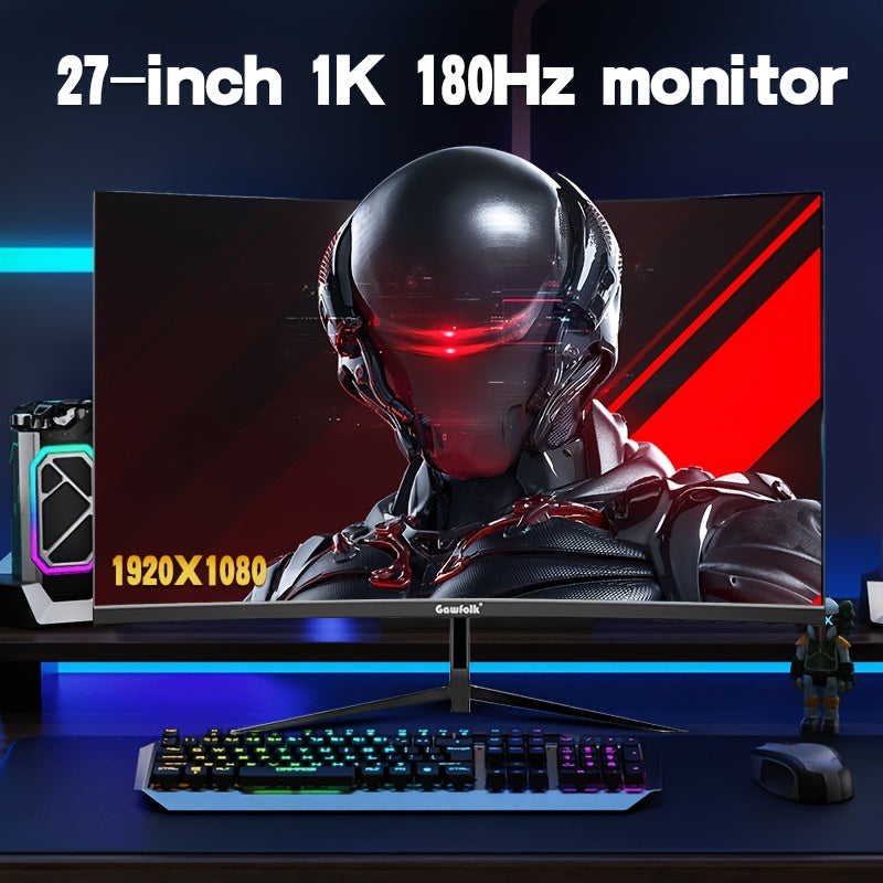 Monitor da Gioco Curvo Gawfolk 27 Pollici 1K180Hz, Schermo pz Full HD Risoluzione 1920*1080P, Senza Altoparlanti, Cornice Nera con Tecnologia Eye Protection e Supporto VESA